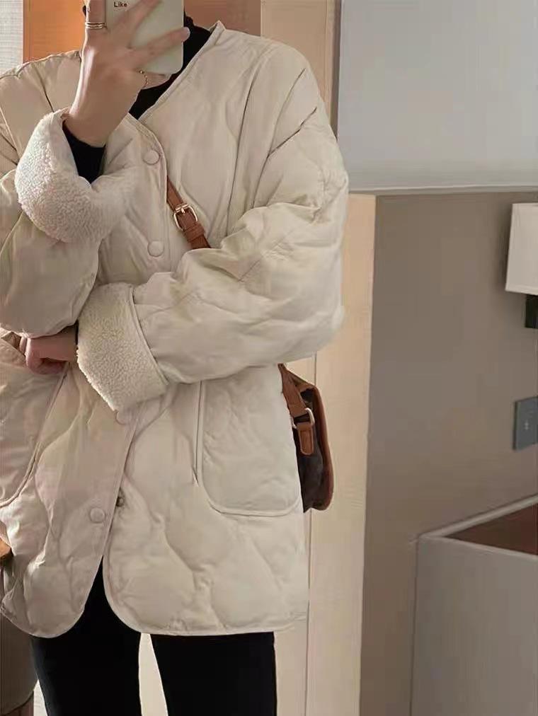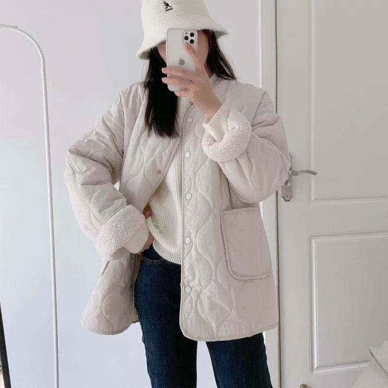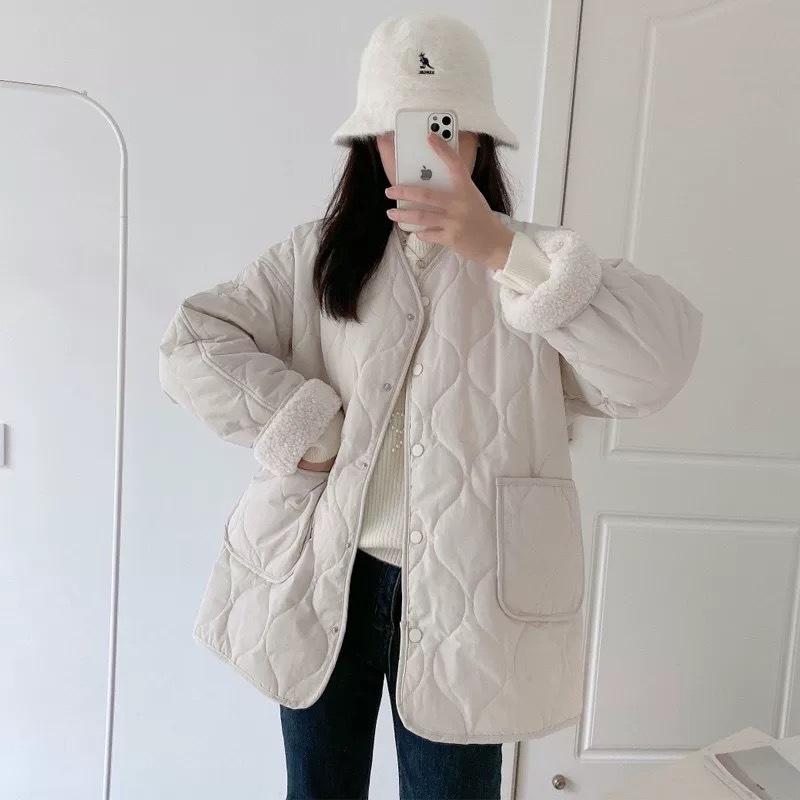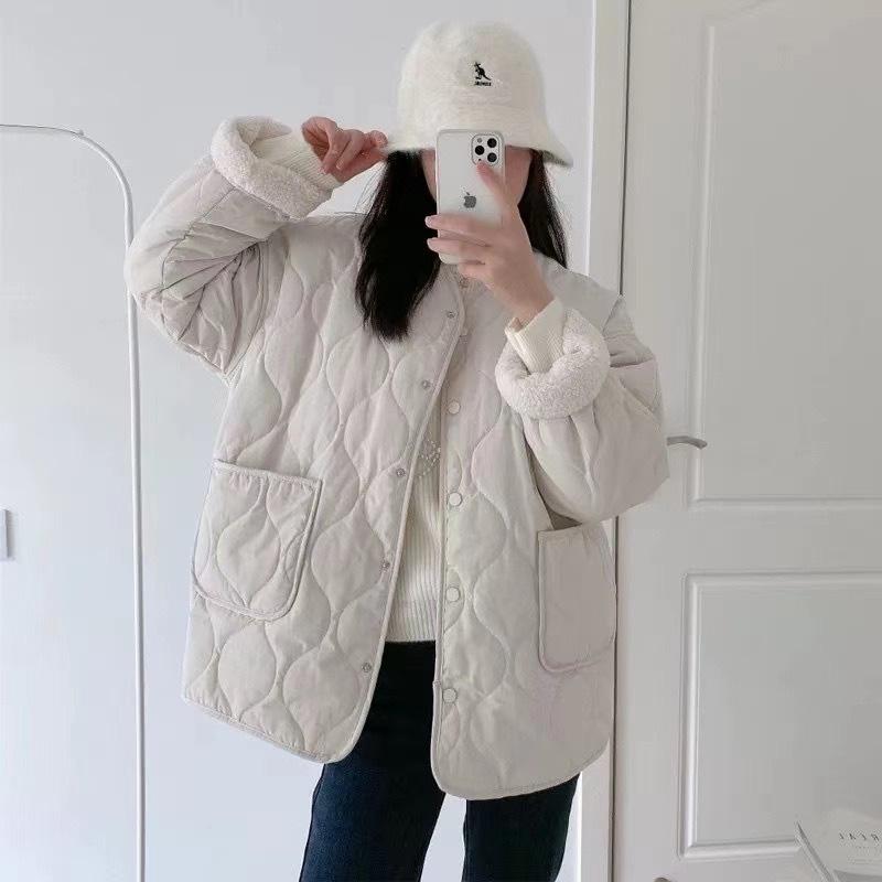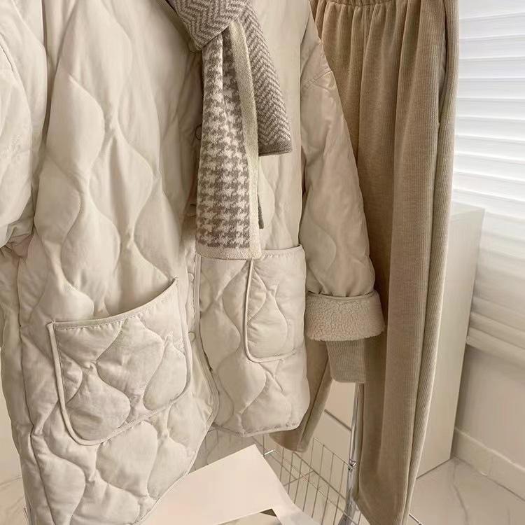 Buen Tejido 2024 Lana de Cordero Otoño e Invierno Nuevo Estilo Coreano Suelto Estilo Chanel Estilo Romboidal Chaqueta Acolchada de Algodón para Mujer Petite