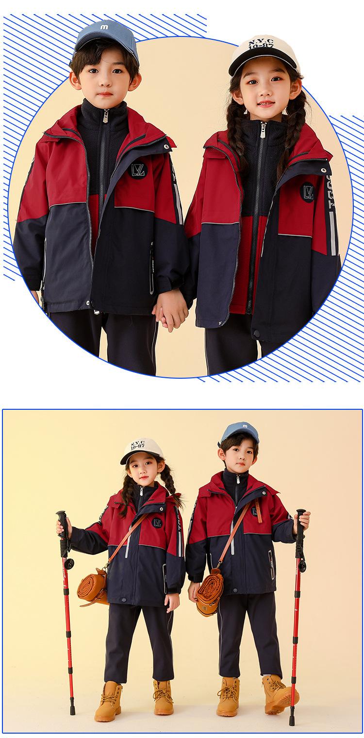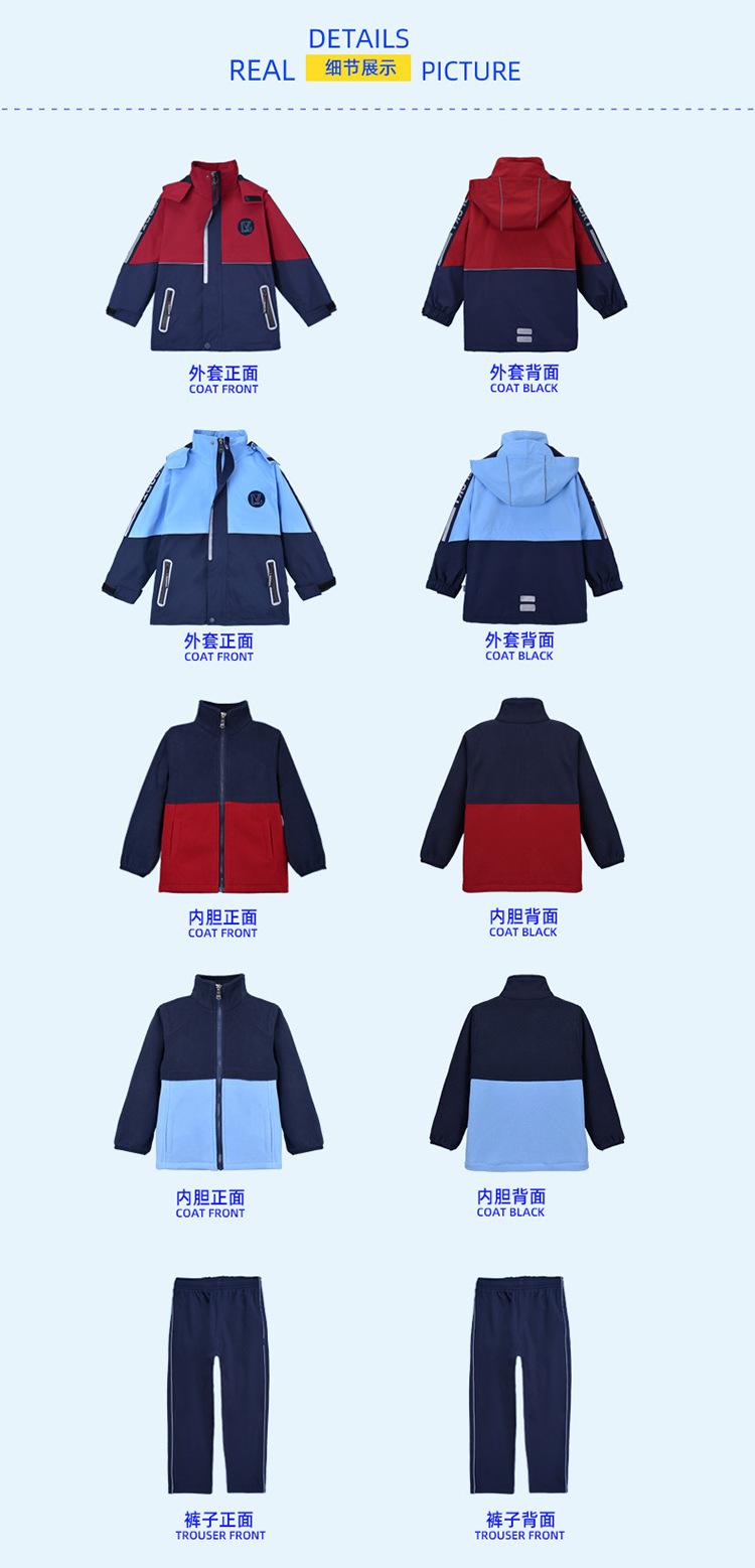 Wine red three-piece set, Blue three-piece set, Wine red top with liner, Blue top with liner, Charge Pants