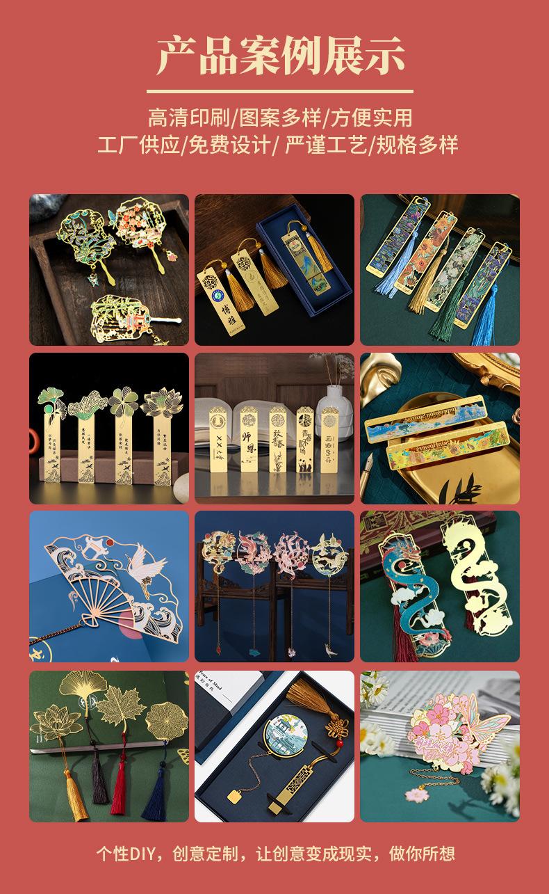 Marcador de Metal Latón Calado Caja de Regalo Hecho a Medida Souvenir Temporada de Graduación Logotipo Creativo Estilo Chino Marcador Clásico
