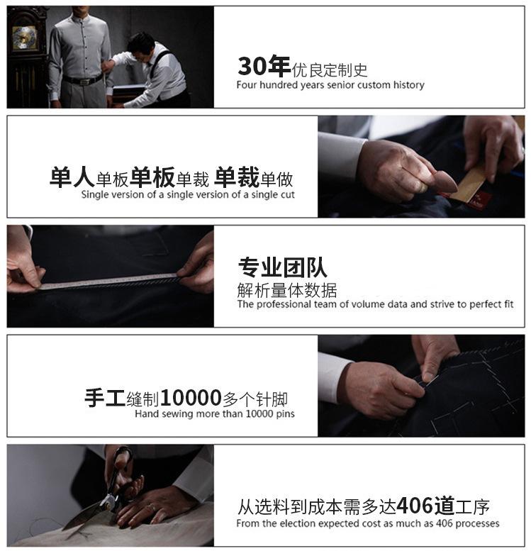 Nuestra empresa se ha dedicado a la confección de ropa a medida durante más de 20 años y tiene una gran experiencia en la confección a medida de varios tipos de ropa, como trajes de hombre, trajes de actuación, abrigos, chalecos, camisas, vestidos cheongsam de mujer, etc.