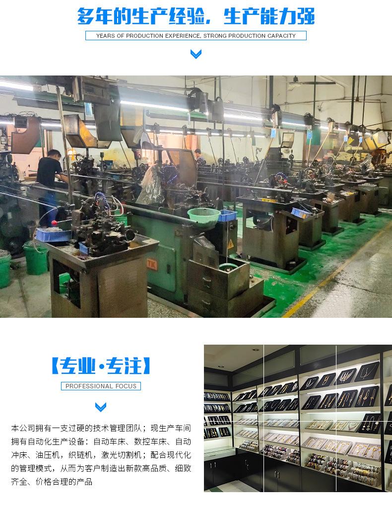 Actualmente, cuenta con una planta de 2000 metros cuadrados y más de 100 empleados. Se encuentra en el delta del río Perla de Guangdong, con una ubicación privilegiada y fácil acceso. Se encuentra en Chang'an, en el extremo sur de Dongguan, colindando con Shenzhen al este, el estuario del río Perla al sur y el puerto de Humen al oeste. La empresa cuenta con un excelente equipo de gestión técnica; su taller de producción cuenta con equipos automatizados: tornos automáticos, tornos CNC, punzonadoras automáticas, prensas hidráulicas, telares de cadena y máquinas de corte láser. Gracias a sus modernos modelos de gestión, puede producir productos nuevos, exquisitos y completos de alta calidad a precios razonables para los clientes.