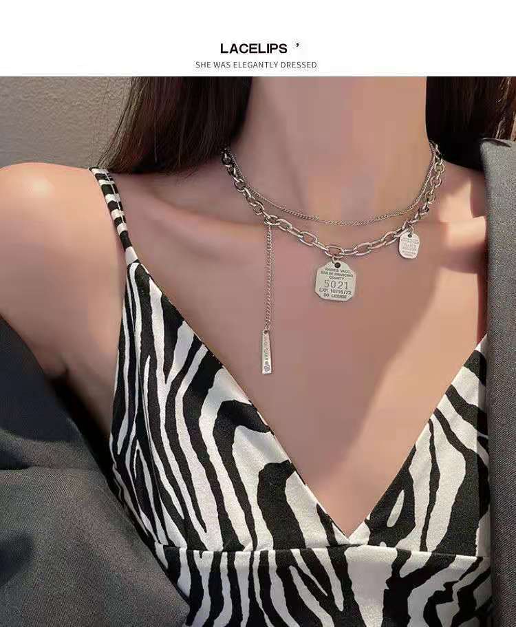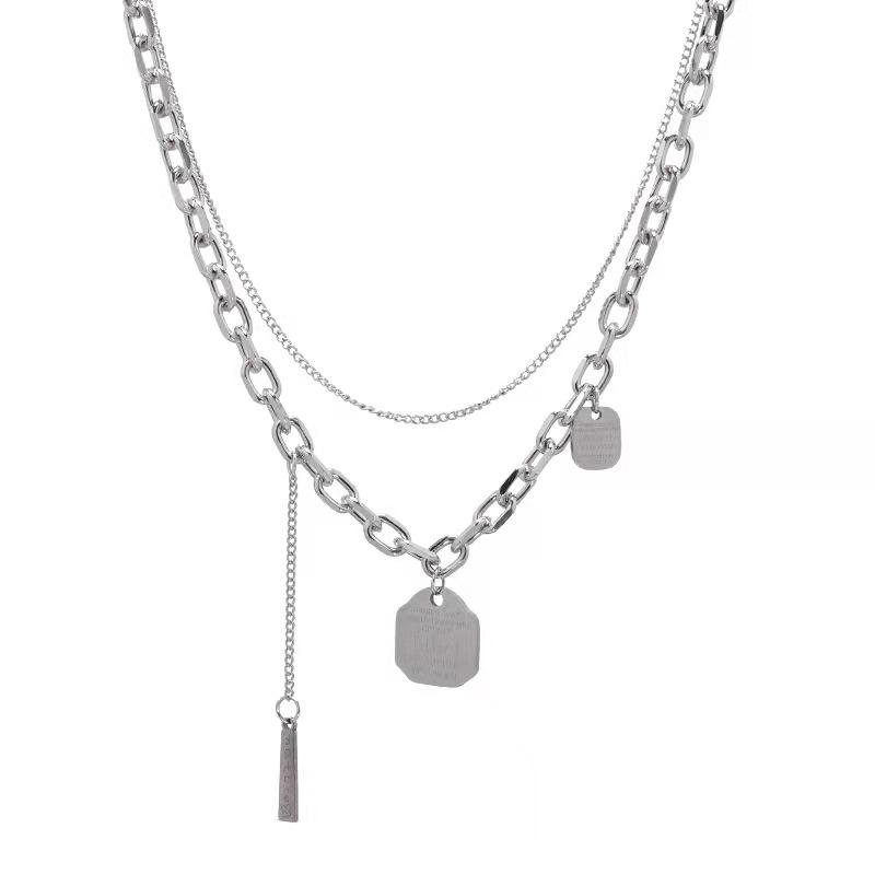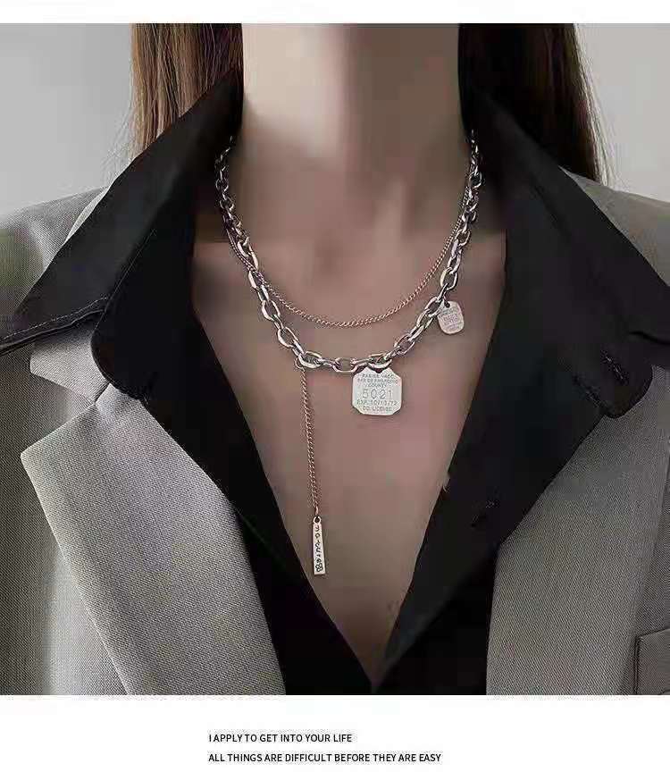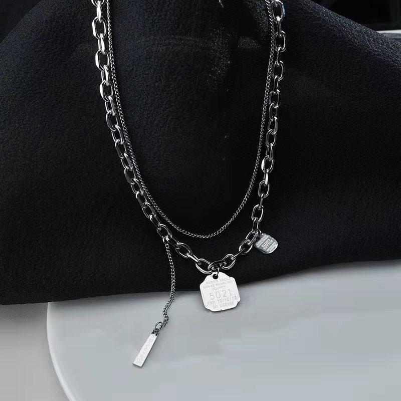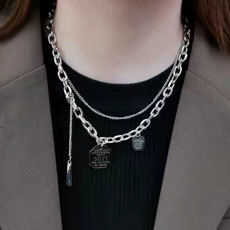 Collar decorativo de acero de titanio de nuevo estilo 2021 para mujer, estilo hip hop, doble capa, estilo punk, colgante de cadena para suéter para hombre.