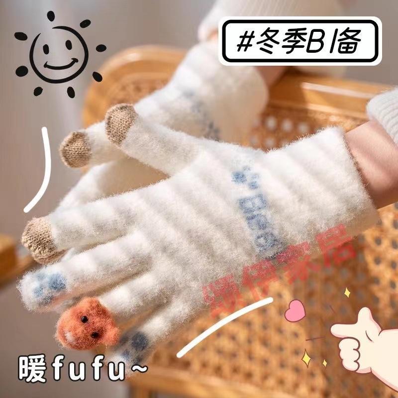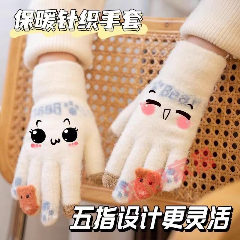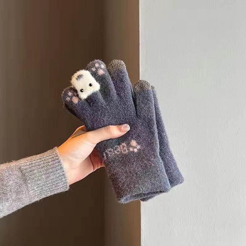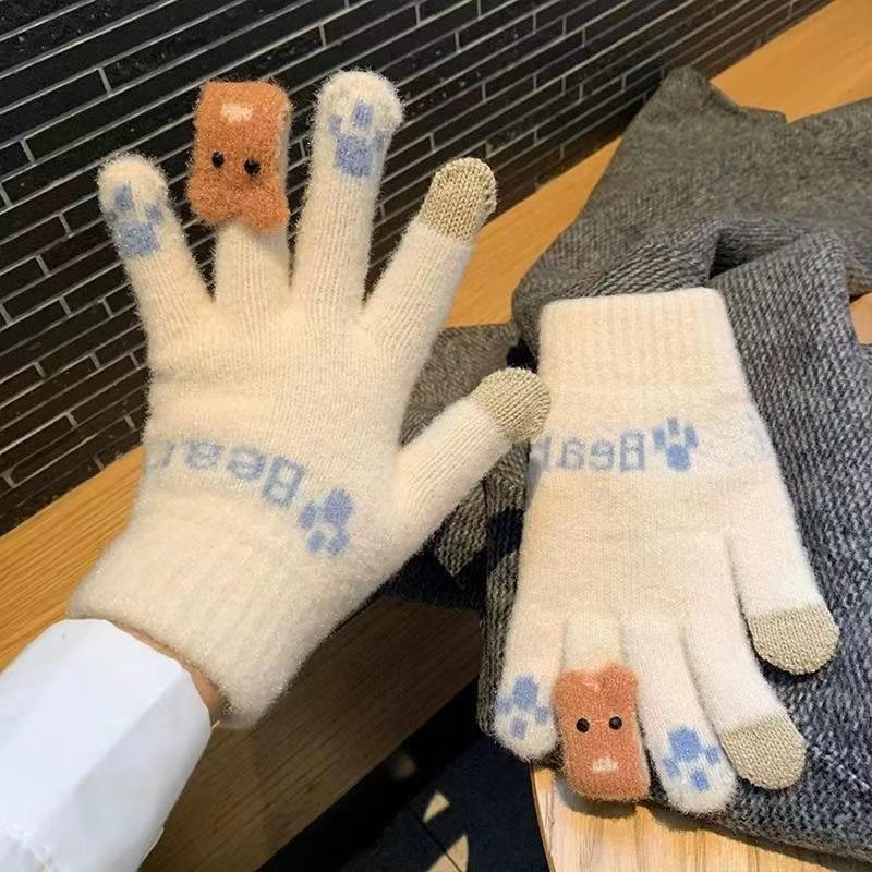Lindos guantes de peluche para mujer, de invierno, gruesos, cálidos, con pantalla táctil, tejidos de lana, para ciclismo, a prueba de frío, para estudiantes, de invierno