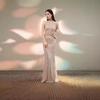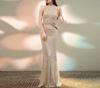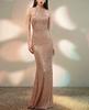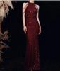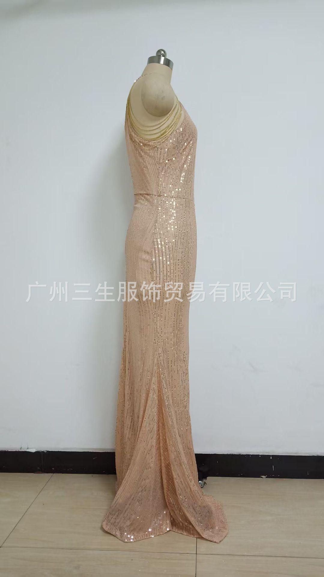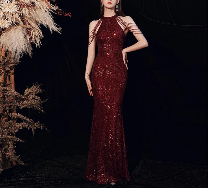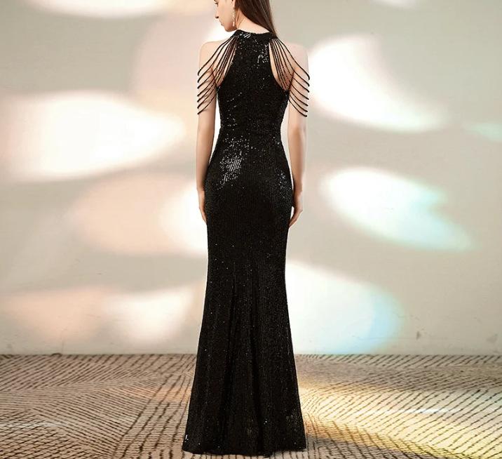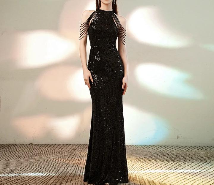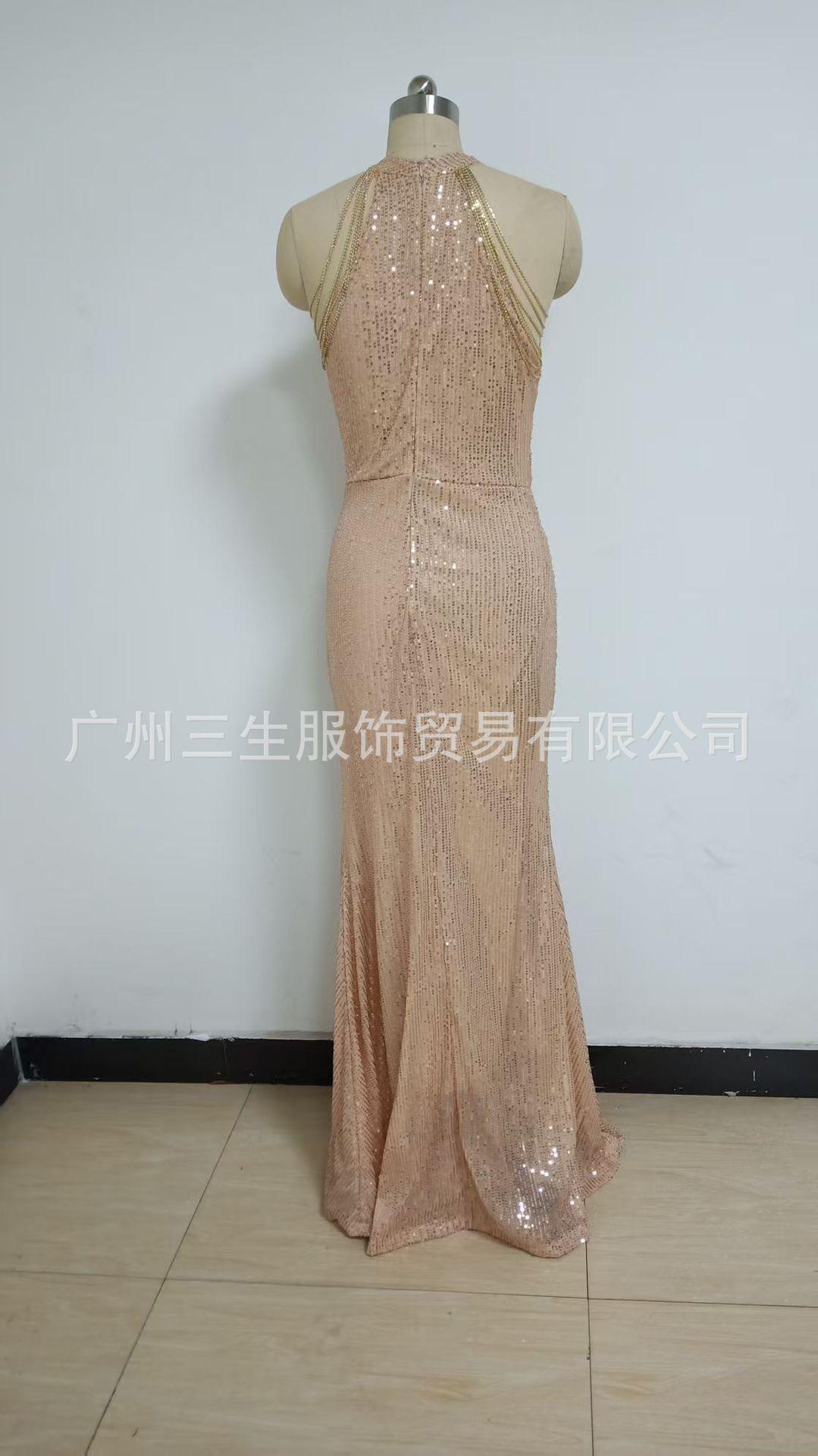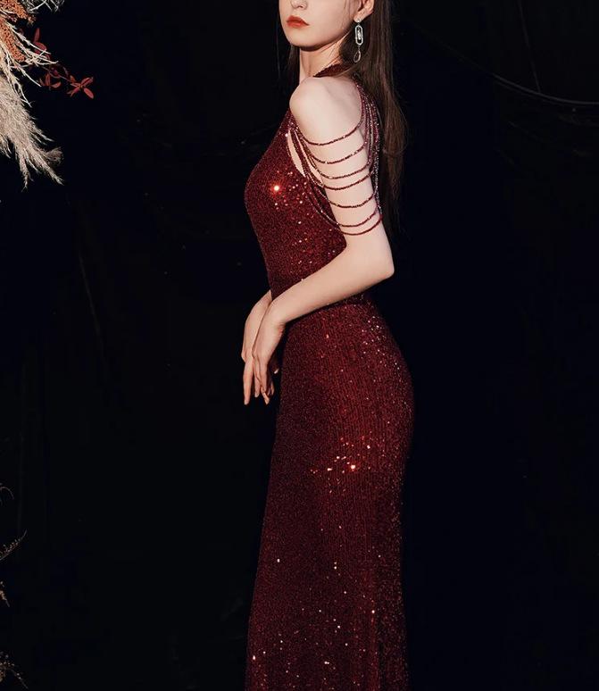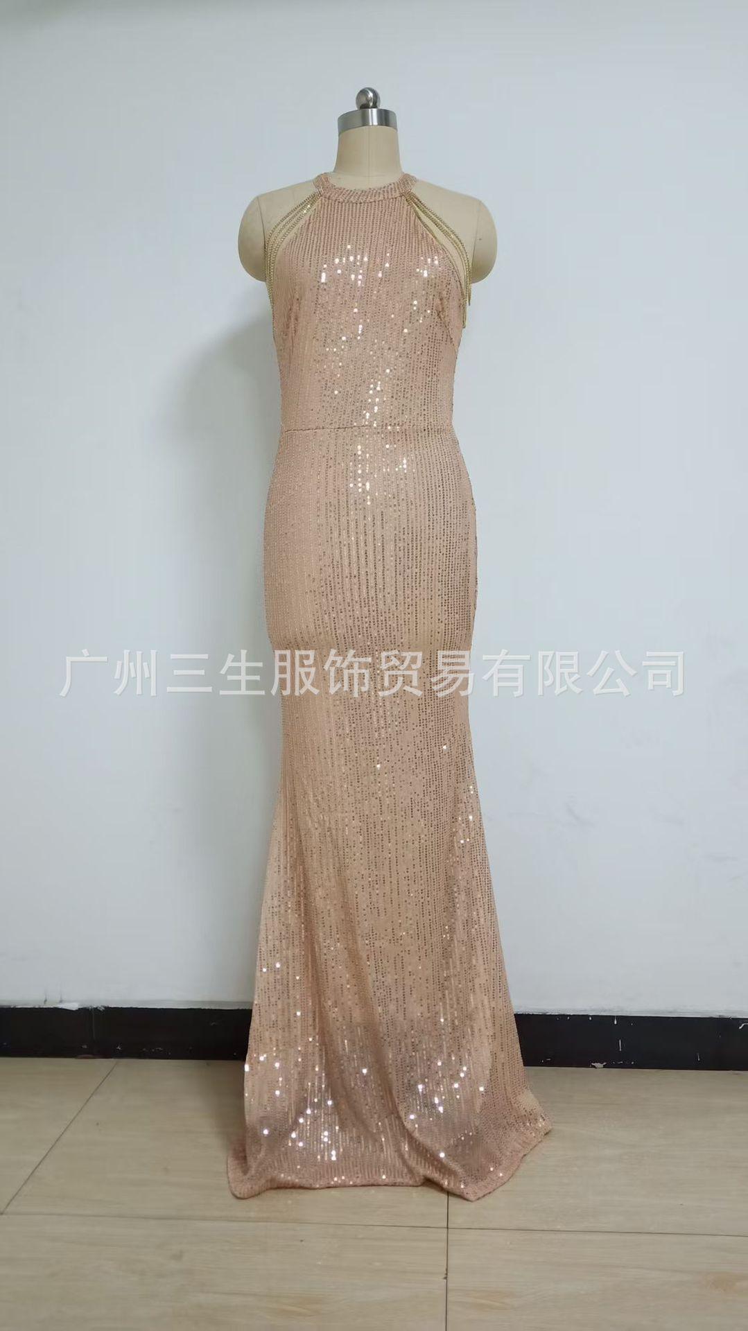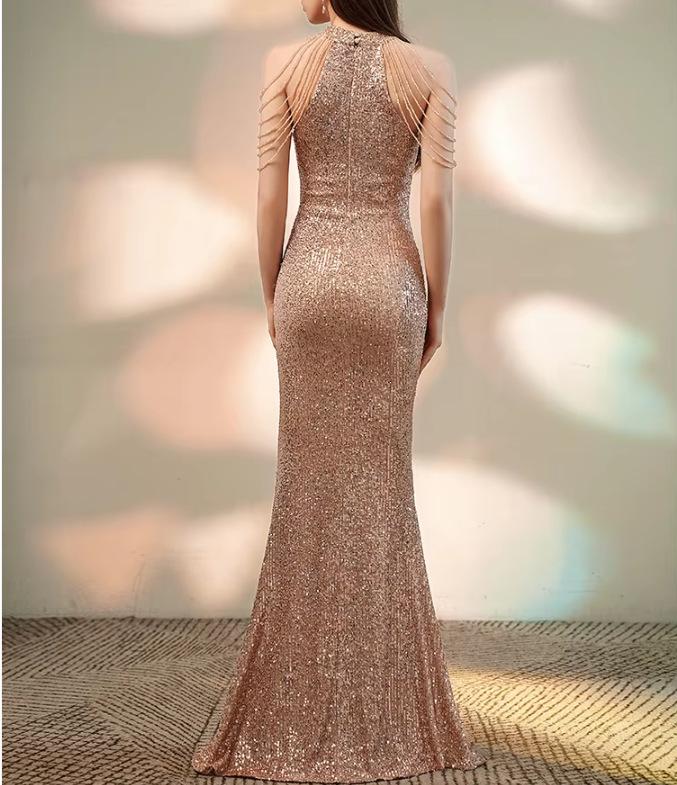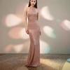 Vestido de noche largo de cintura media con lentejuelas, estilo europeo y americano, con cuello halter, cadena sexy que cubre la cadera, novedad primavera-verano 2025
