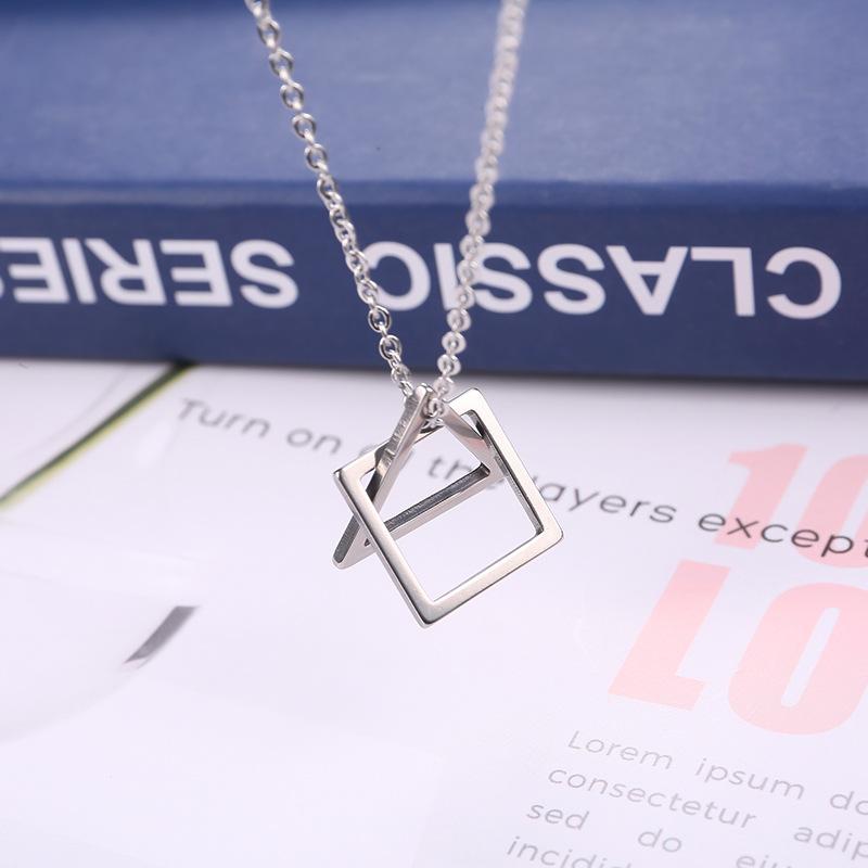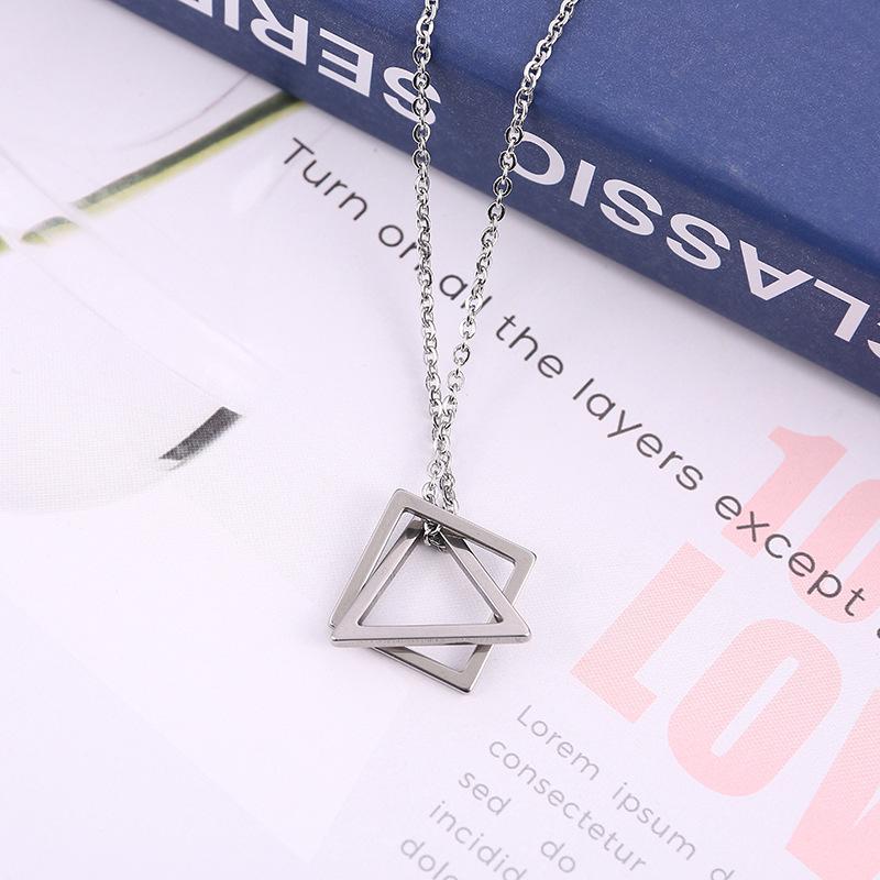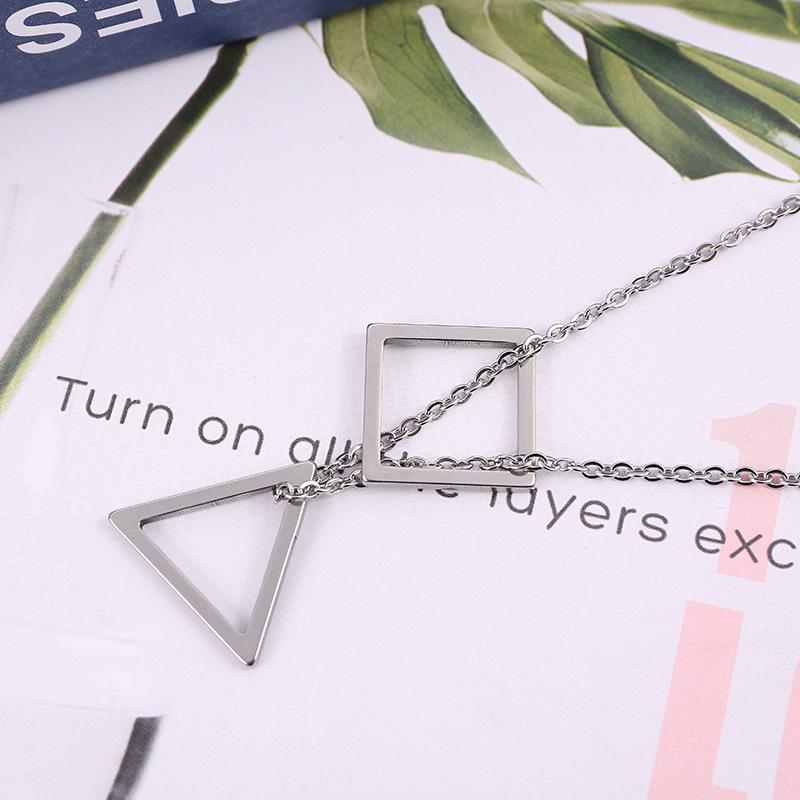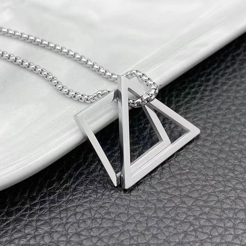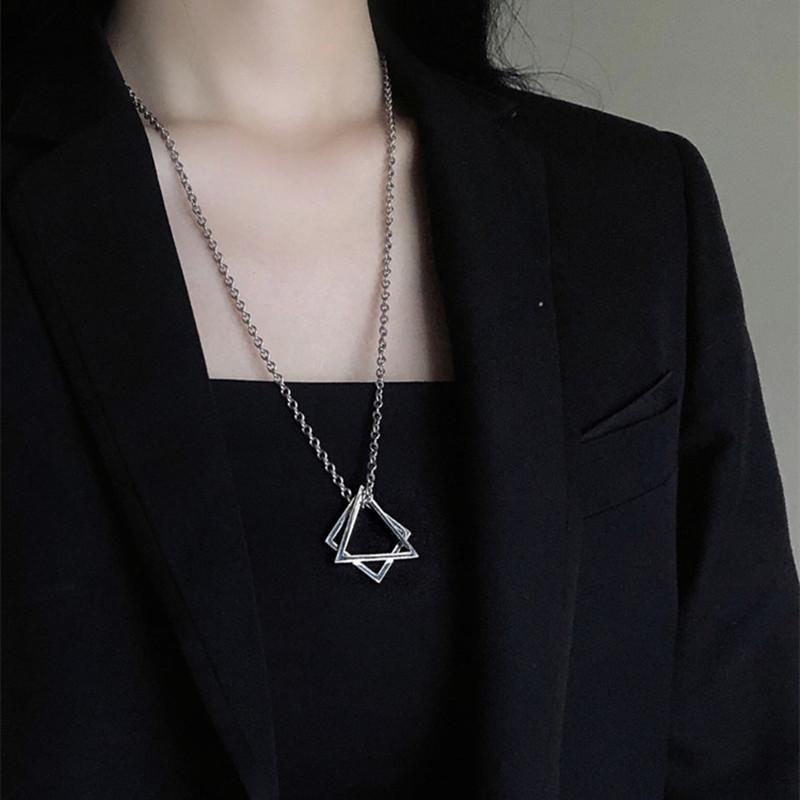 Collar hip-hop de acero de titanio con combinación geométrica transfronteriza de triángulo cuadrado, para hombre, moderno, genial, simple, con colgante
