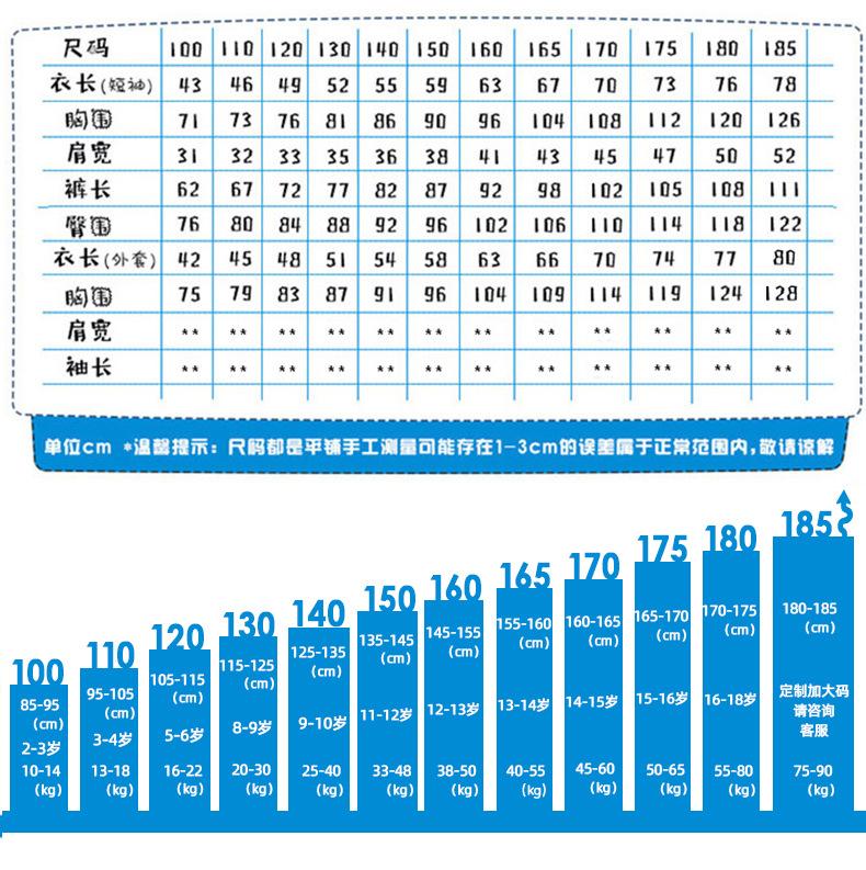 100cm, 110cm, 120cm, 130cm, 140cm, 150cm, 160cm, 165cm, 170cm, 175cm, 180cm, 185cm and large size customization