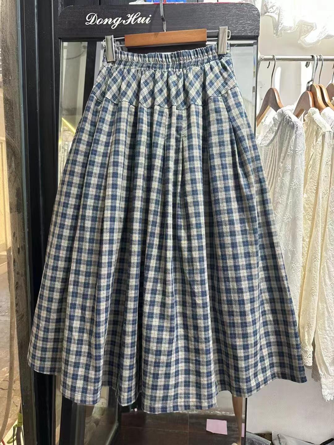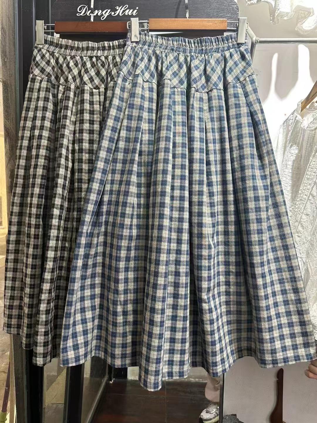 Fondos de Primavera 2025 para Mujer Estilo Japonés Suelto a Cuadros Falda para Mujer Pequeño Fresco Estilo Literario Falda Transfronteriza