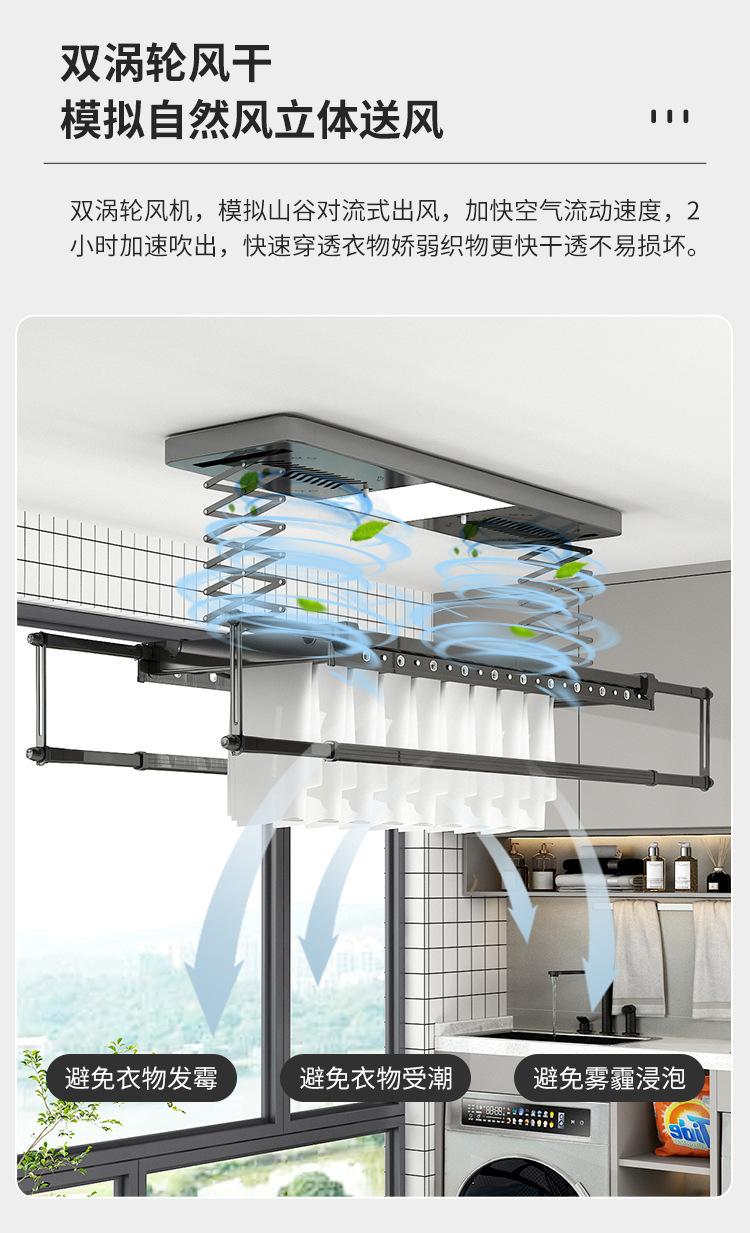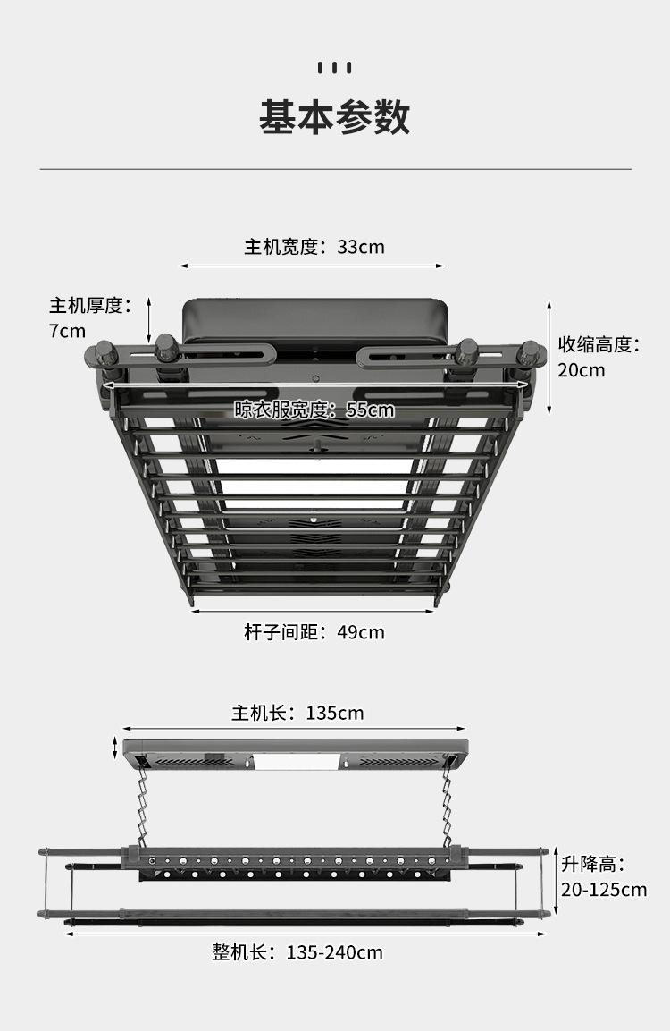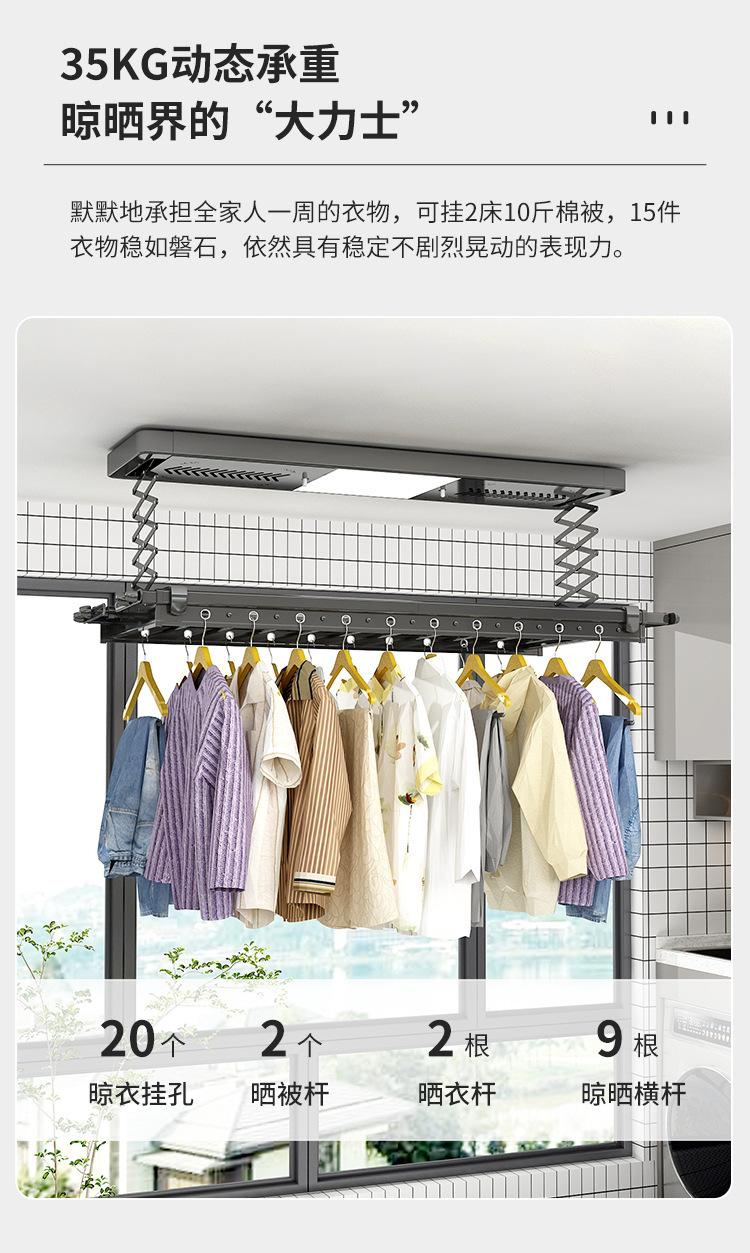 Black - upgraded double row - mijia model - wireless wall control + lighting + crossbar + stop when encountering obstacles + gently lift up - self-installation