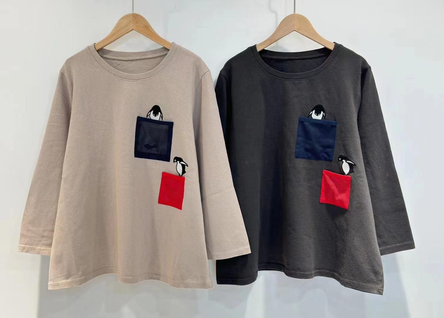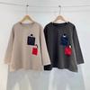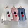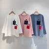 2025 Primavera Nueva Camiseta de Algodón de Estilo Japonés de Cuello Redondo para Mujer Top Holgado Pulóver Bordado Fresco Pequeño Manga Larga Sentido de Alta Gama