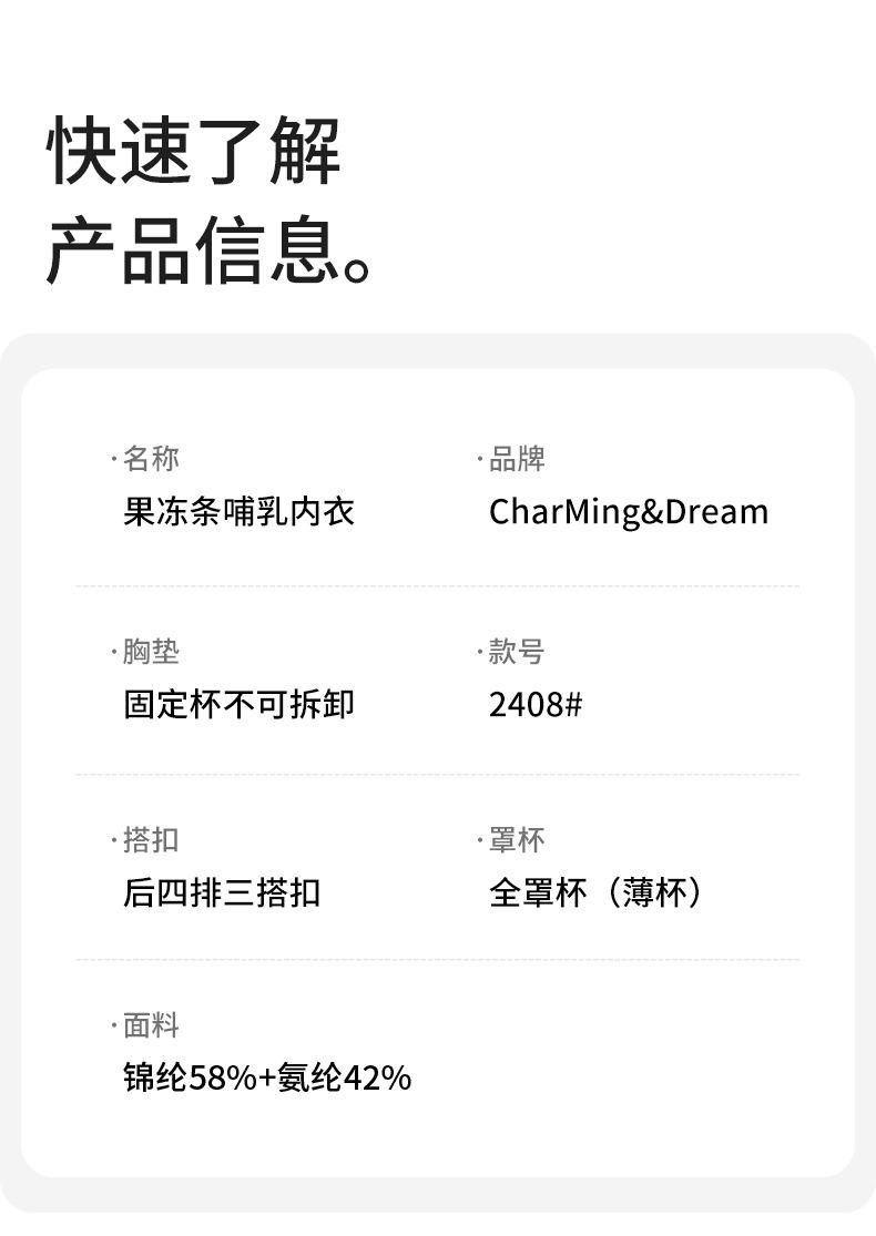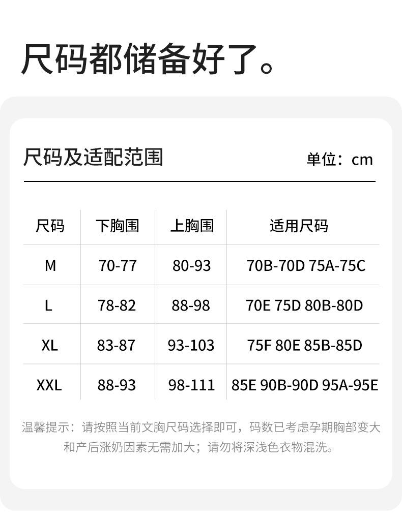 Este sujetador de lactancia cuenta con una almohadilla de copa fija para un ajuste seguro.Sin copa para correrLavable a máquina, toda la estructura del sujetador utiliza la tecnología de tira de gelatina de tecnología negra, que proporciona un efecto de soporte suave muy cómodo y de apoyo, el dobladillo en forma de W antigravedad soporta hacia arriba para prevenir la caída, las dos tiras laterales se juntan hacia el centro para prevenir la expansión hacia afuera, el diseño de lactancia con hebilla superior se puede desabrochar con una mano sin presión, la espalda es sin costuras con cuatro filas de tres botones, que se pueden ajustar para facilitar el uso y el quitarse. Hilo de tacto nube de alta elasticidad seleccionado, suave más allá de la imaginación, microfibra de alta elasticidad, 58% nailon + 42% elastano proporción áurea, sin costuras, sin sensación, ¡sin restricciones!