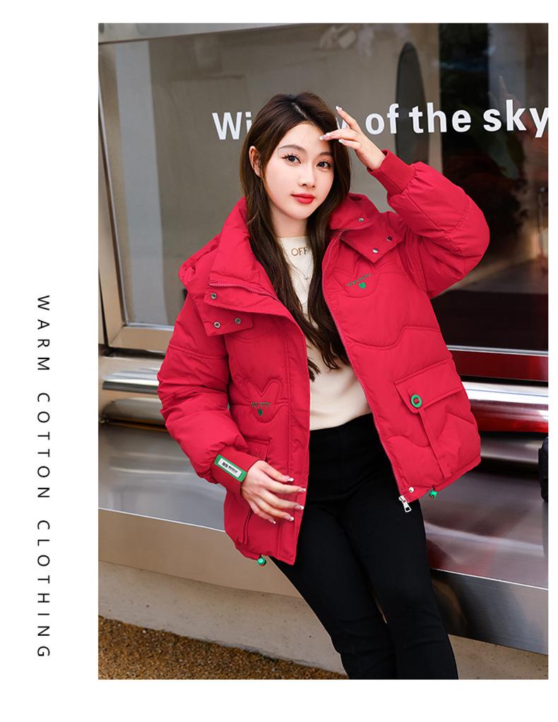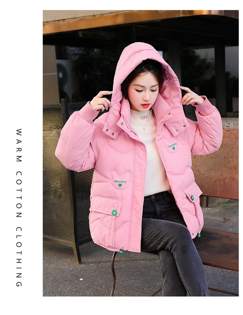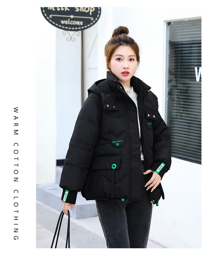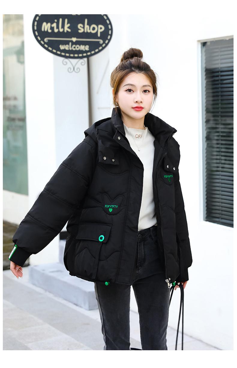 Chaqueta Corta Holgada Acolchada de Algodón para Mujer 2024 Nuevo Otoño e Invierno Transfronterizo Versátil Abrigo de Algodón con Capucha