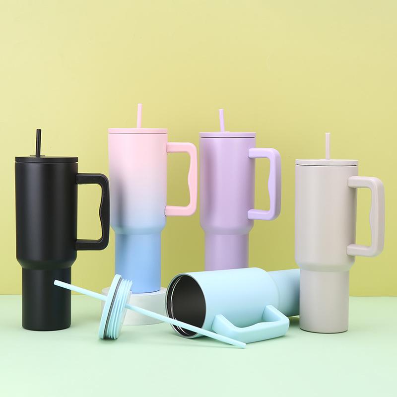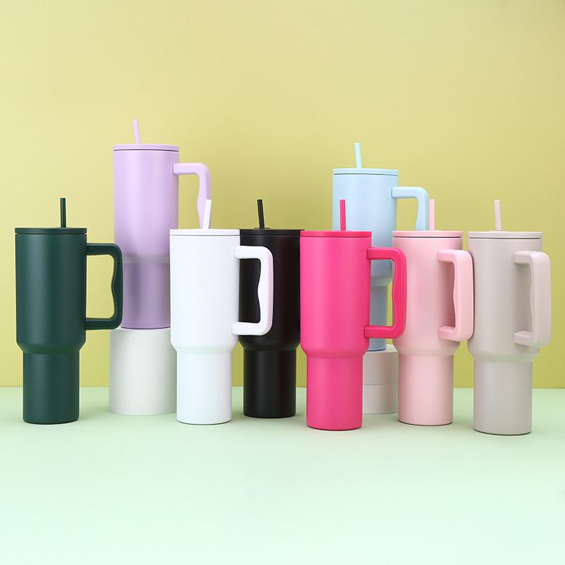 Nueva taza de Amazon para coche de 40 oz con asa, de acero inoxidable 304, taza de vacío, taza de hielo con pajita de gran capacidad