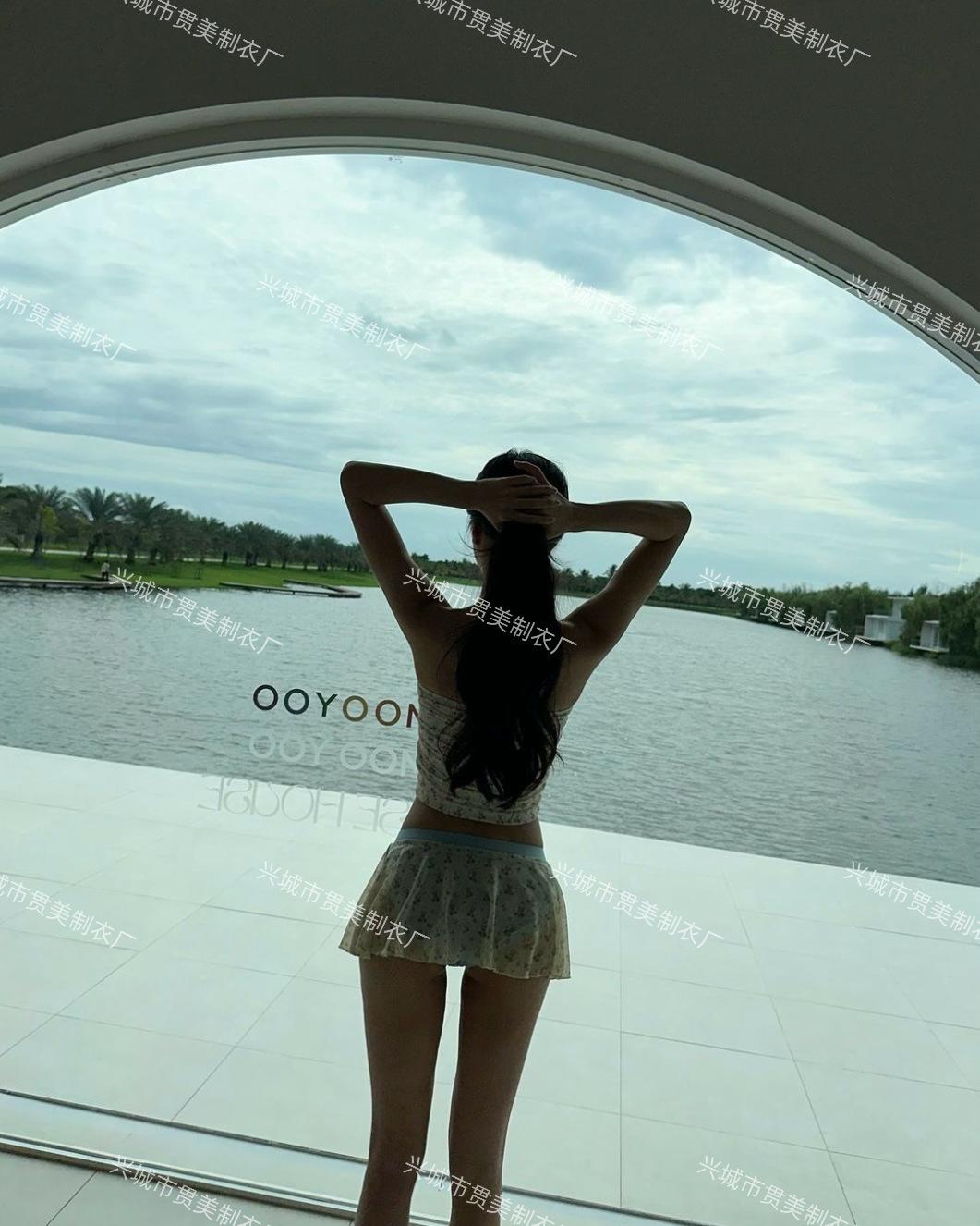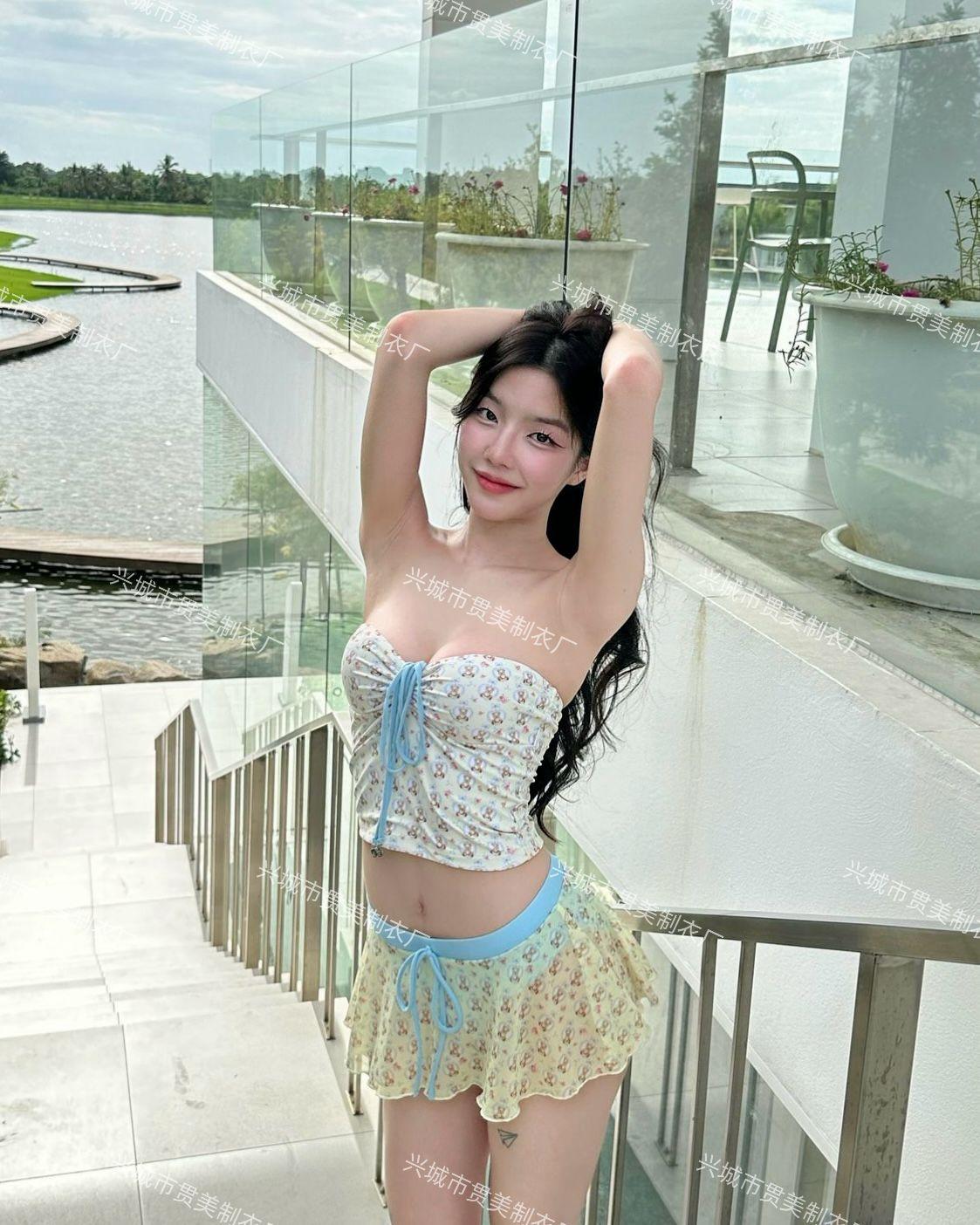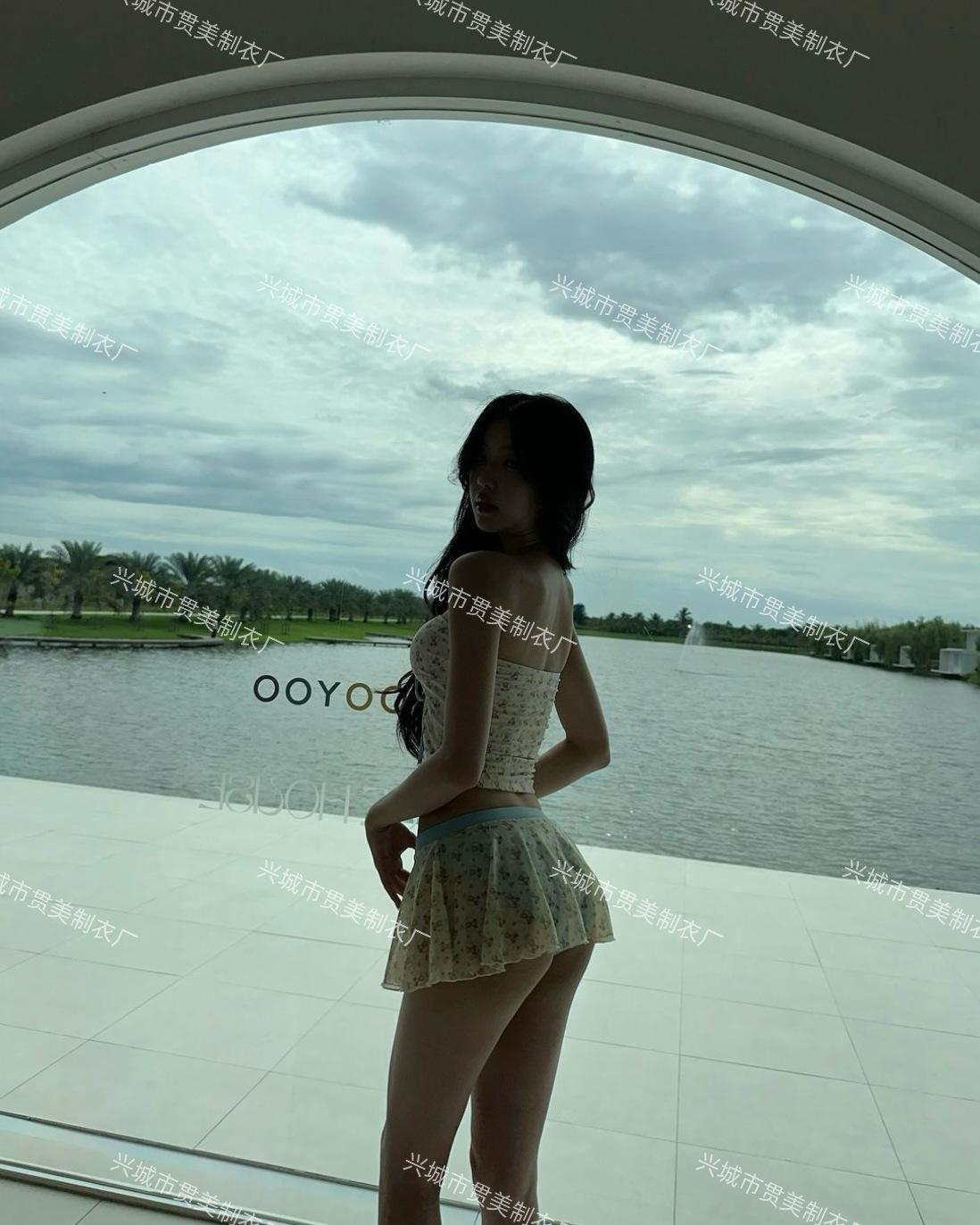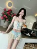 Nuevo Estilo Ins Puro Deseo Bikini Blanco Fresco Pequeño de Alta Gama Vacaciones Junto al Mar Traje de Baño Dividido de Tres Piezas para Mujer