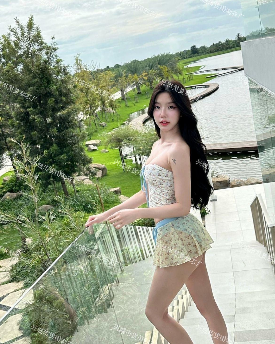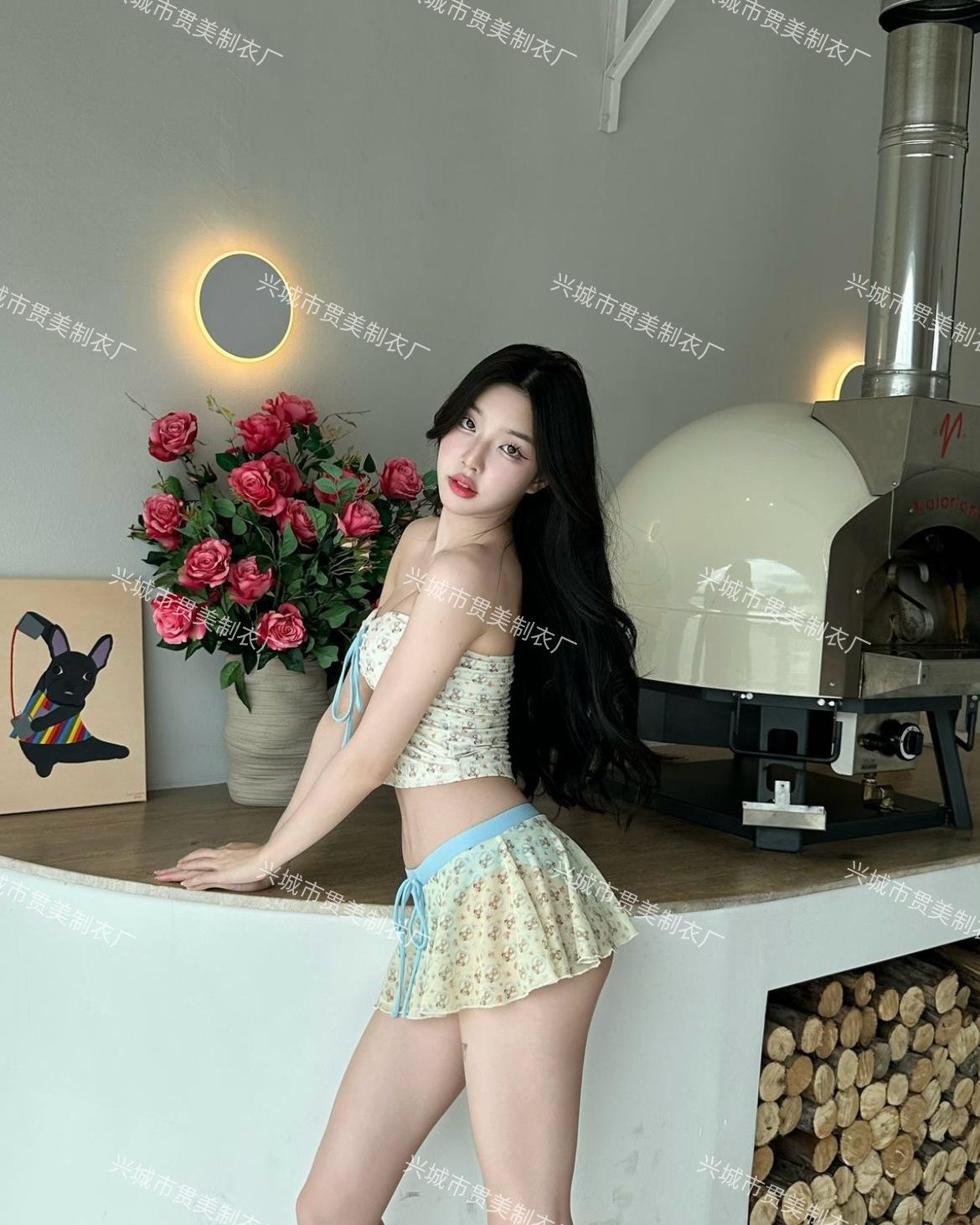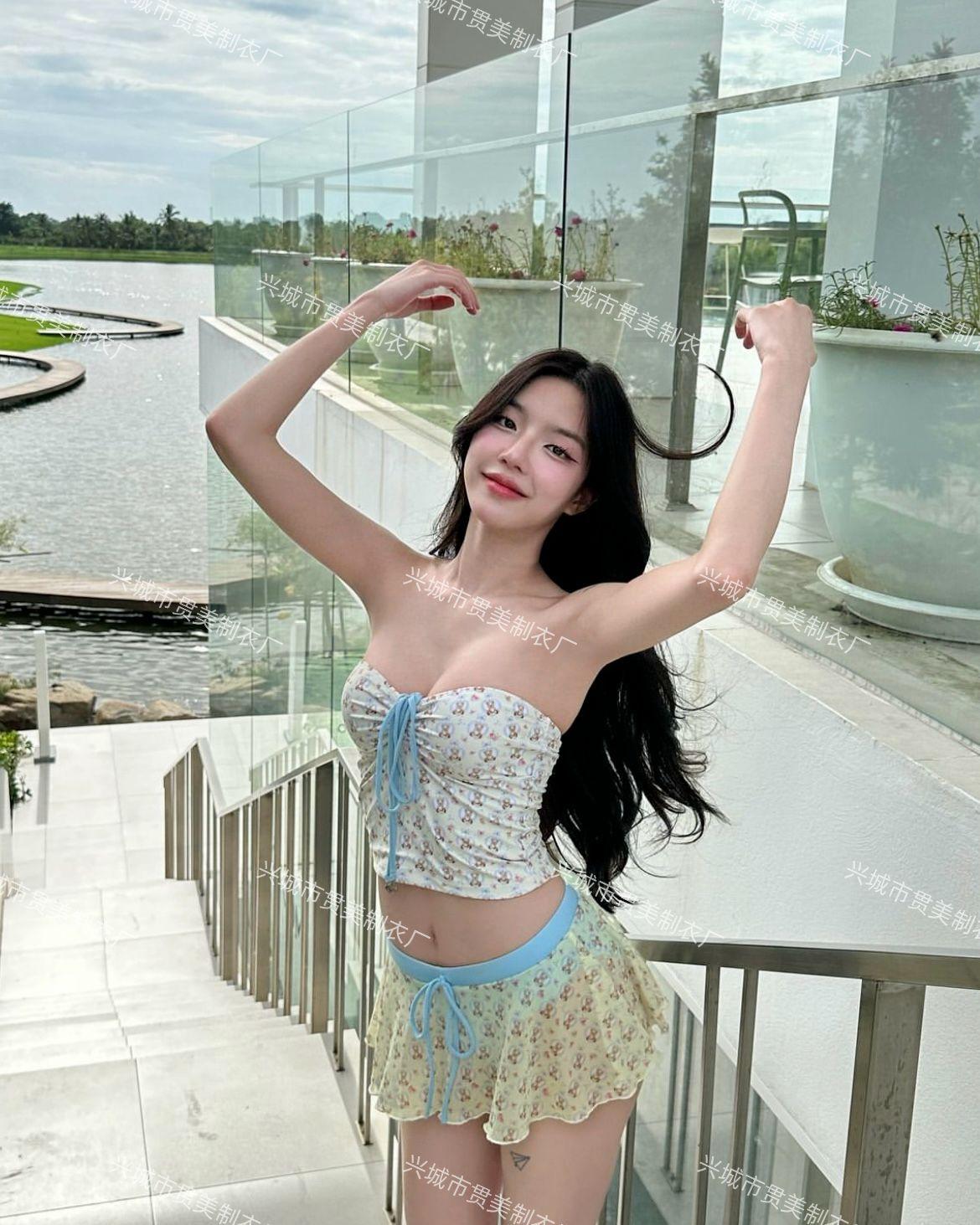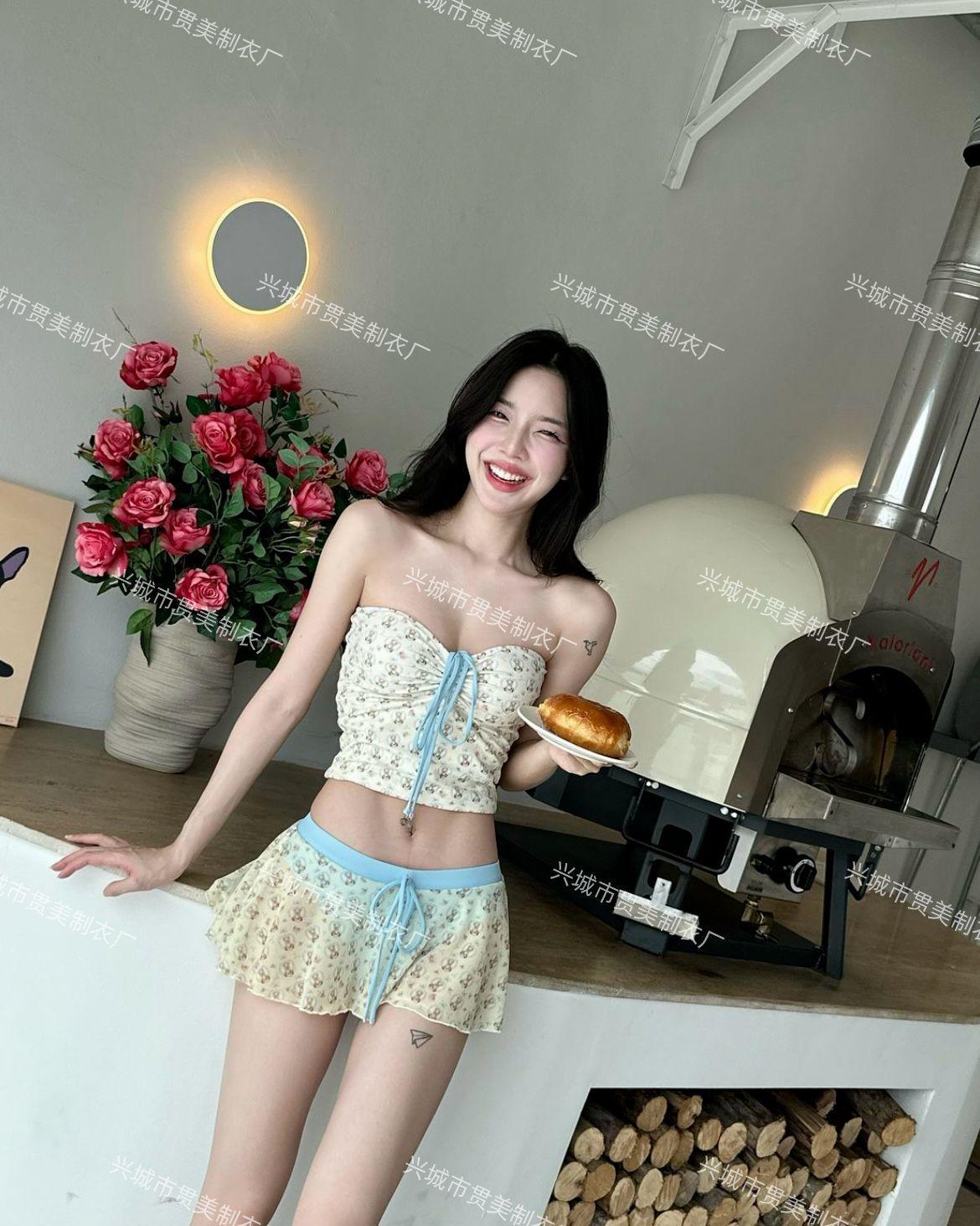 Nuevo Estilo Ins Puro Deseo Bikini Blanco Fresco Pequeño de Alta Gama Vacaciones Junto al Mar Traje de Baño Dividido de Tres Piezas para Mujer