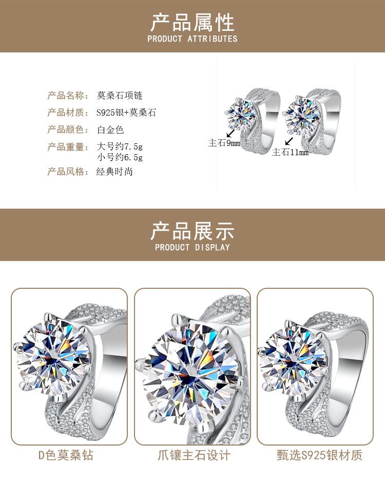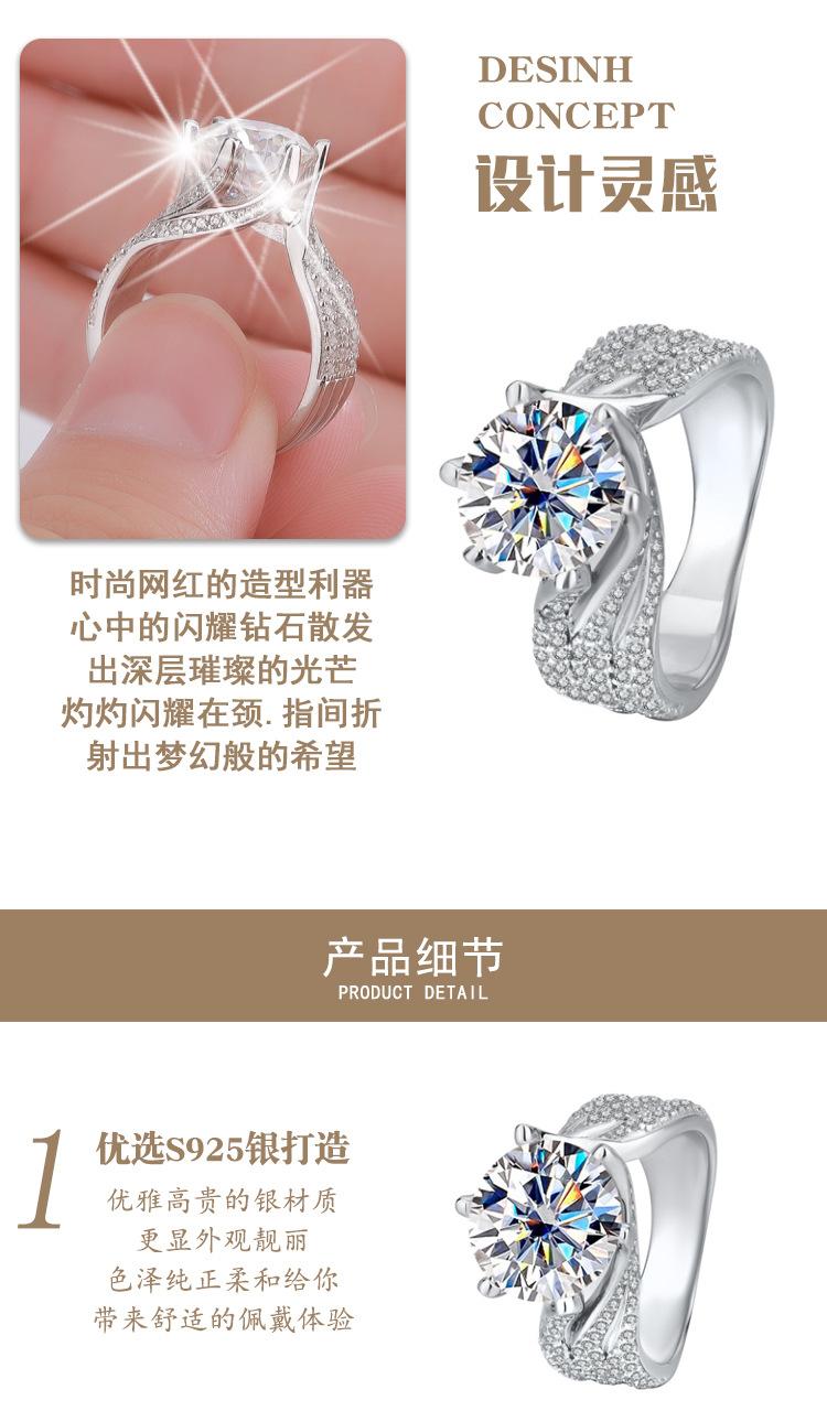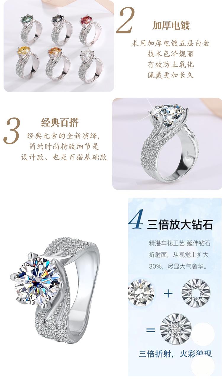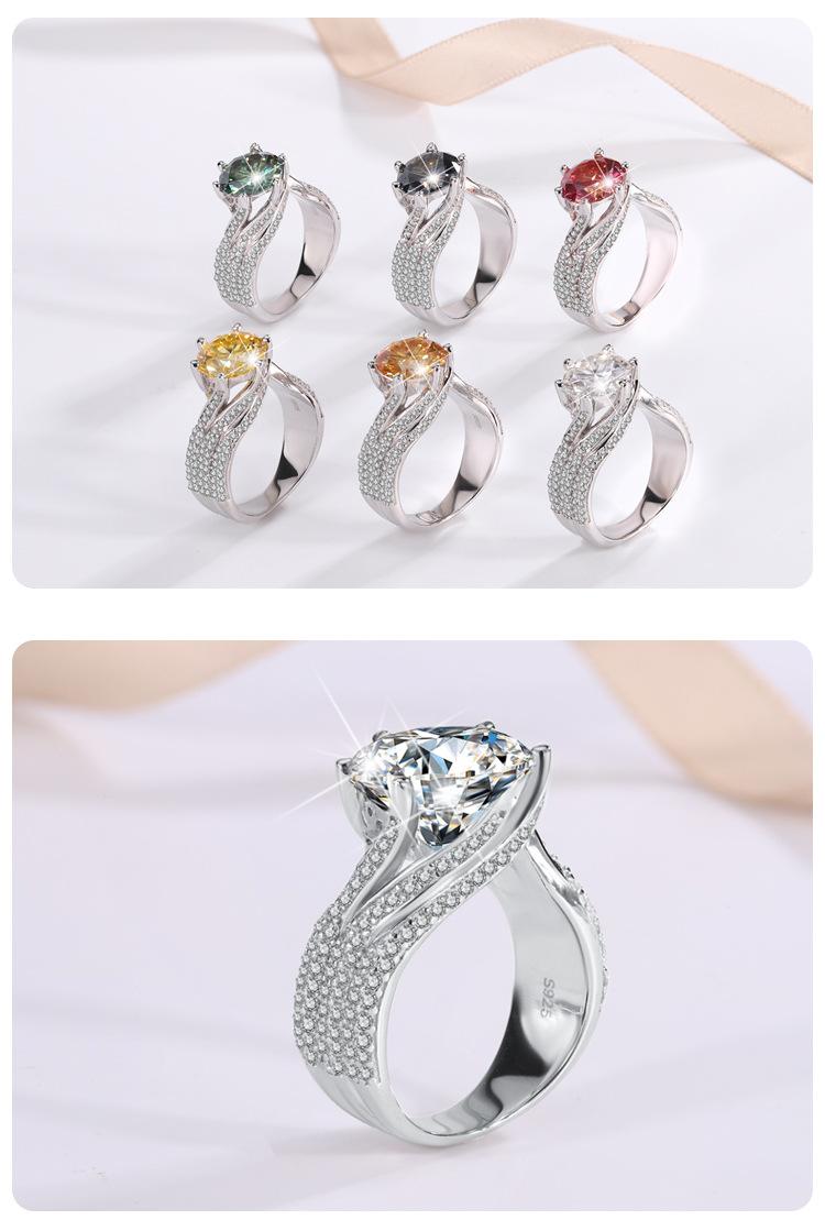 Anillo para Mujer de Plata de Ley S925 III Love Mosan Diamond 5 quilates Diamante Completo Gran Quilate Diamante de Color Suministro Transfronterizo