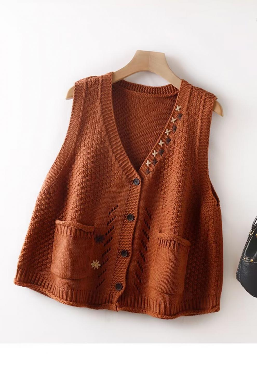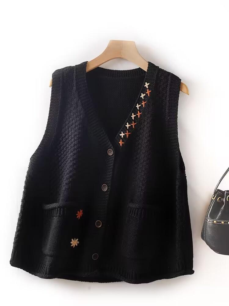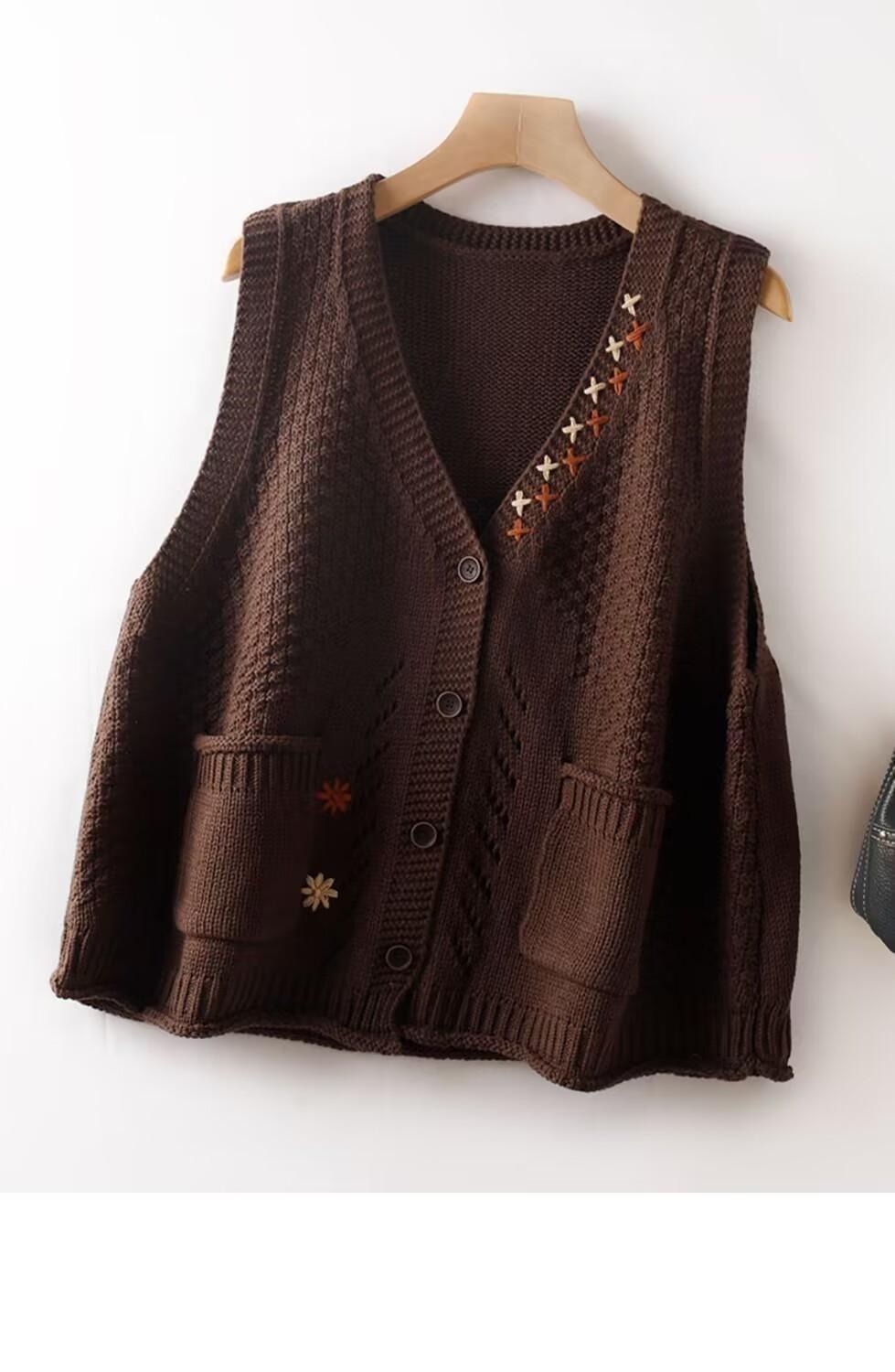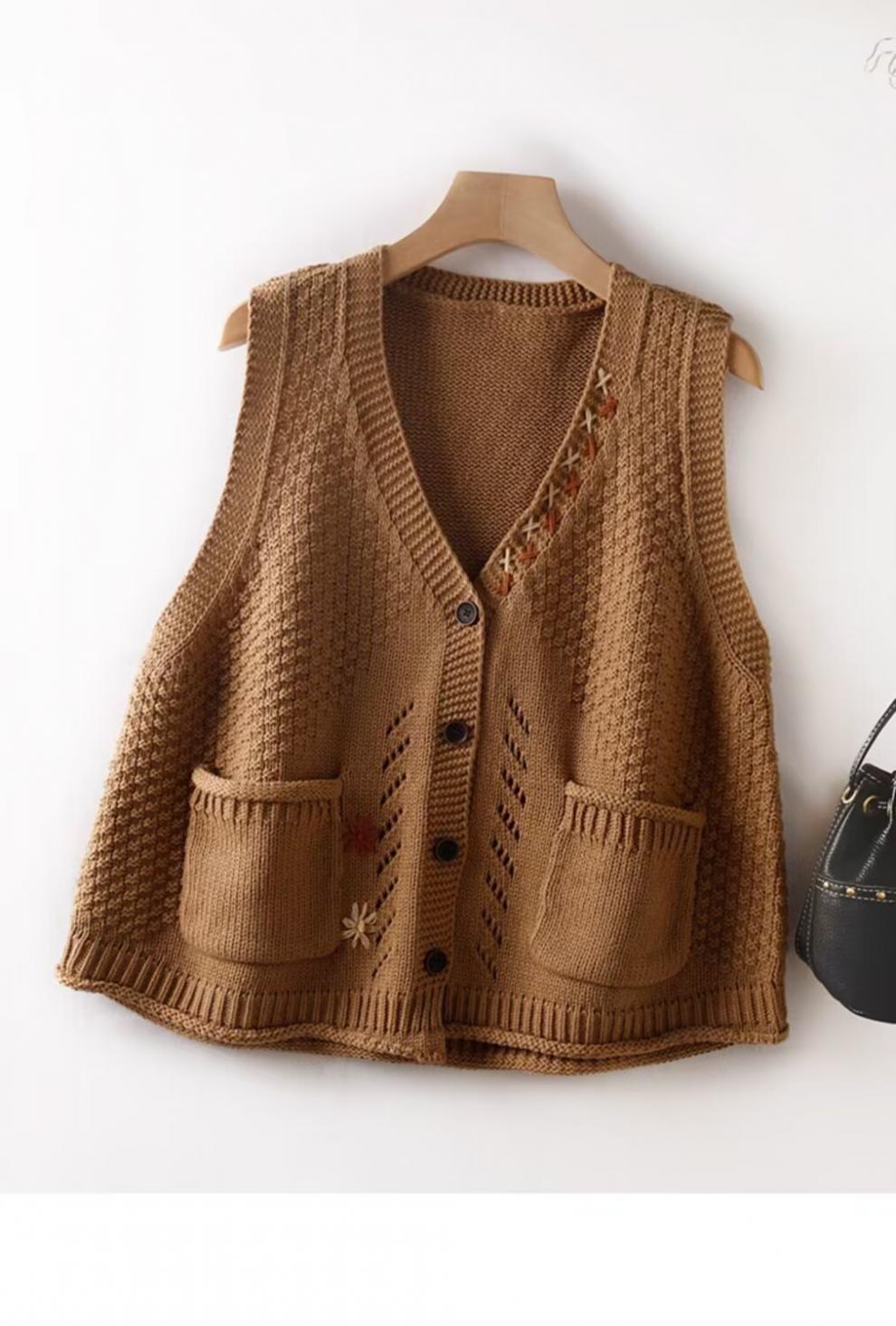 Chaleco Apilado Chaleco de Punto para Mujer Nuevo Otoño e Invierno Suéter Vintage Ropa Exterior Otoño e Invierno Artístico Chaleco Holgado