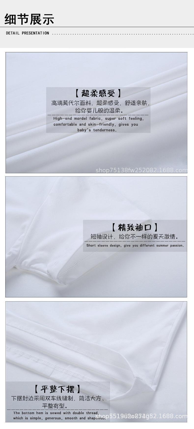 Camiseta en blanco con impresión de manga corta para niños, camiseta de cultura con transferencia de calor, impresión de logotipo de fábrica, conjunto de cuello redondo modal blanco