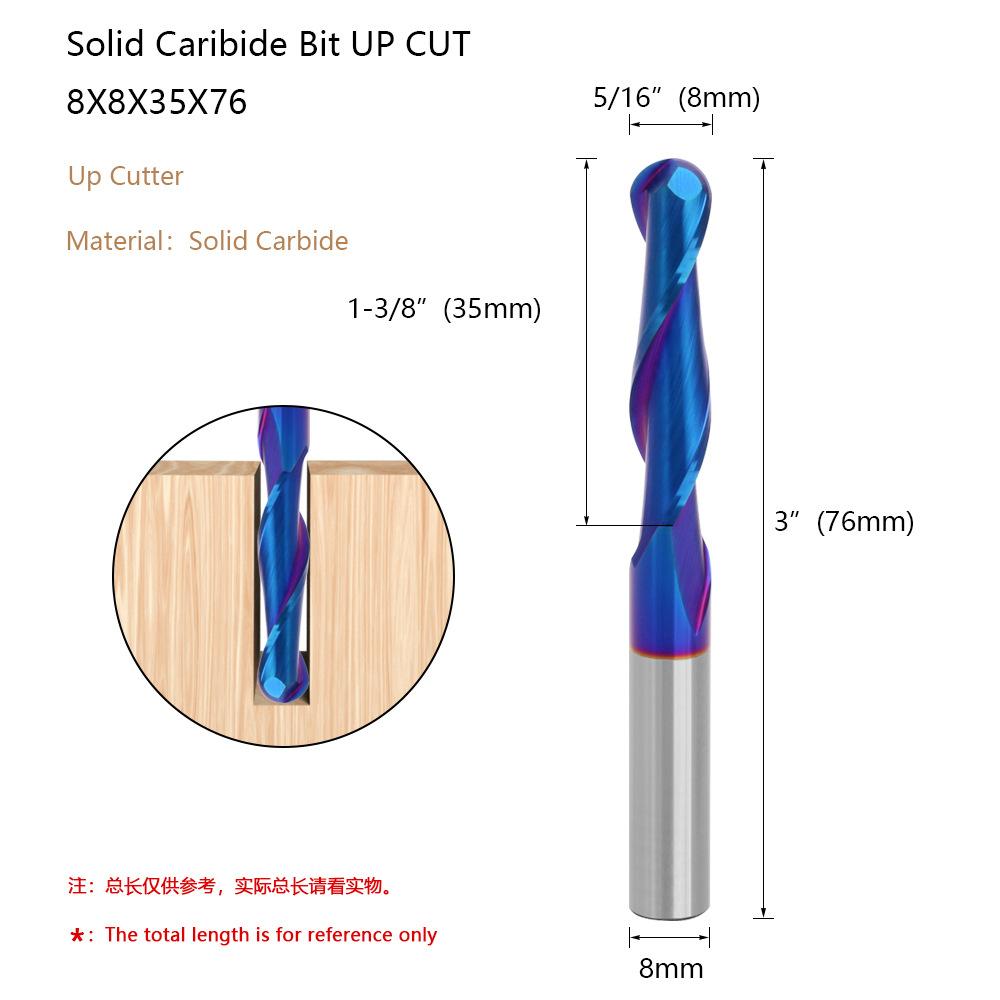 Los mangos de las fresas para carpintería incluyen: 3 mm, 6 mm, 1/4" (6,35 mm), 8 mm, 12 mm, 1/2" (12,7 mm)
