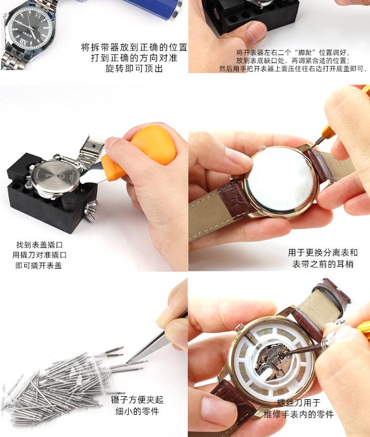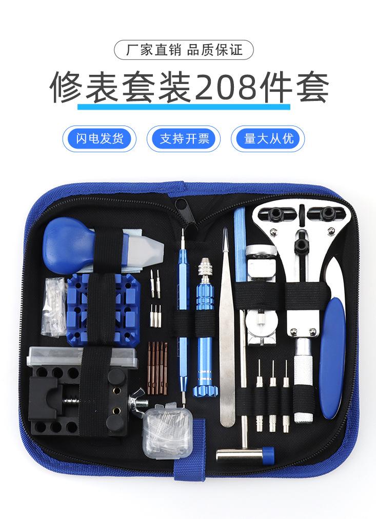 Herramienta de reparación de relojes, bolsa con cremallera, juego de 208 piezas, desmontaje, combinación de herramientas de reparación de relojes