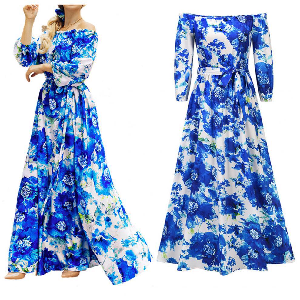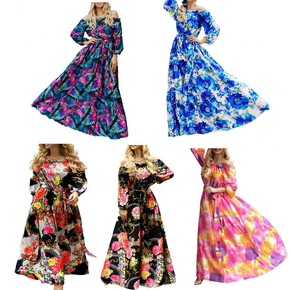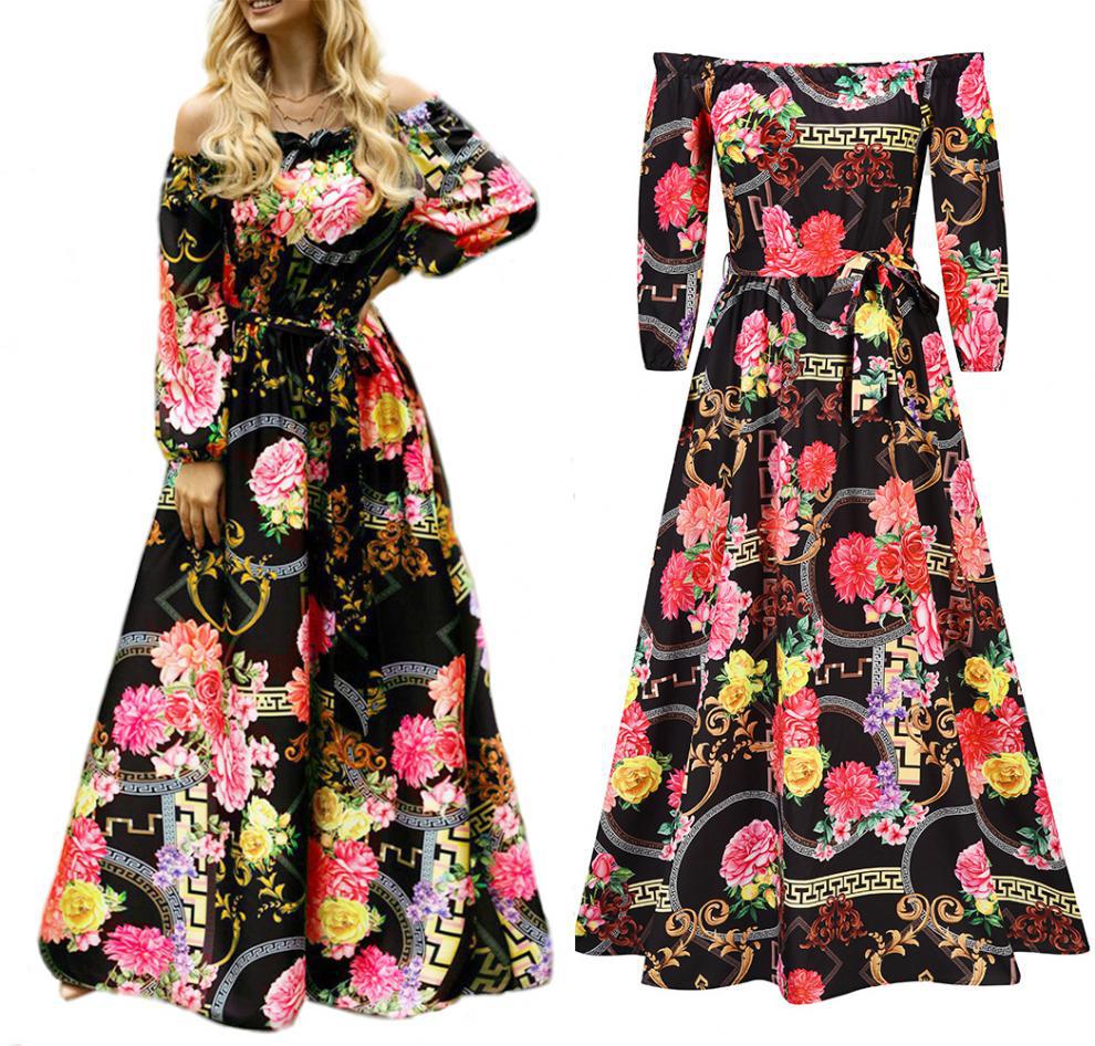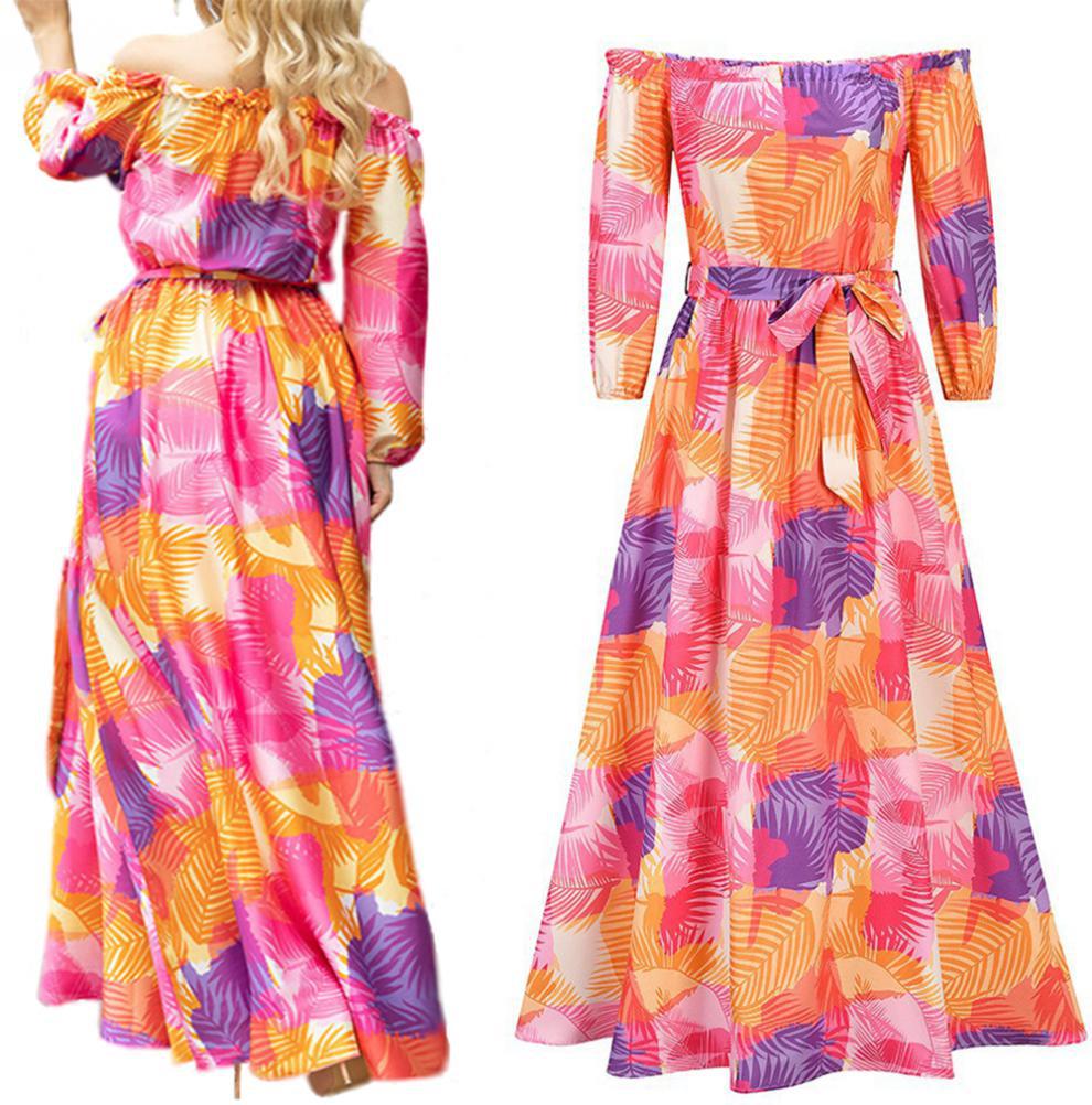 Vestido largo de comercio exterior de Europa y América de Amazon, primavera y otoño, floral, sin tirantes, espalda descubierta, elegante vestido de fiesta 2022