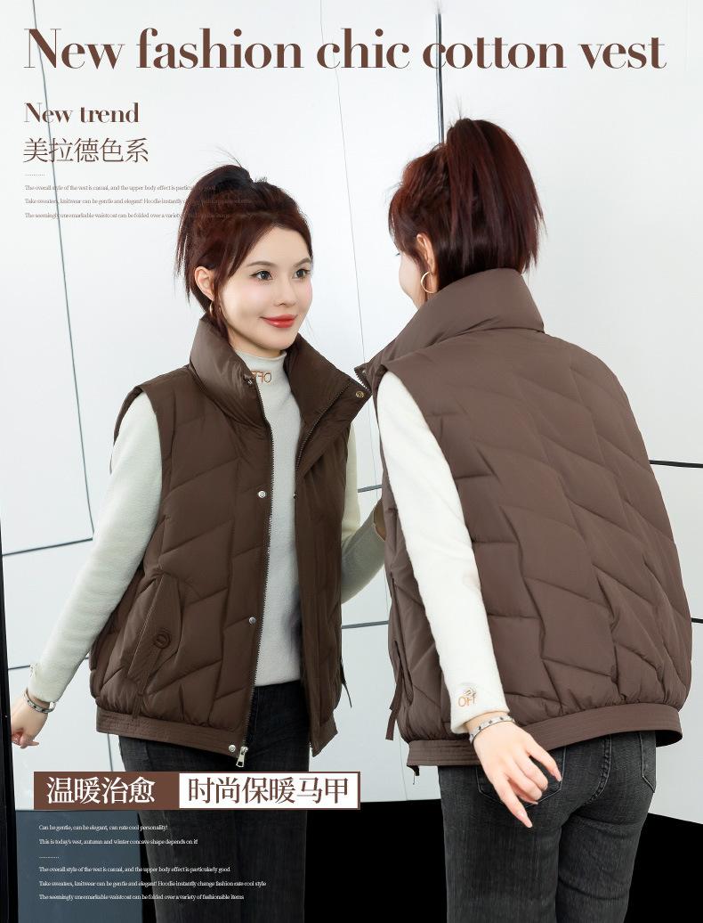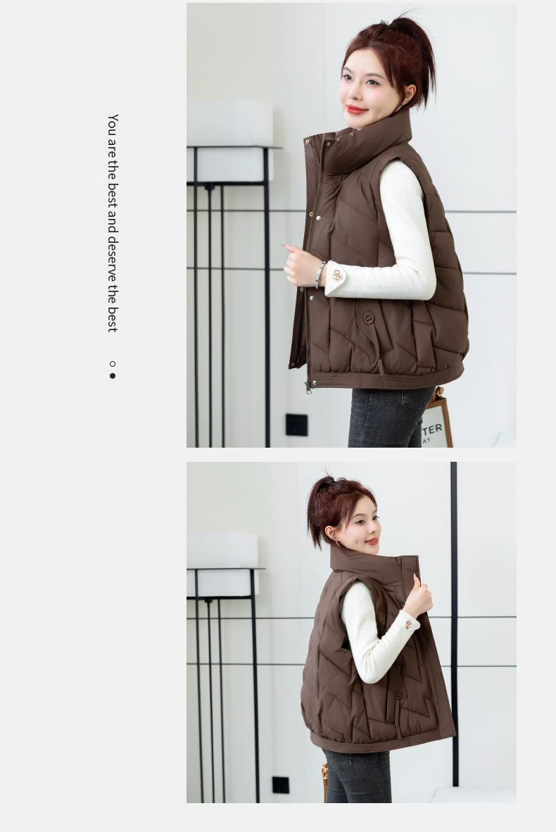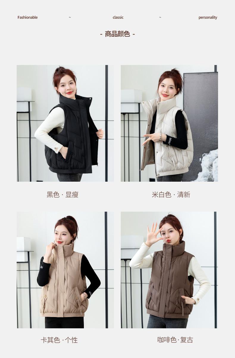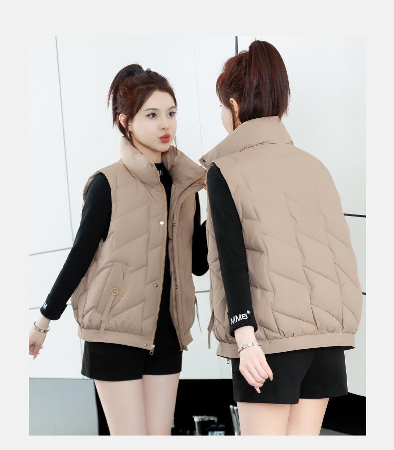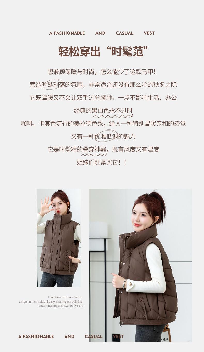 Suministro transfronterizo otoño e invierno chaleco corto para mujer chaleco de algodón suelto color sólido cuello alto abrigo chaleco marea al por mayor