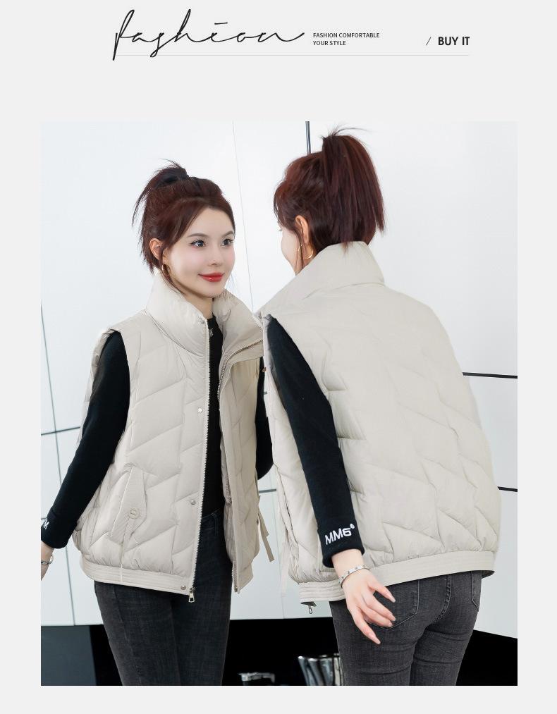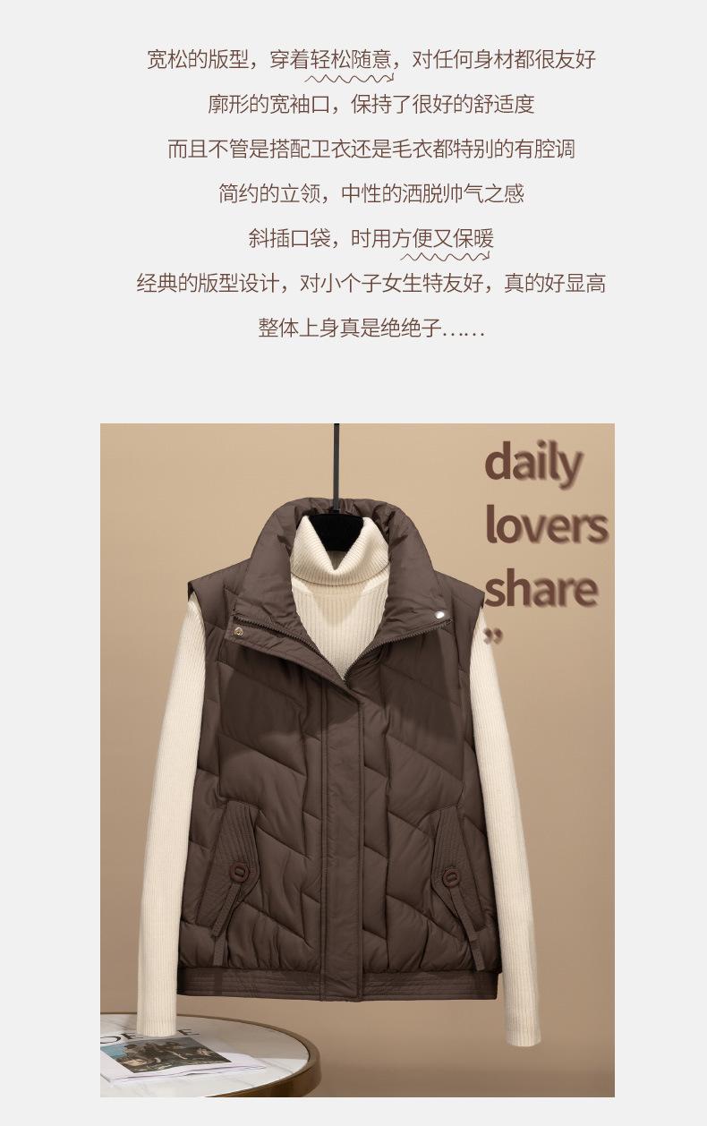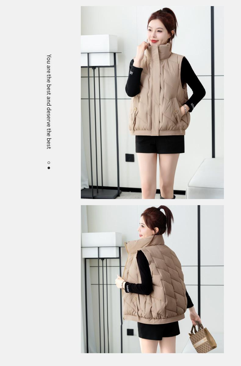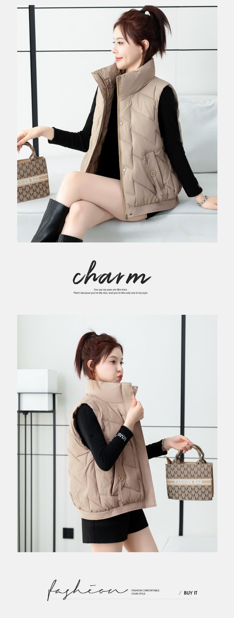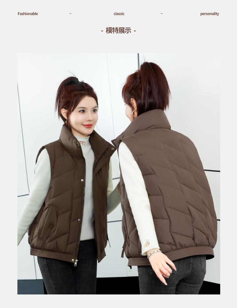 Suministro transfronterizo otoño e invierno chaleco corto para mujer chaleco de algodón suelto color sólido cuello alto abrigo chaleco marea al por mayor