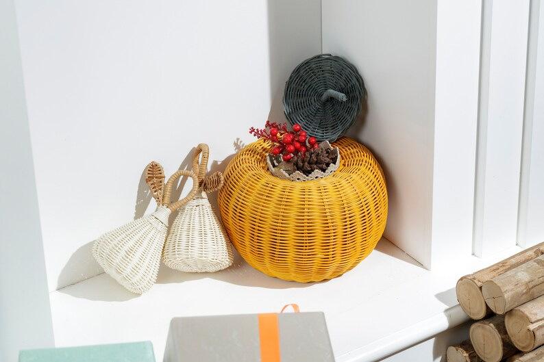 Accesorios de Decoración de Halloween Tejidos de PP Tipo Ratán, Cesta de Dulces de Mano para Niños para Truco o Trato, Accesorios para Fiesta