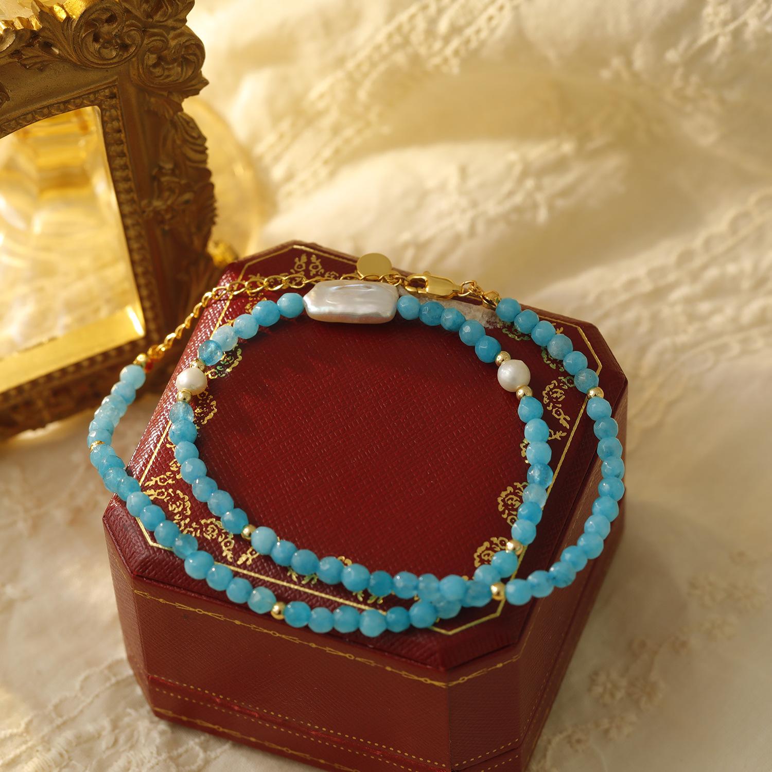 Material: Cobre/Perla de Agua Dulce/Piedra Azul