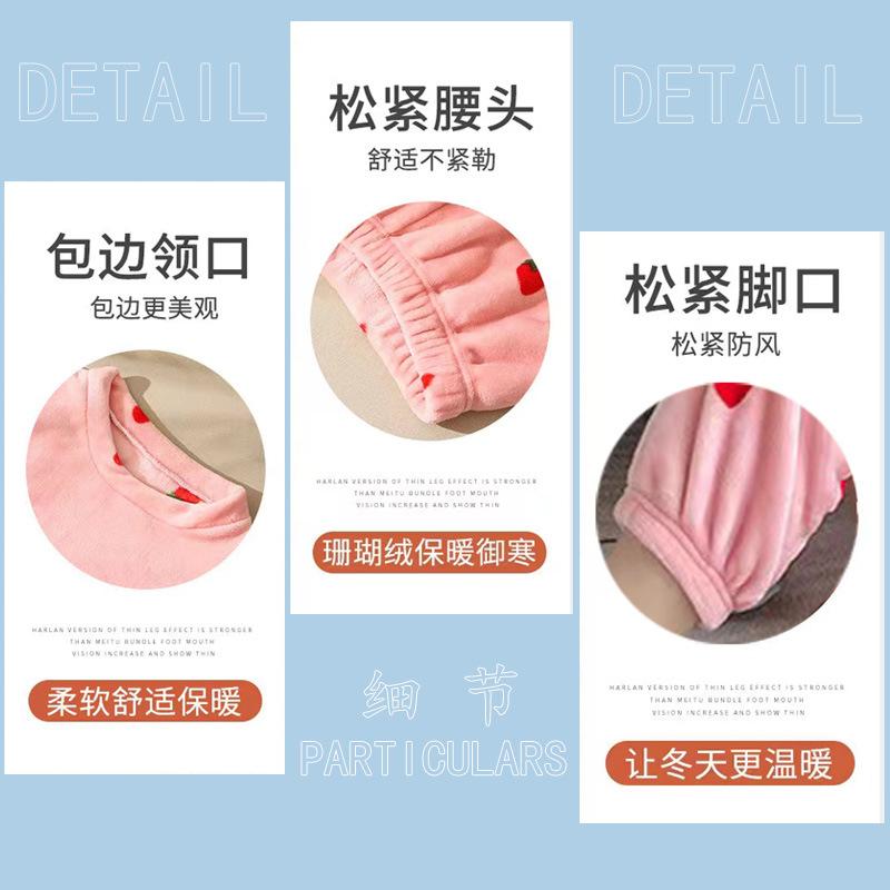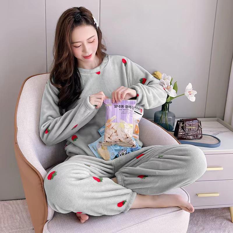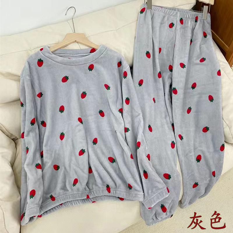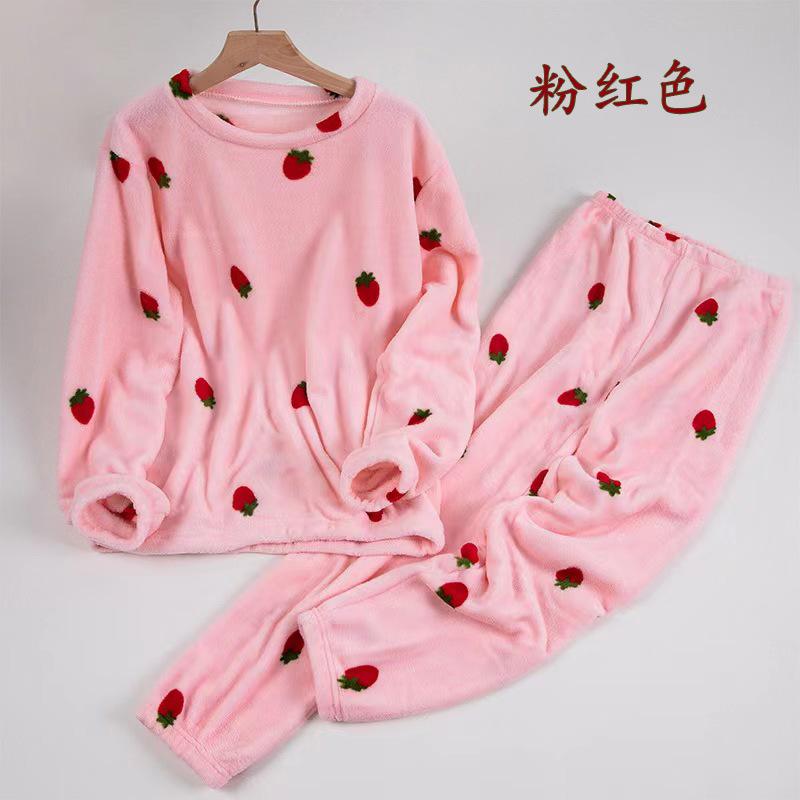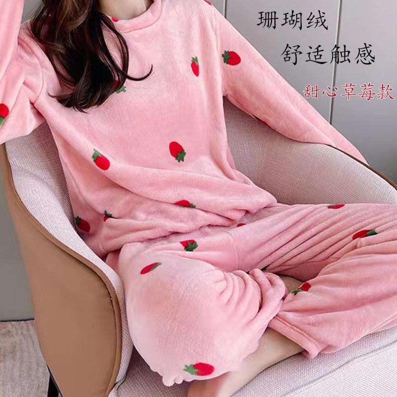 Terciopelo Coral Otoño e Invierno Terciopelo Franela Cálido Traje Fresa Cariño Lindo Se Puede Usar Afuera Ropa para el Hogar Traje Pijama