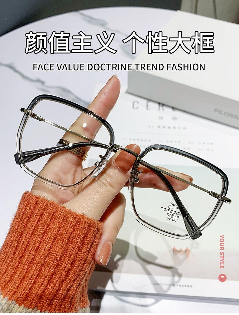 Armazón de Lentes para Hombre Estilo Coreano Anti Luz Azul para Cara Grande, Aspecto Adelgazante Sin Maquillaje, Armazón Grande para Mujer, Estilo Poligonal de Celebridad de Internet de Moda Lentes para Miopía