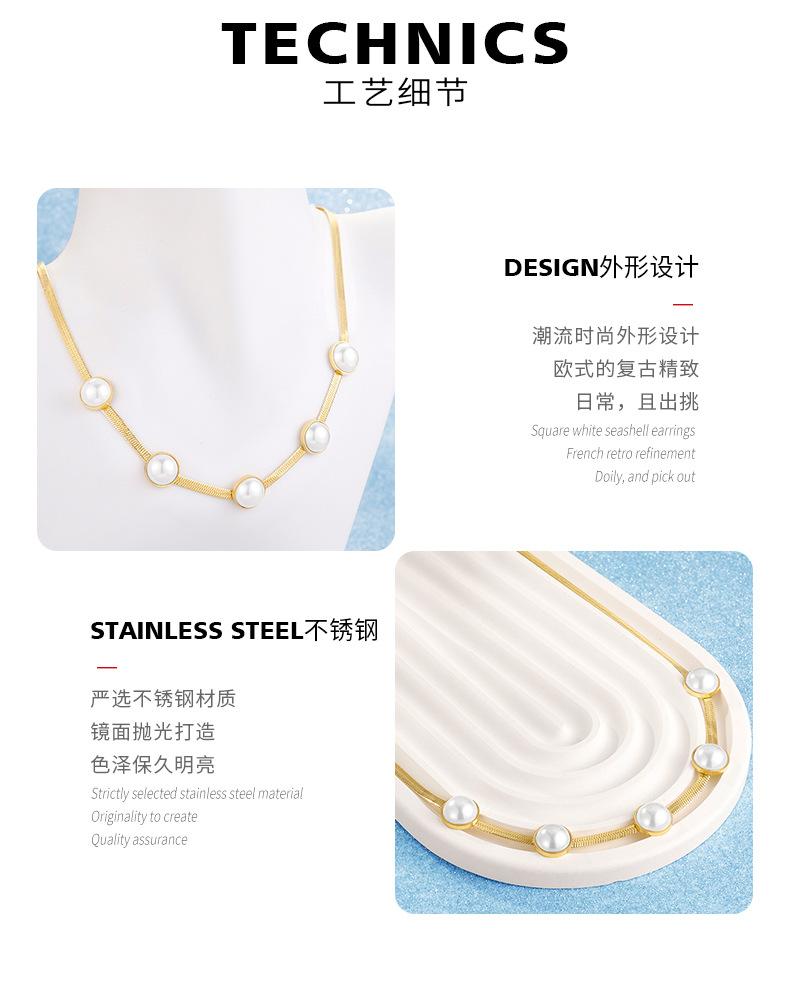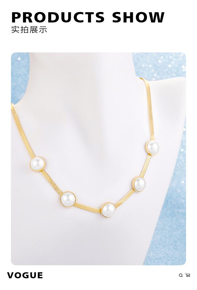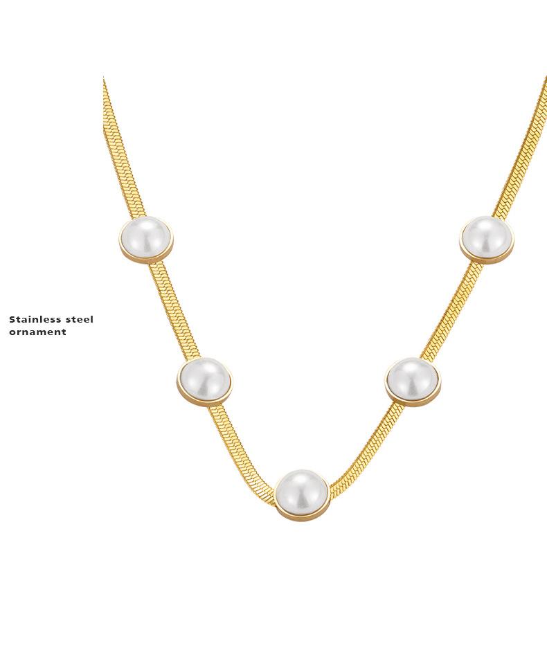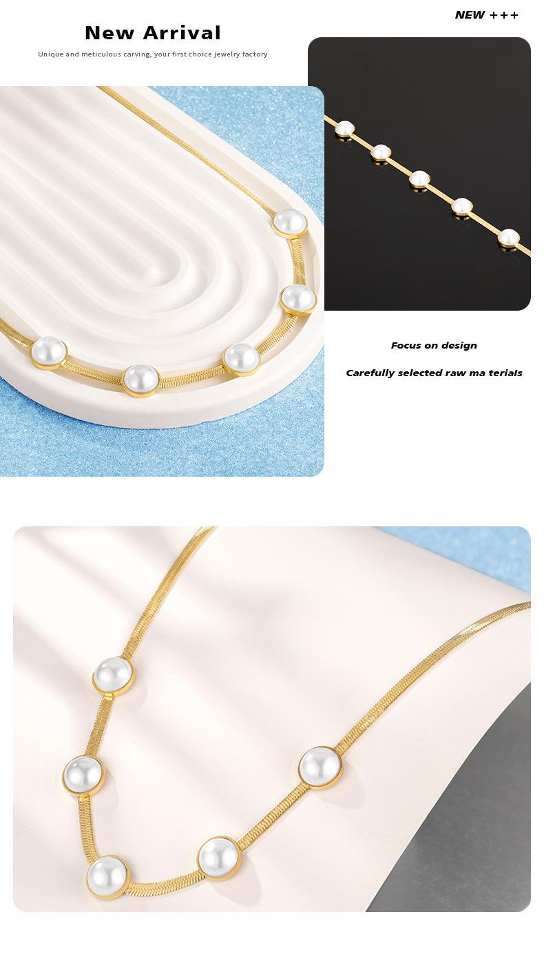 Collar de Perlas de Imitación para Dama Europea y Americana Acero de Titanio Chapado en Oro de 18k Cadena de Espiga Sentido de Diseño Elegante de Lujo Ligero Cadena para Clavícula Cadena Corta