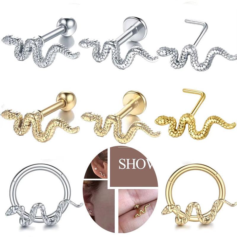 Piercing para labio de serpiente de acero inoxidable, diseño de uñas en forma de L, para nariz, estilo europeo y americano, joyería para piercing de nariz.