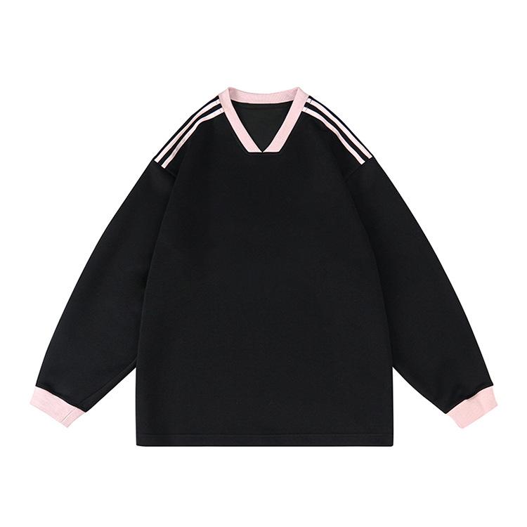 Ventas Directas de Fábrica Sudadera Cuello V Ropa de Trabajo Personalizada Chaqueta con Logo Estampado para Mujer Personalizada al Por Mayor Top con Rayas de Contraste
