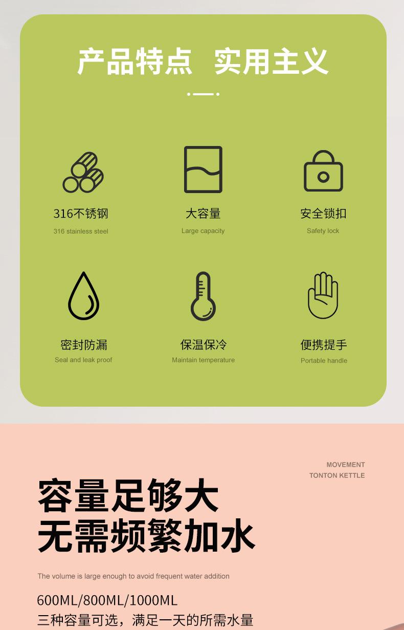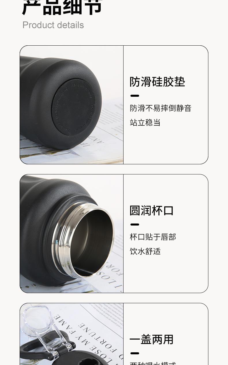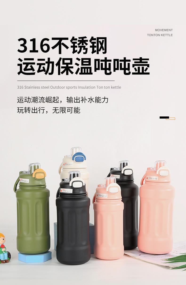 Taza de agua de alto valor de color, taza térmica de gran capacidad, taza de acero inoxidable de grado alimenticio 316, botella de agua deportiva de toneladas al por mayor