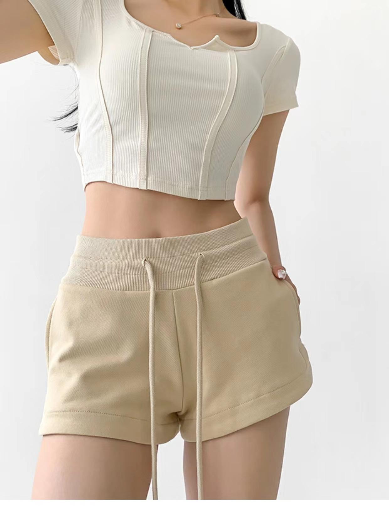 Shorts Casuales Retro Americanos de Verano para Mujer 2024 Nuevos de Cintura Alta Ajustados Hot Pants para Chicas Hot