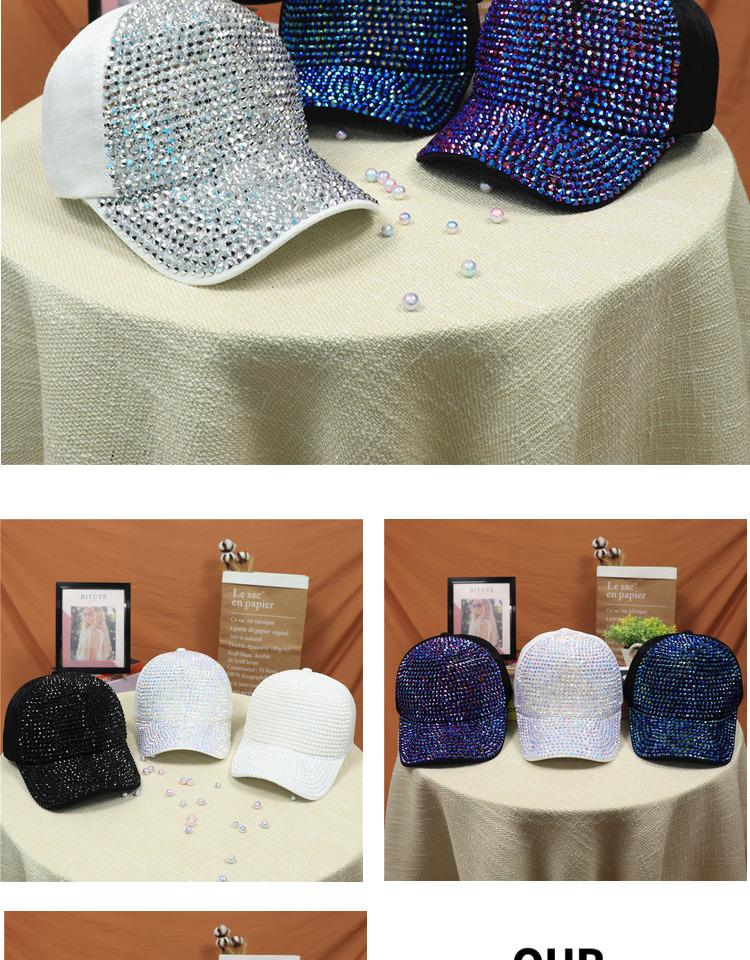 Black White Diamond net cap, Black Blue Diamond, Black Black Diamond net cap, White colorful rhinestone net ca...