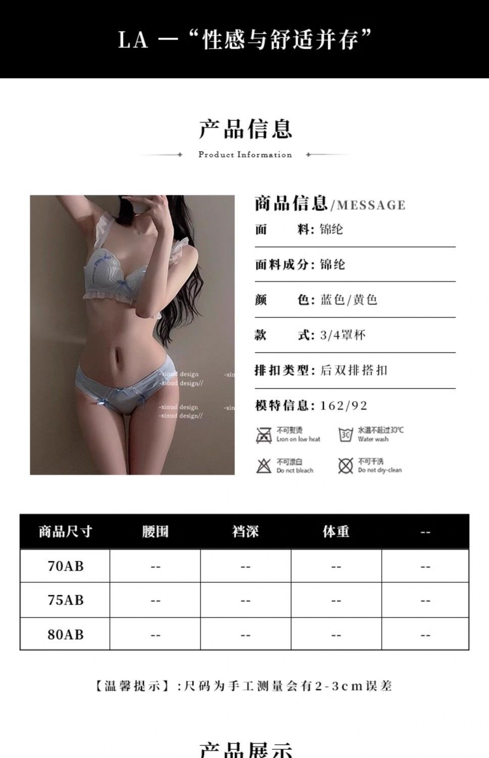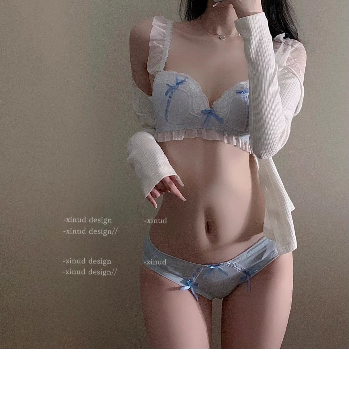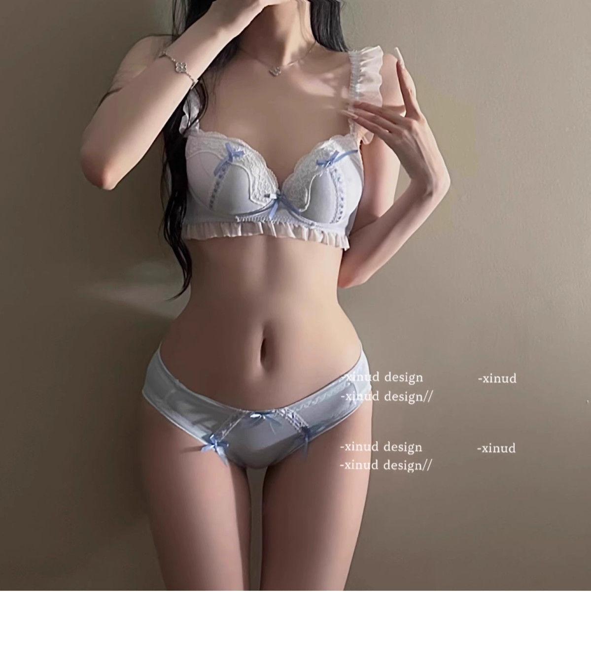 Nuevo Conjunto de Brasier Estilo Japonés Lindo y Dulce para Niña Sin Aro de Acero Pecho Pequeño Recogido Anticaída Ropa Interior de Encaje para Mujer