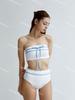 [2 colores] Nuevo traje de baño de cintura alta sin tirantes con lazo para niña dulce, bikini de aguas termales con abertura para mujer, pecho pequeño y cobertura simple del vientre.