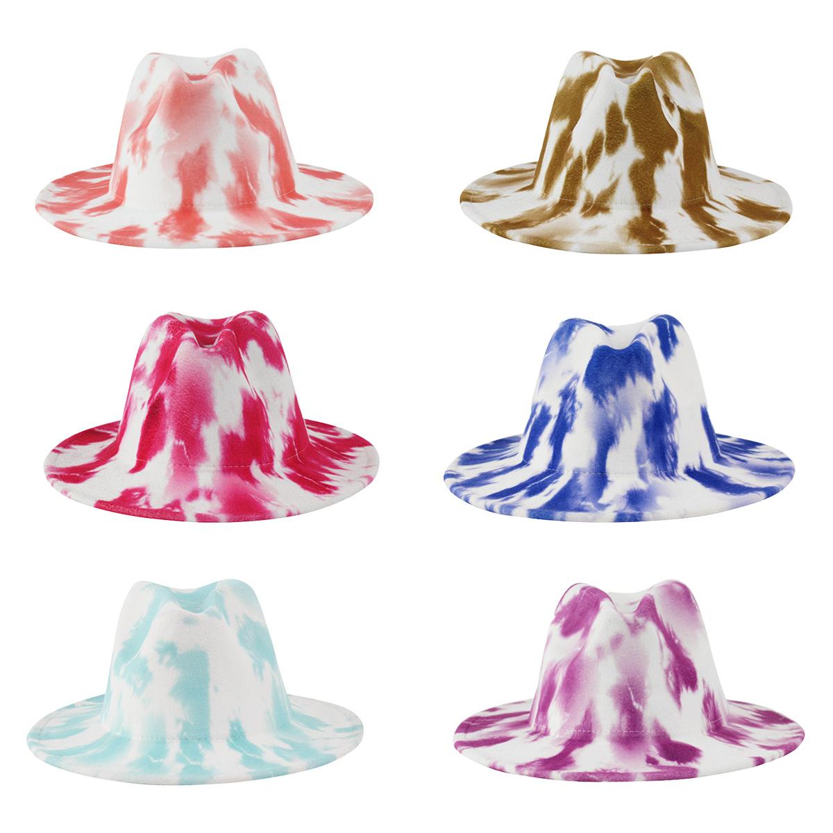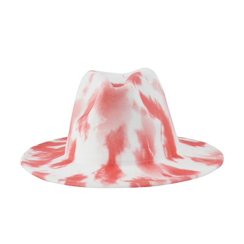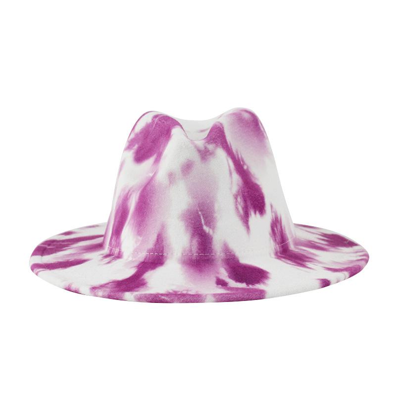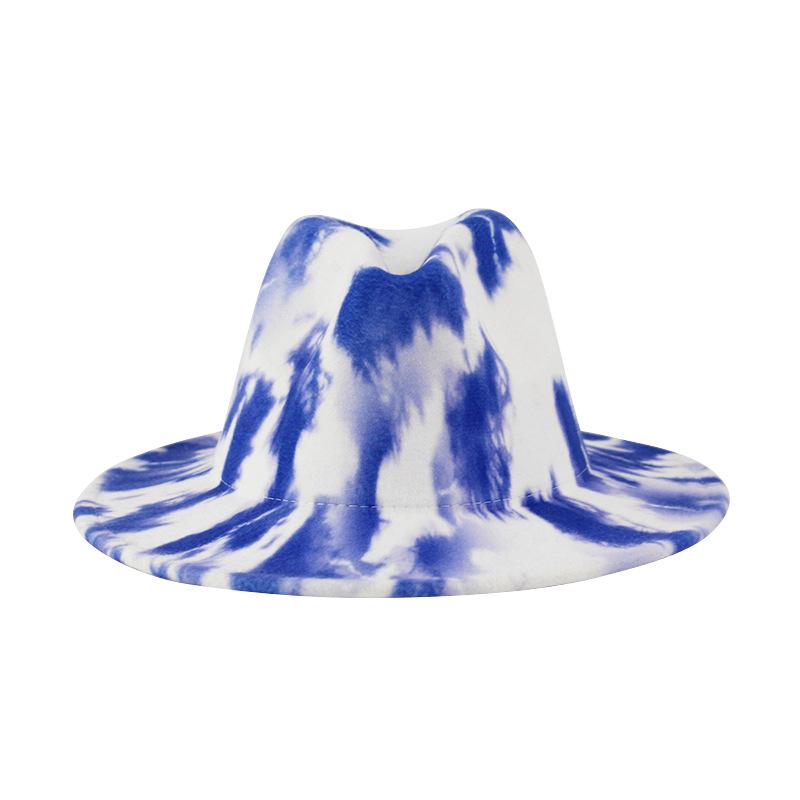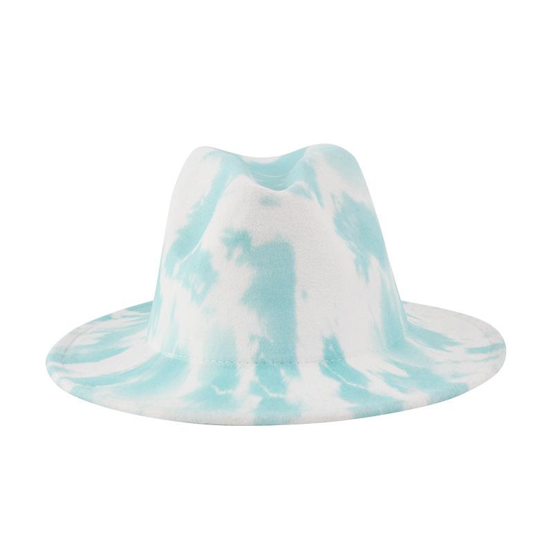 Sombrero de Lana Tie-Dye con Degradado de Color Estilo Tinta Impresa Sombrero de Jazz Estilo Británico Retro Otoño e Invierno Nuevo Sombrero de Copa Combinable