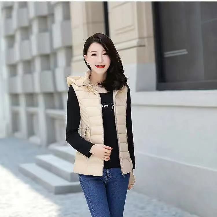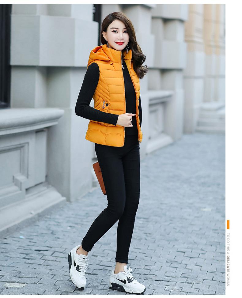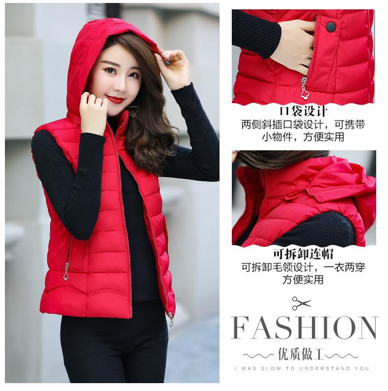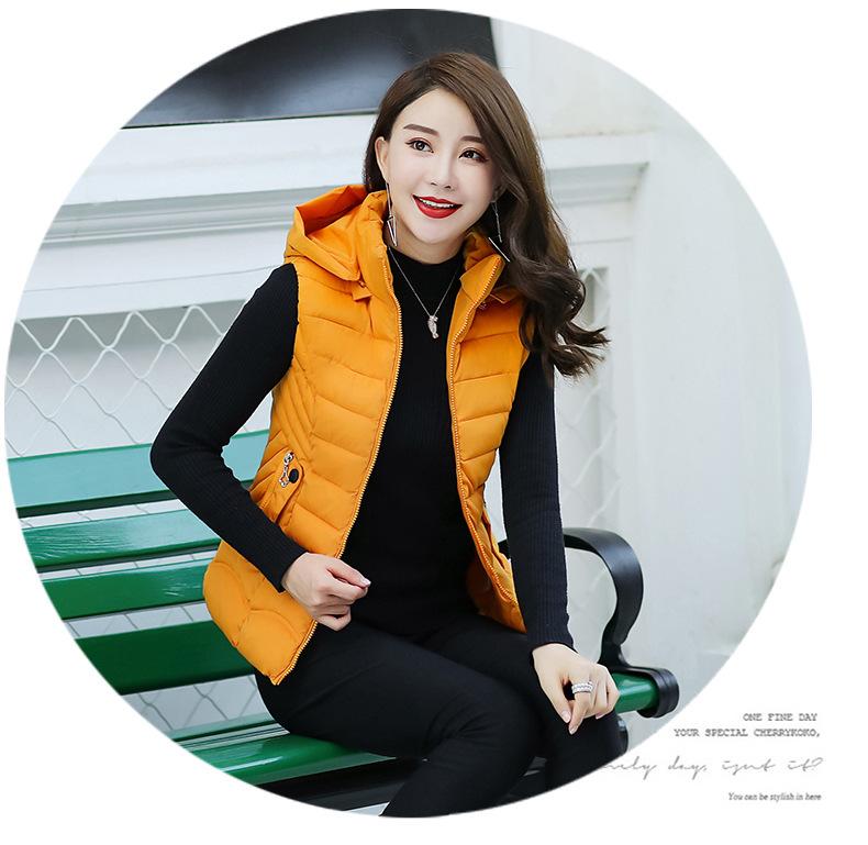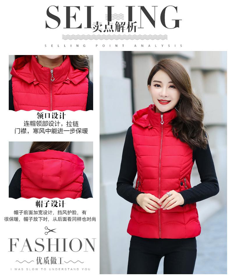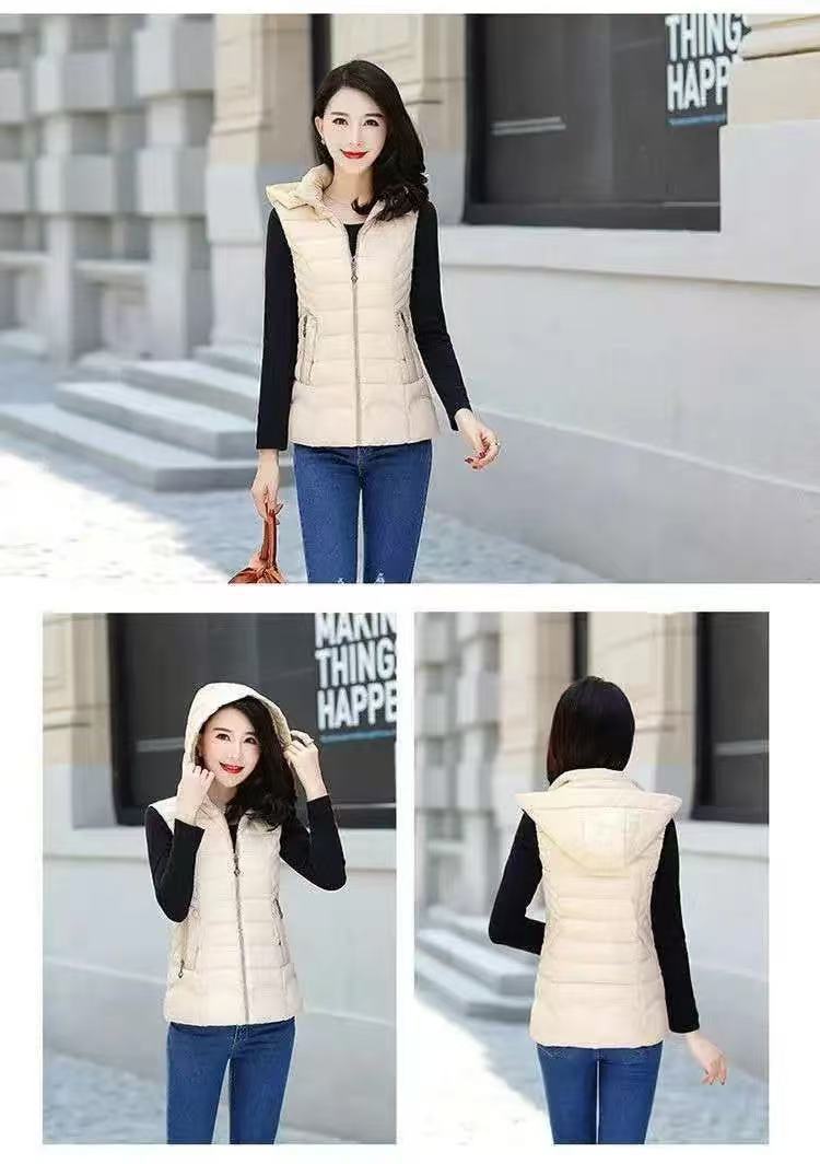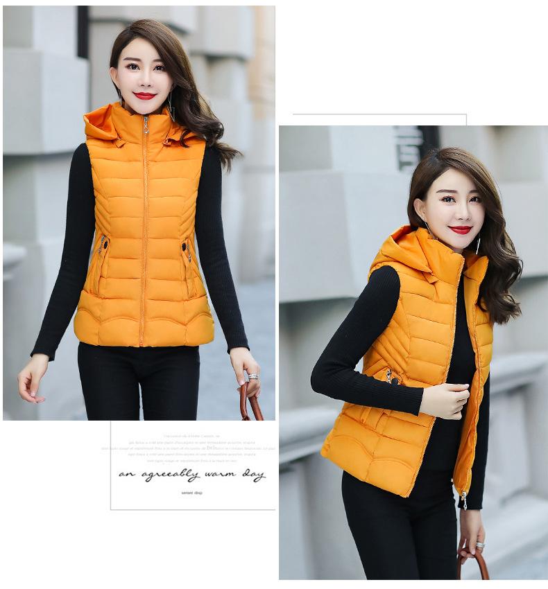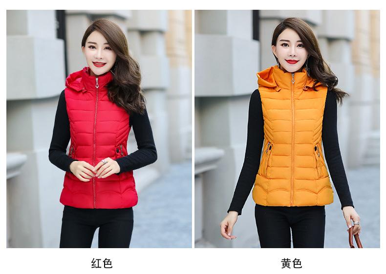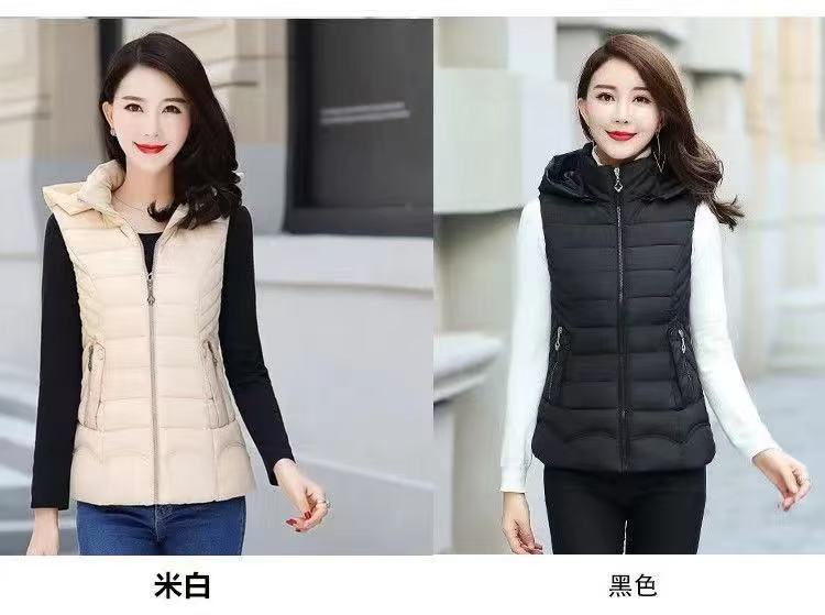 Chaleco sin mangas acolchado de algodón para mujer, suministro de Amazon, chaleco de algodón con capucha para otoño e invierno, chaleco holgado transfronterizo.