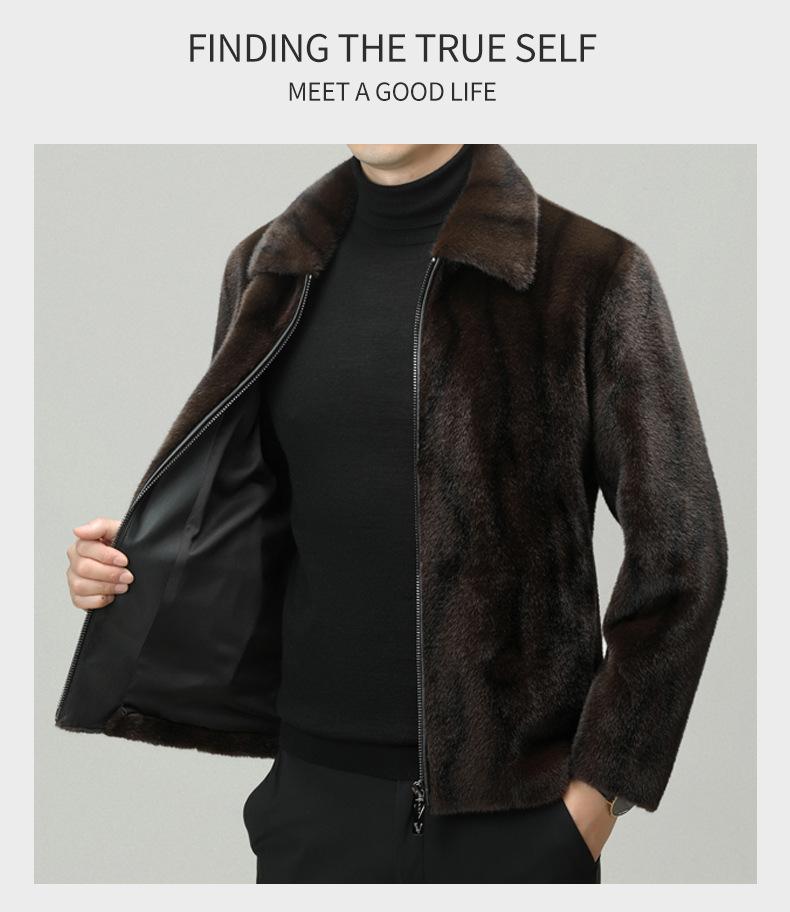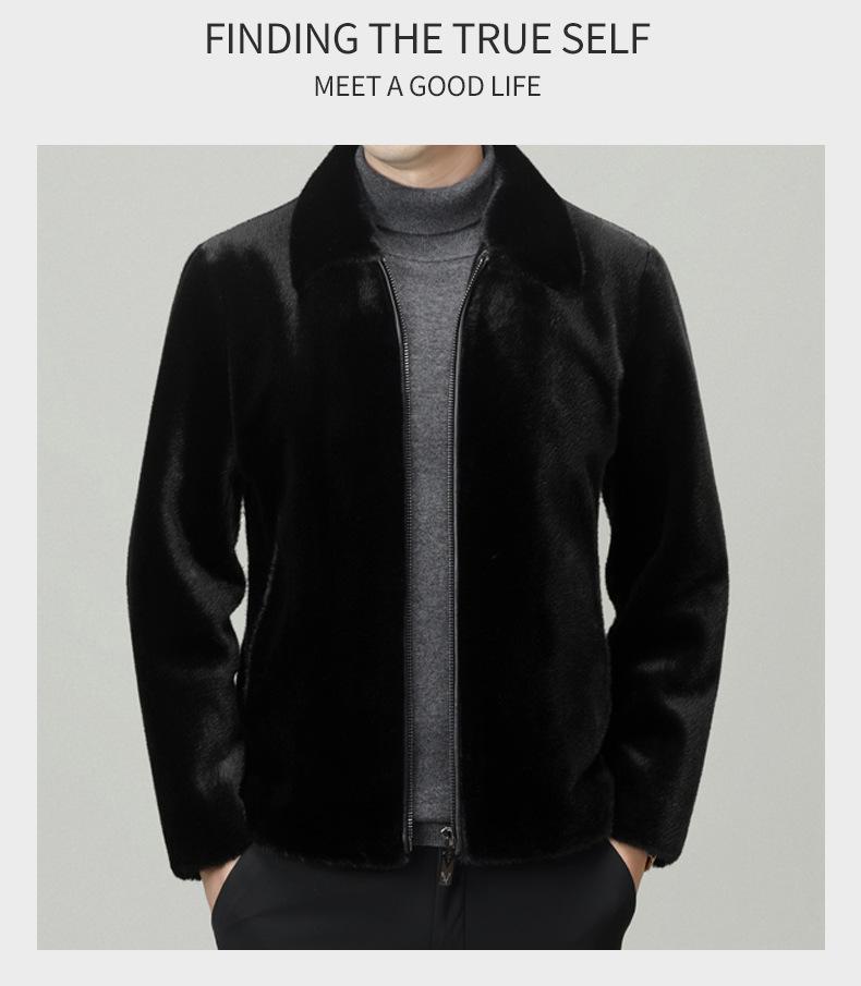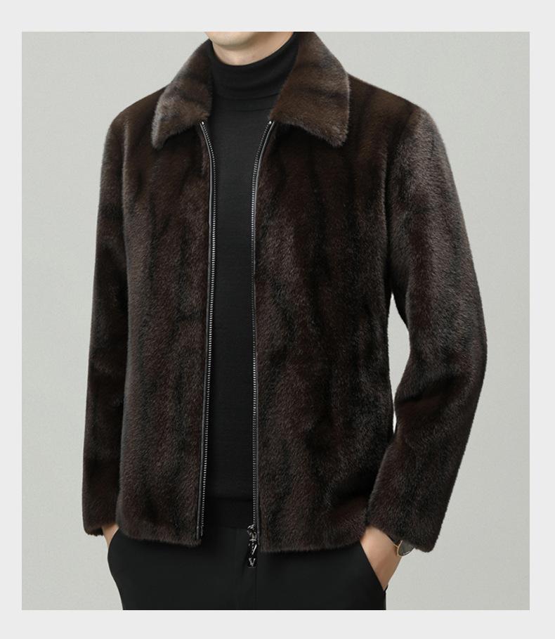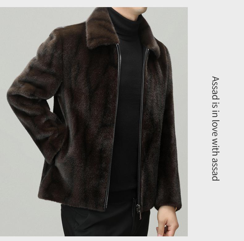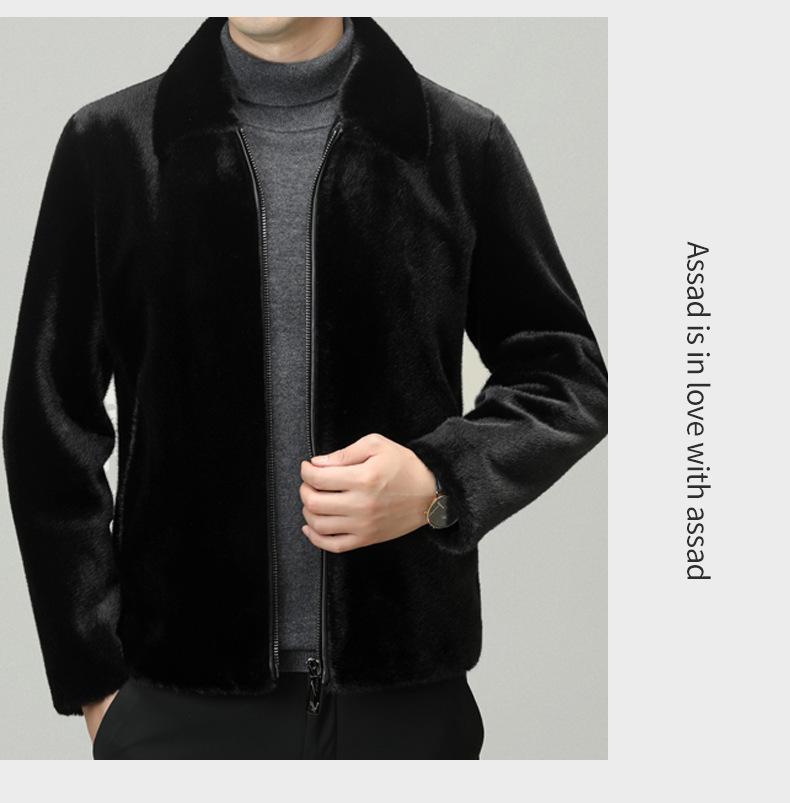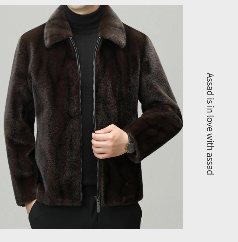 2025 Haining Invierno Nuevo Estilo Chaqueta de Terciopelo Visón Dorado Imitación Visón Piel Compuesta Una Pieza Ropa para Papá de Mediana Edad Solapa Color Puro