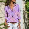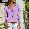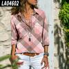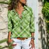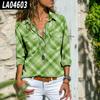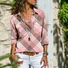 Nueva Primavera Delgada Estampado a Cuadros Comercio Transfronterizo Amazon Camisa Holgada de Manga Larga para Mujer