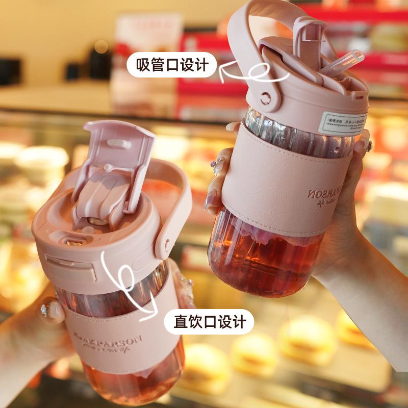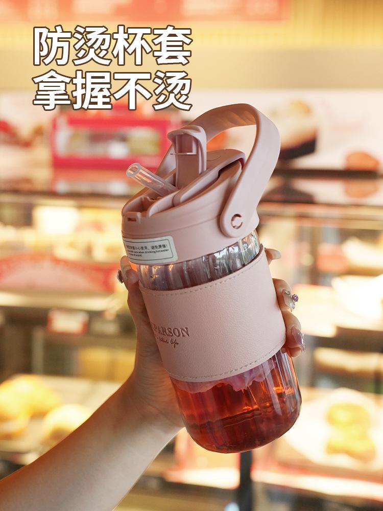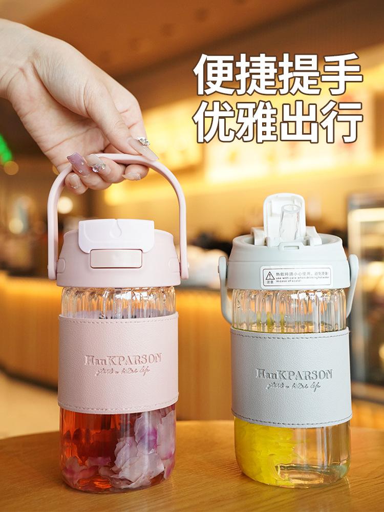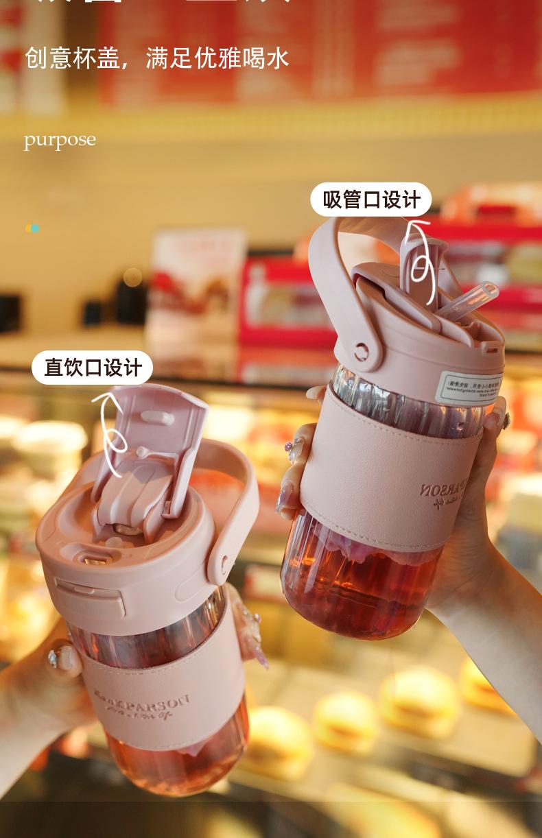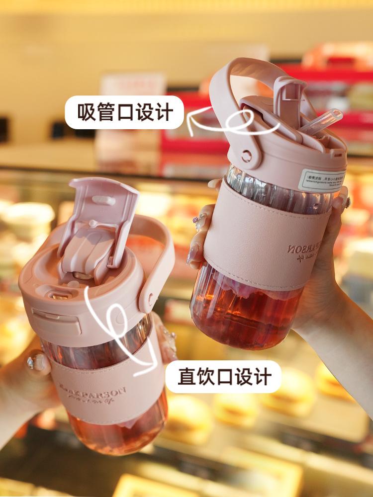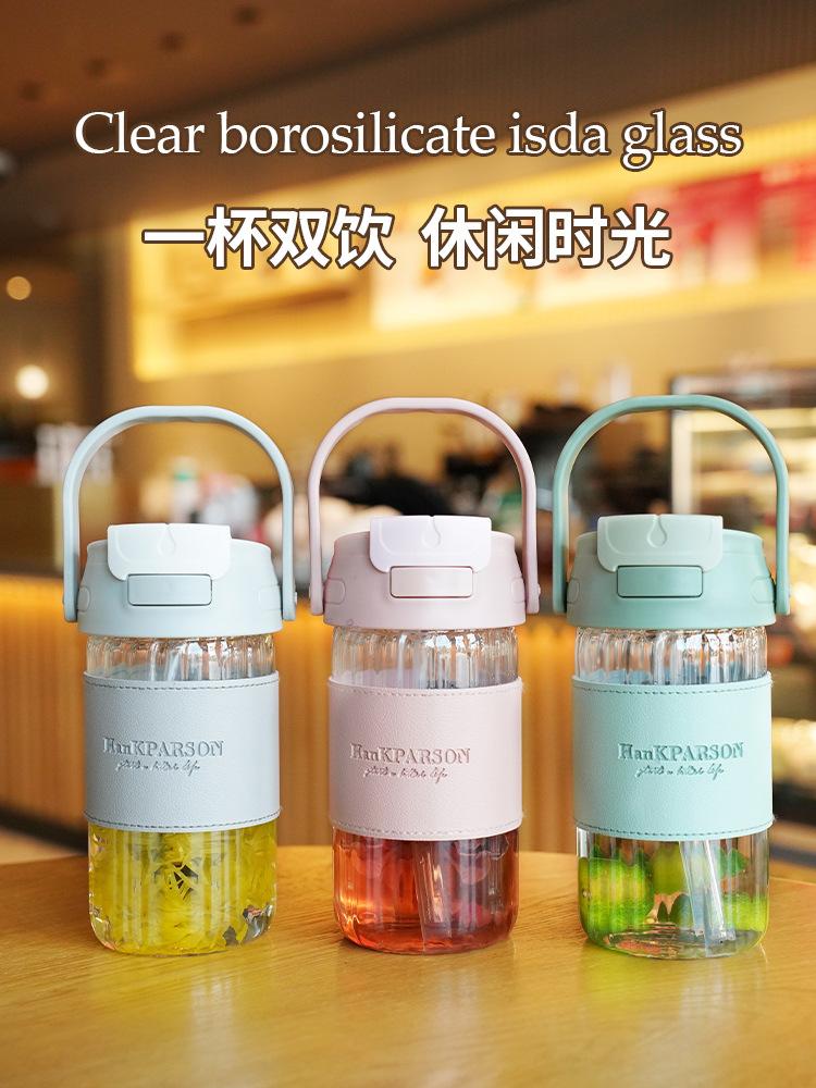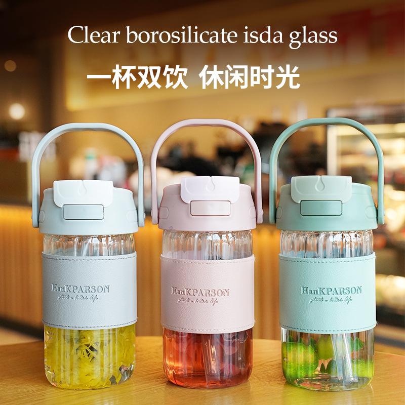 Nuevo Vaso de Agua de Vidrio Portátil con Popote y Tapa de Vaso Vaso de Doble Bebida Deportes al Aire Libre Vaso Práctico para Estudiantes Venta al por Mayor