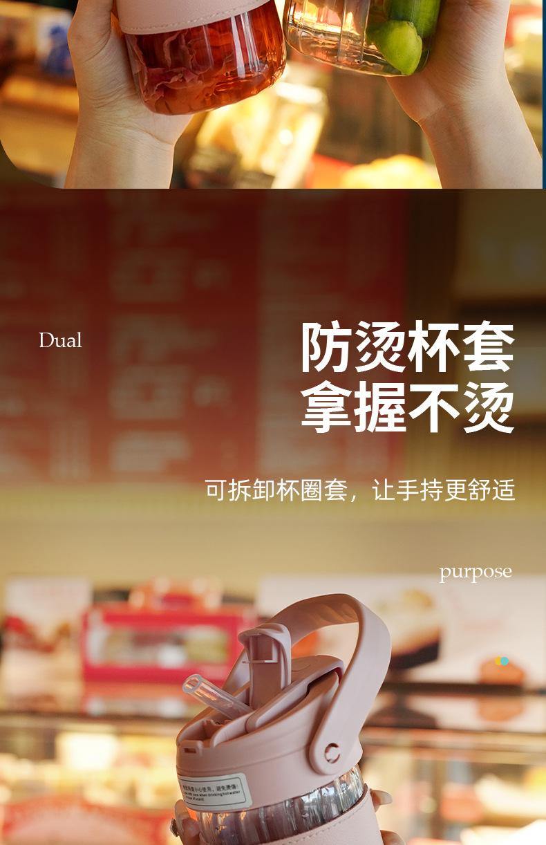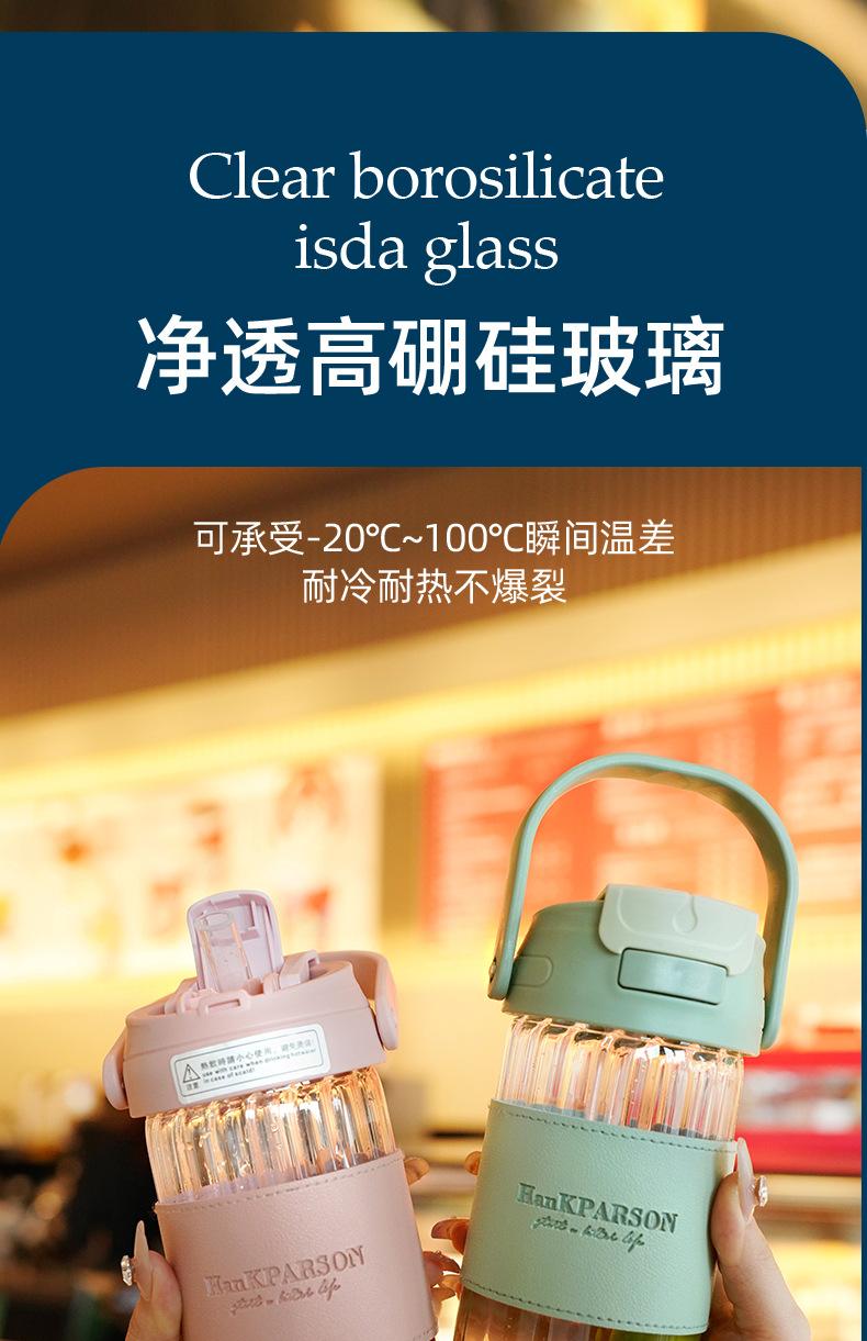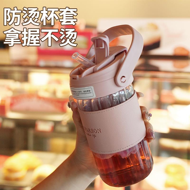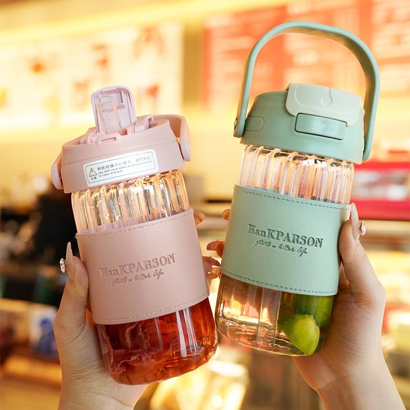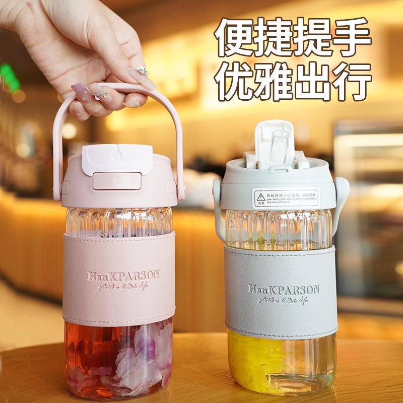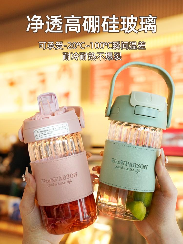 Nuevo Vaso de Agua de Vidrio Portátil con Popote y Tapa de Vaso Vaso de Doble Bebida Deportes al Aire Libre Vaso Práctico para Estudiantes Venta al por Mayor