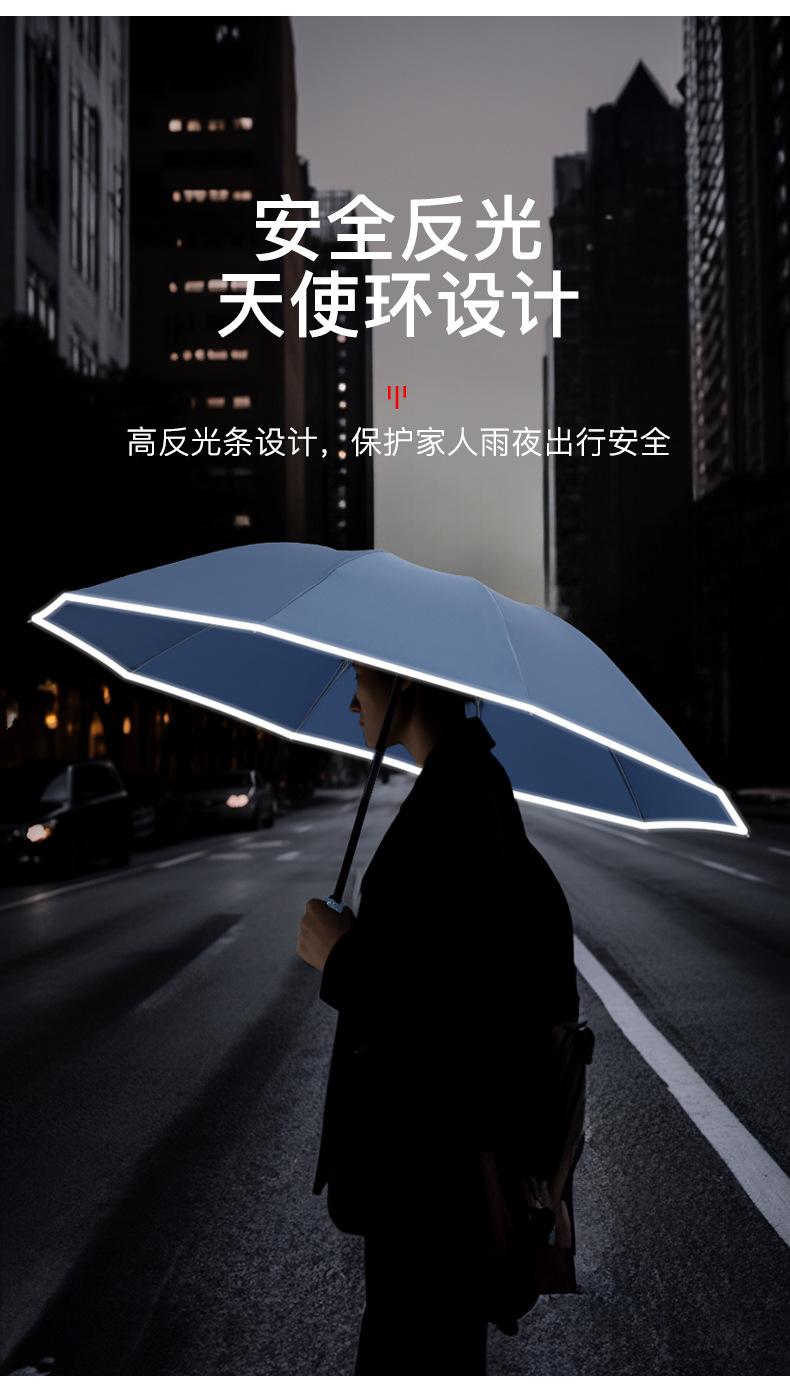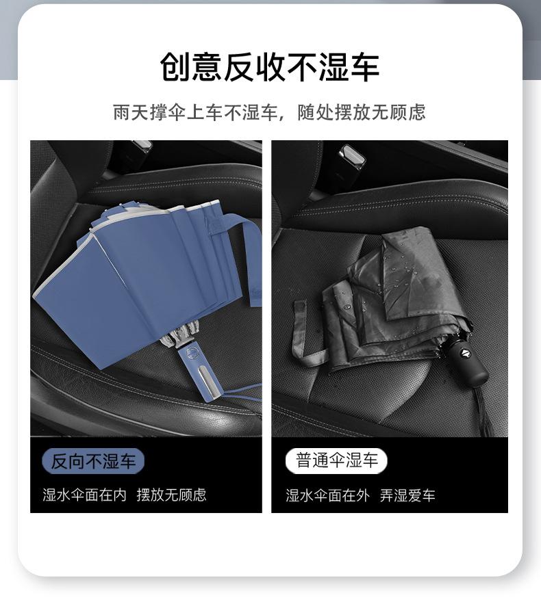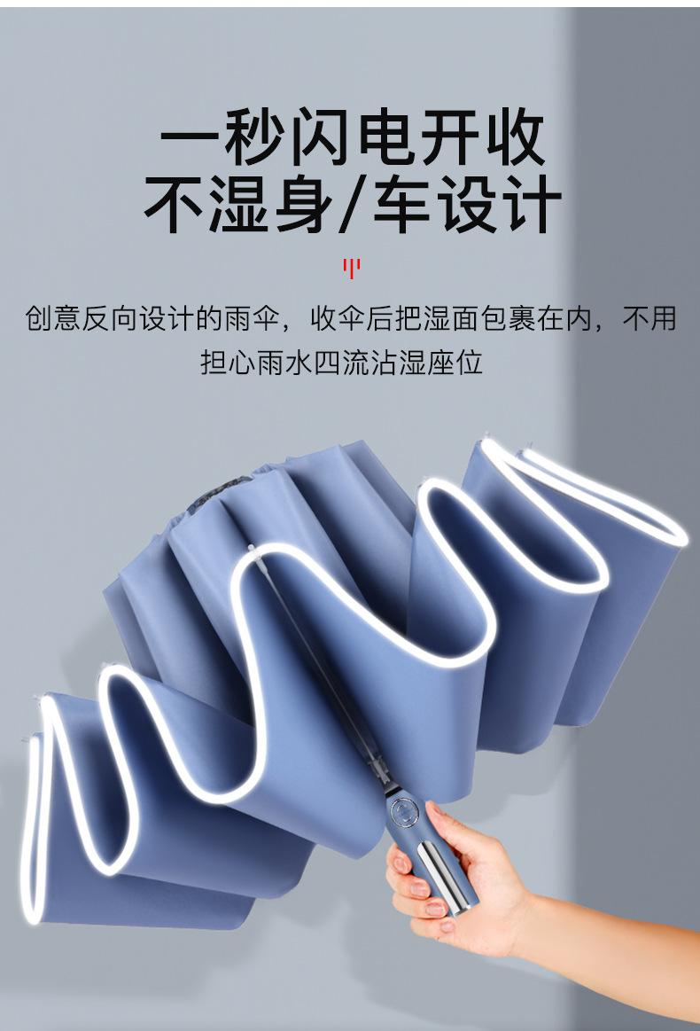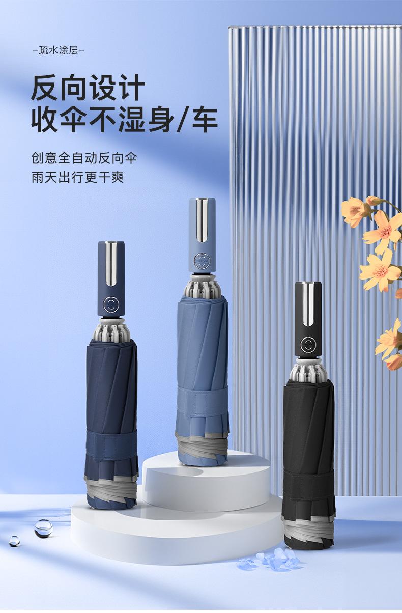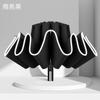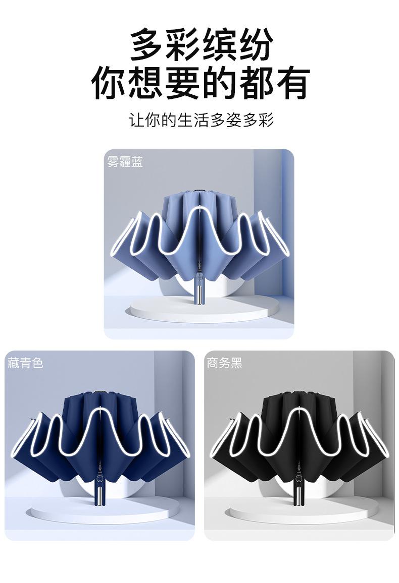 Paraguas reversible automático de tres pliegues con cubierta de goma negra reflectante para hombre y mujer. Paraguas doble.