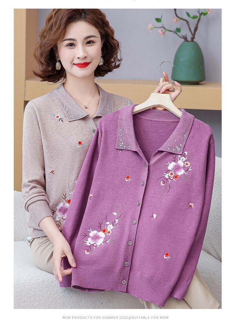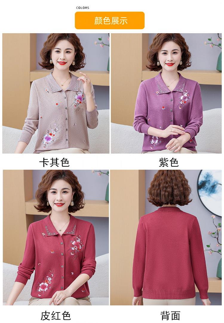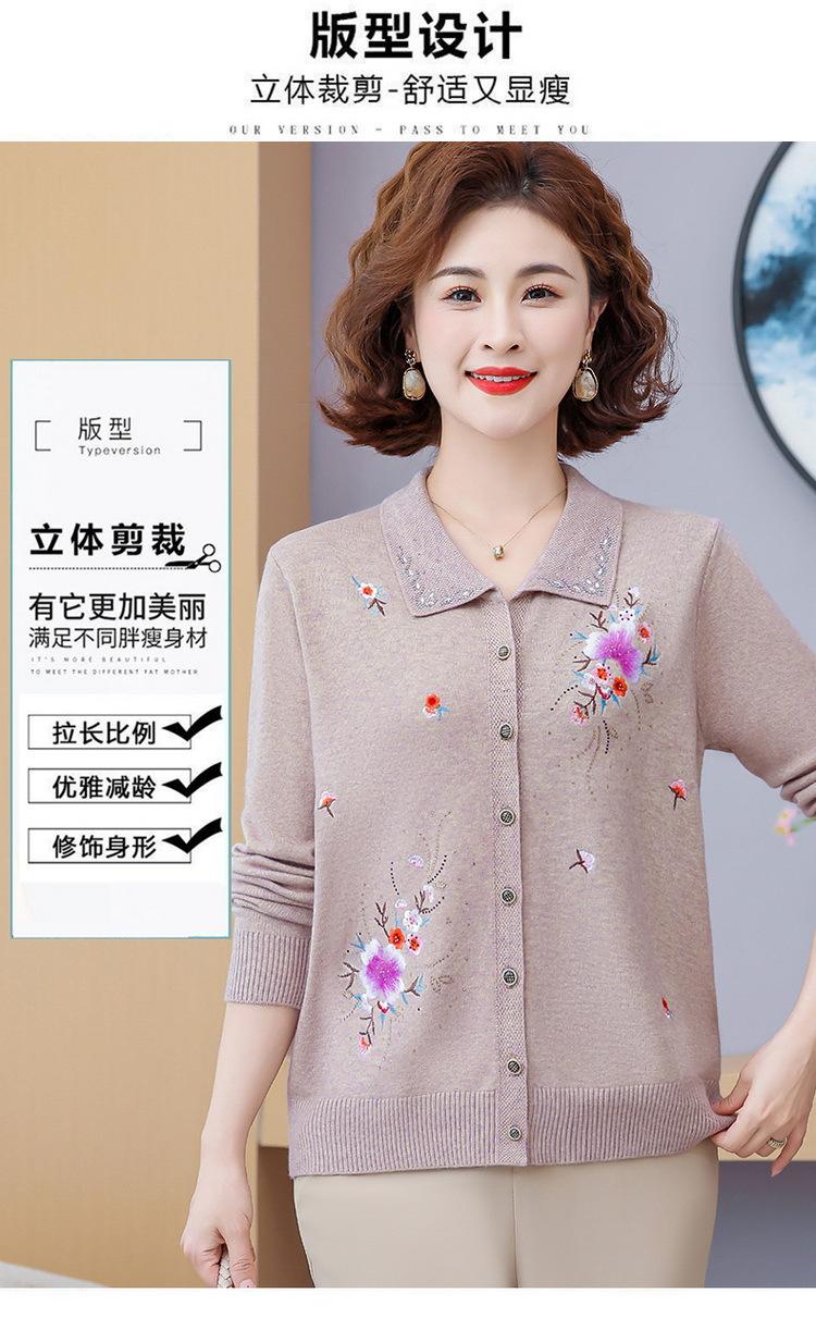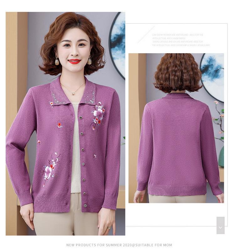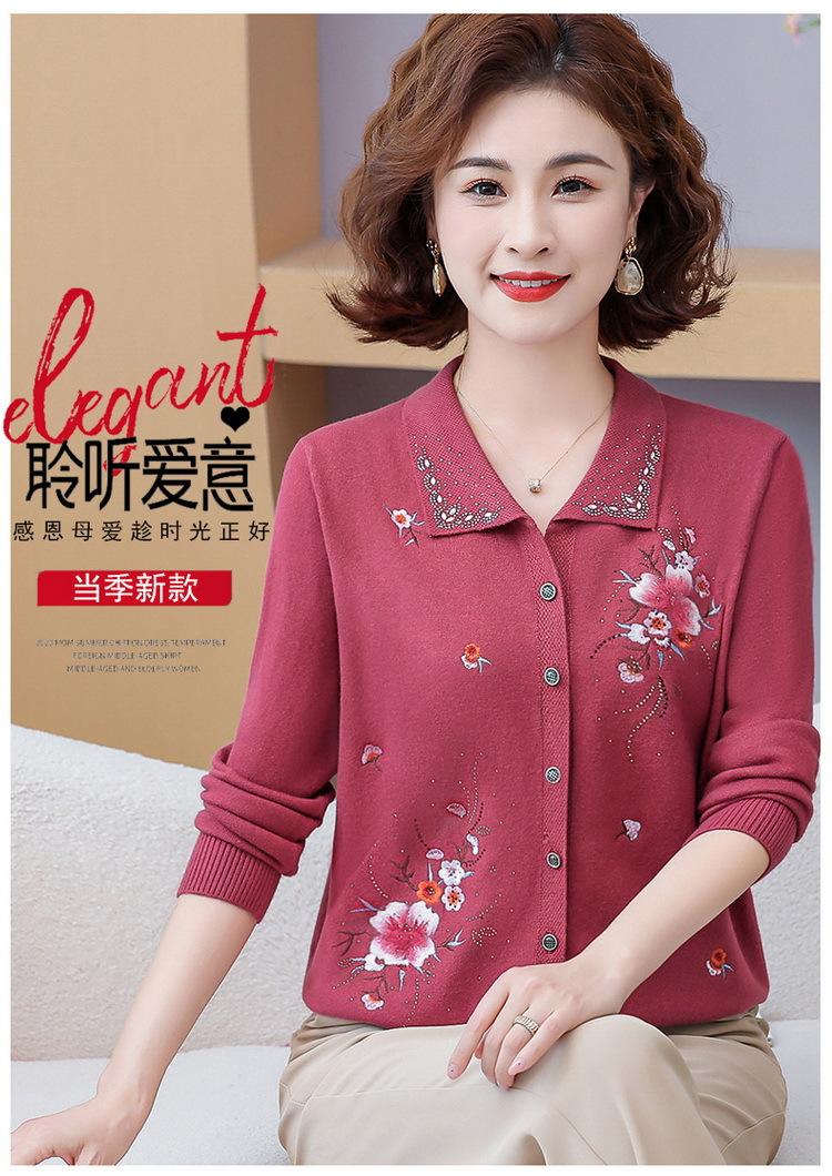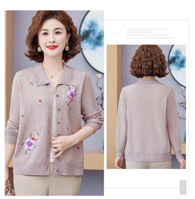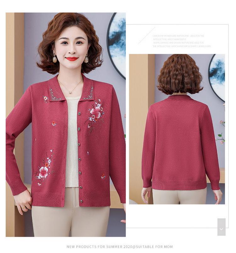 Suéter fino con solapa superior suelta para mujer de mediana edad y anciana, abrigo cárdigan de punto bordado de nuevo estilo de primavera para madre