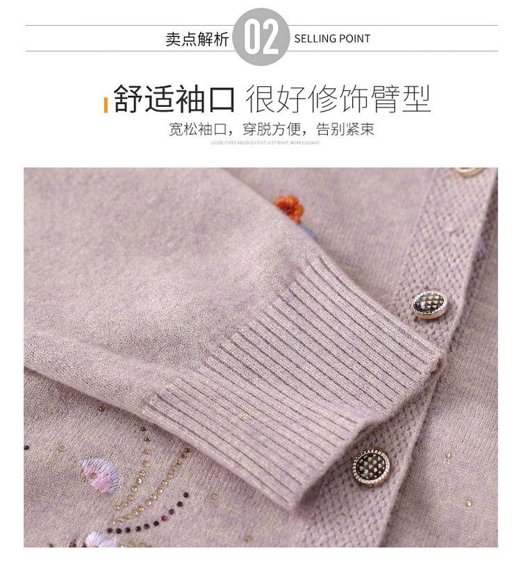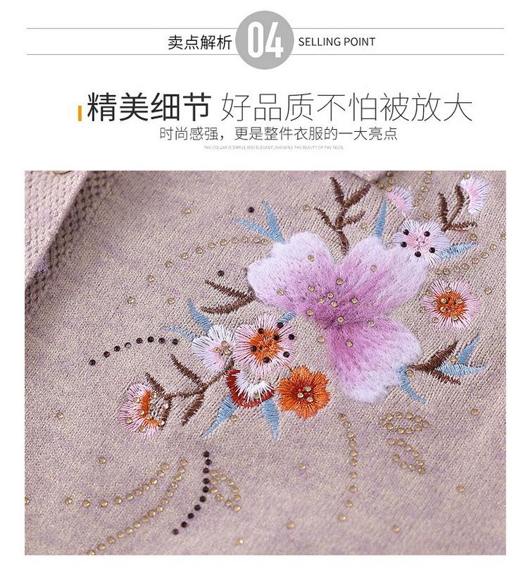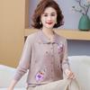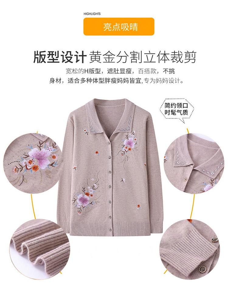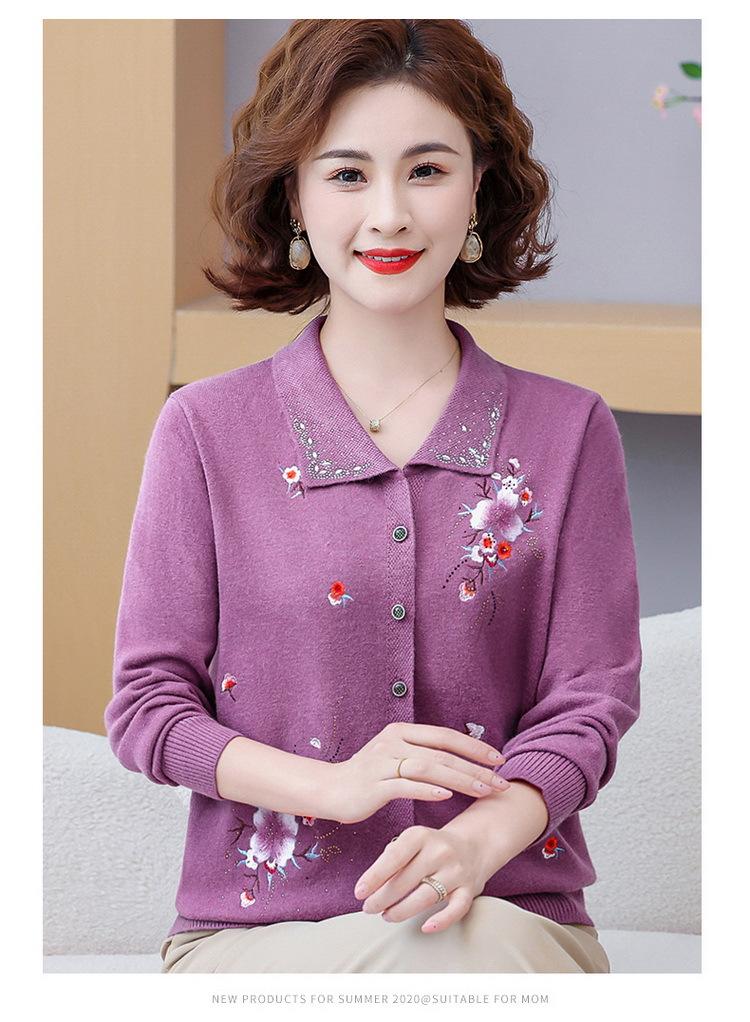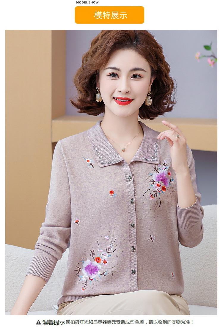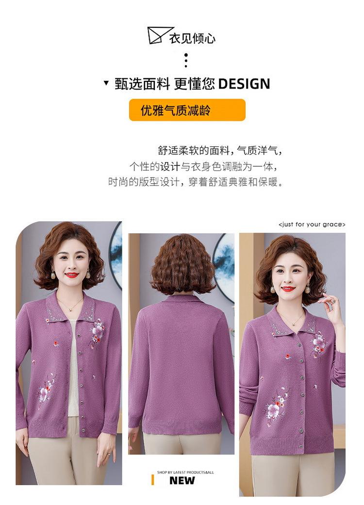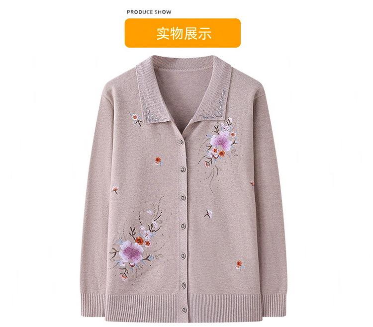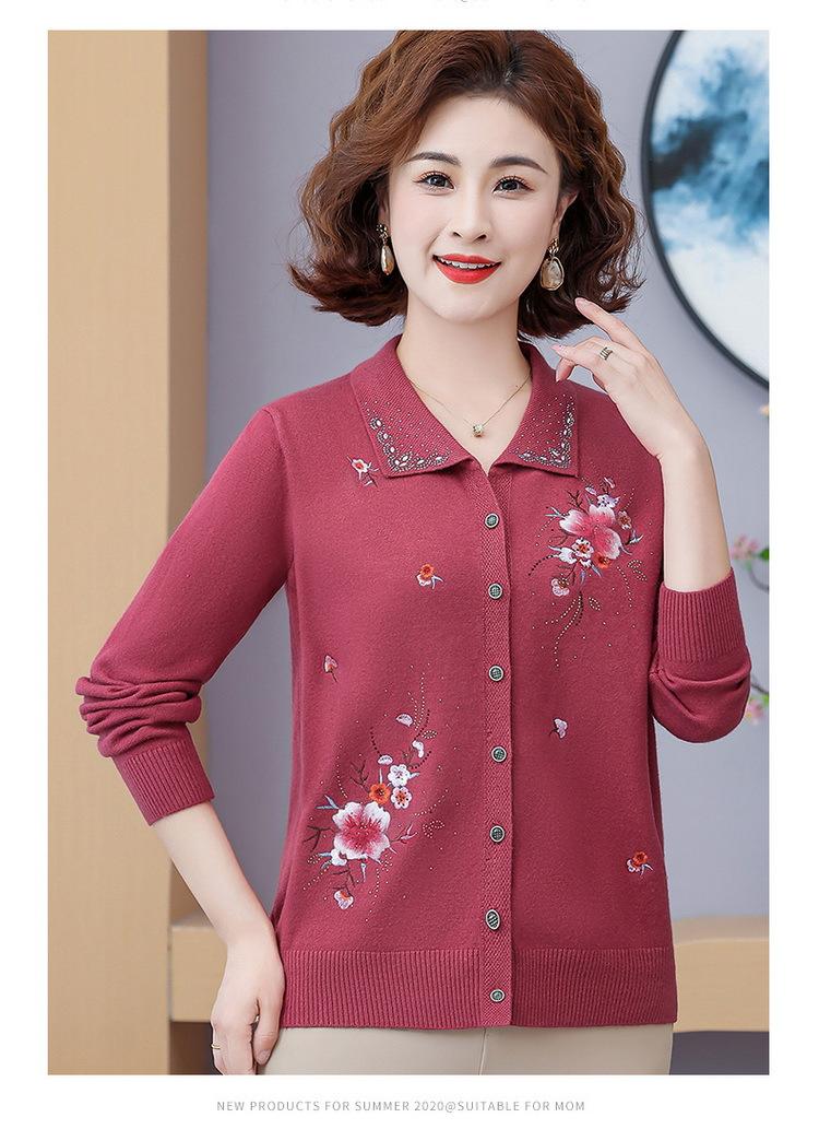 Suéter fino con solapa superior suelta para mujer de mediana edad y anciana, abrigo cárdigan de punto bordado de nuevo estilo de primavera para madre