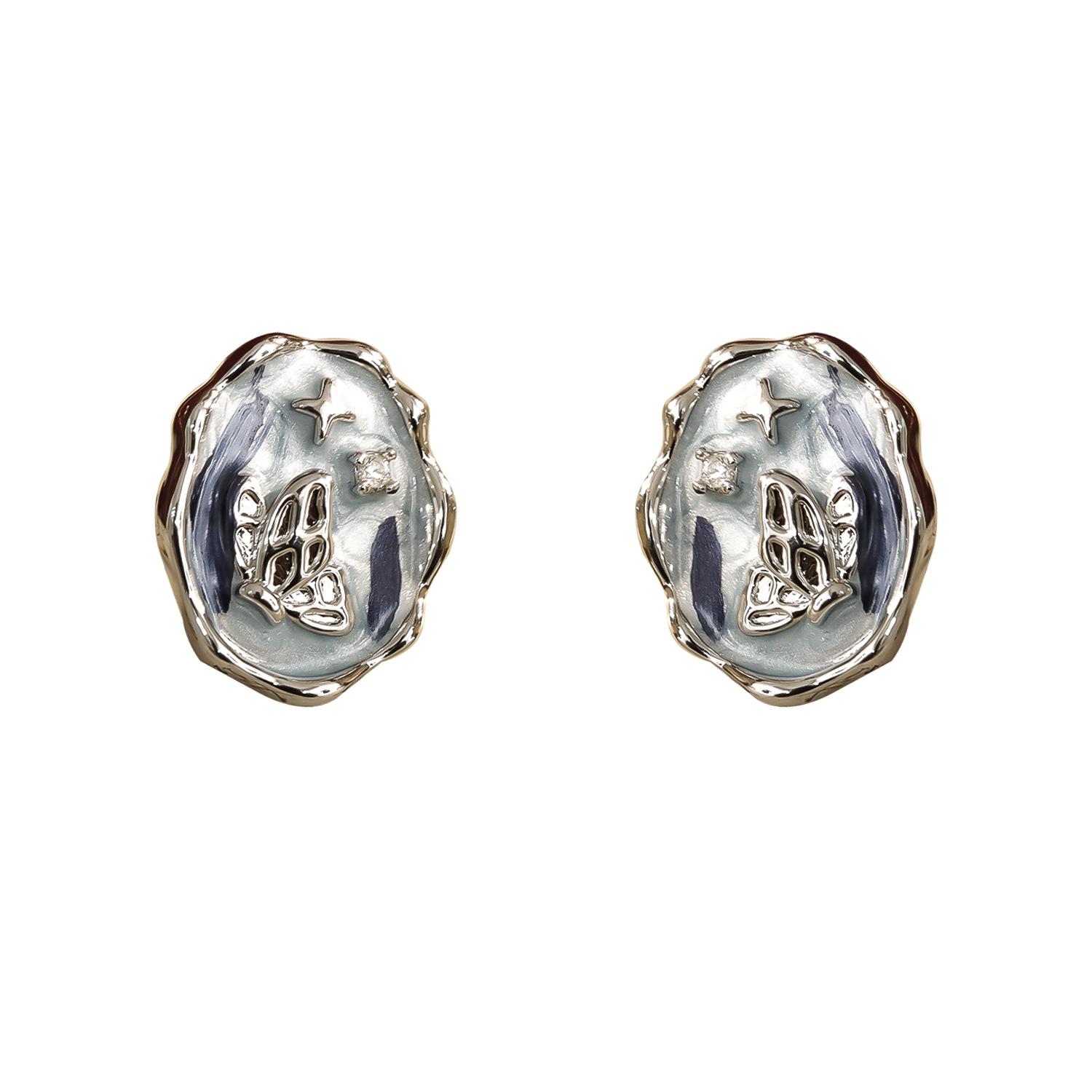 Marca: Pendientes dulces de alta gama con temperamento redondo de circonitas con gota de aceite White K