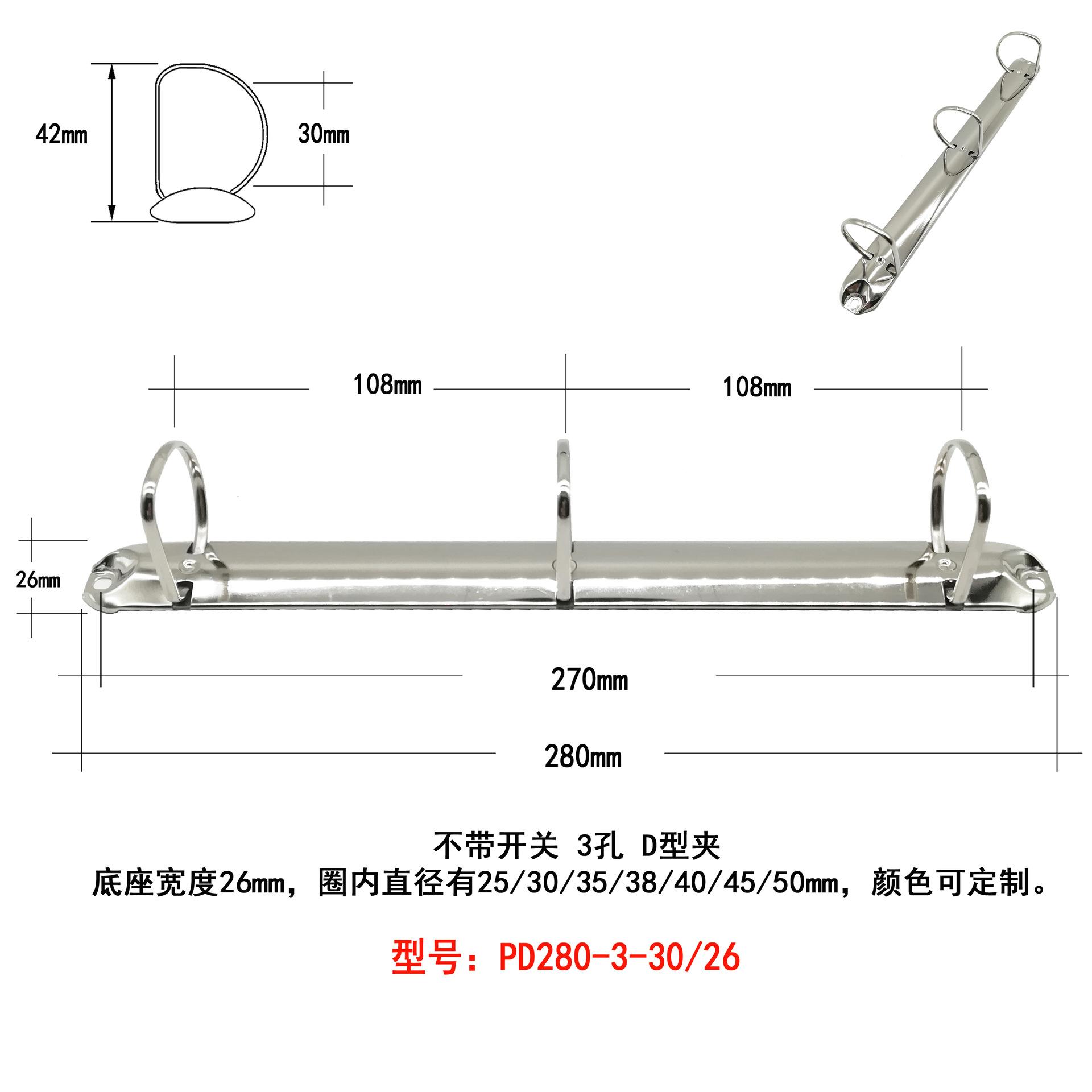 Clip de metal con anillo en D, antioxidante y duradero, con 3 orificios, para carpetas, papelería y hardware, suministro directo de fábrica