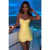 | Falda de tirantes sin espalda con cordones de satén con cuello en V sexy de cintura ajustada para mujer de estilo americano primavera 2022¥36.8 |